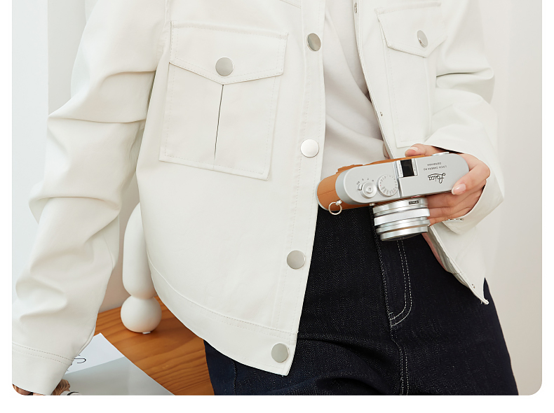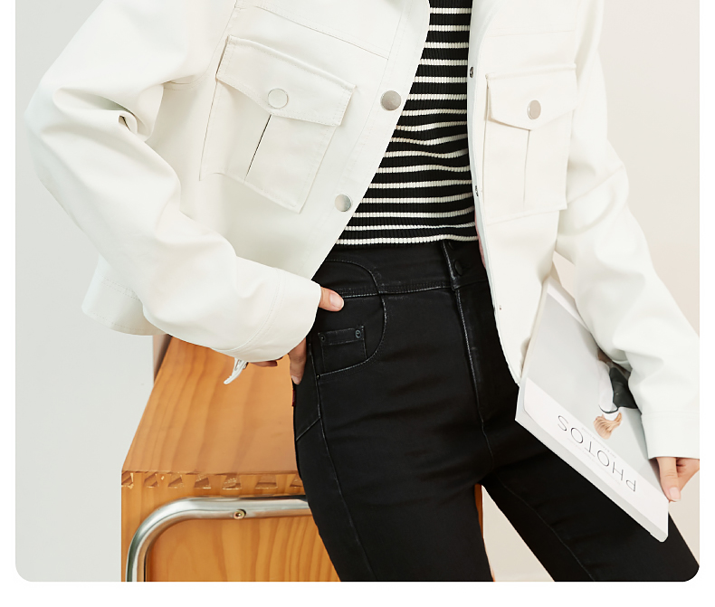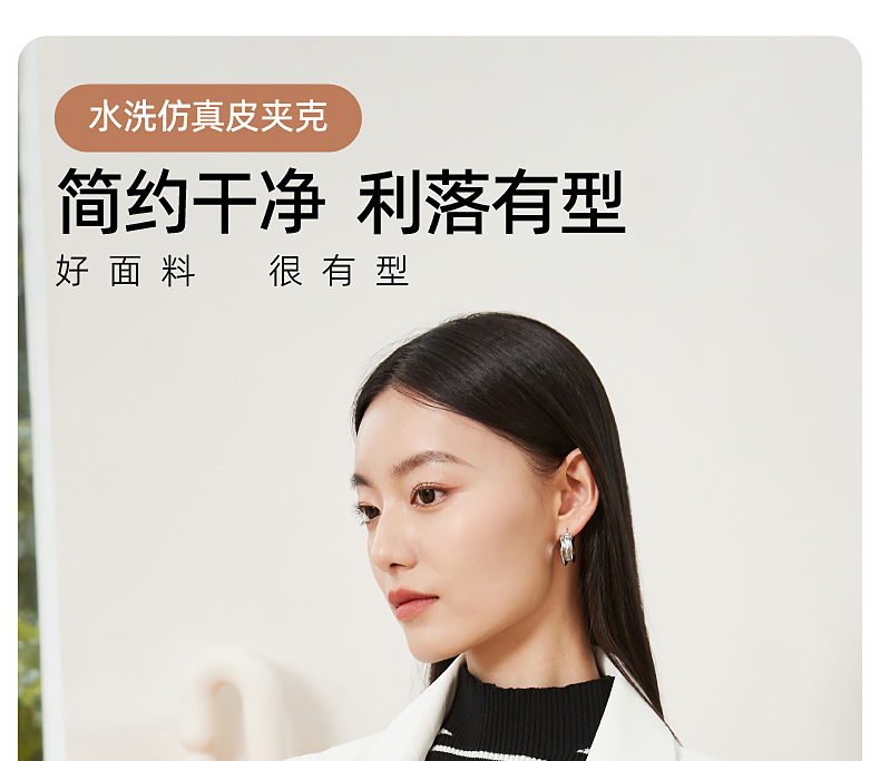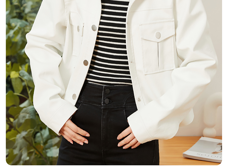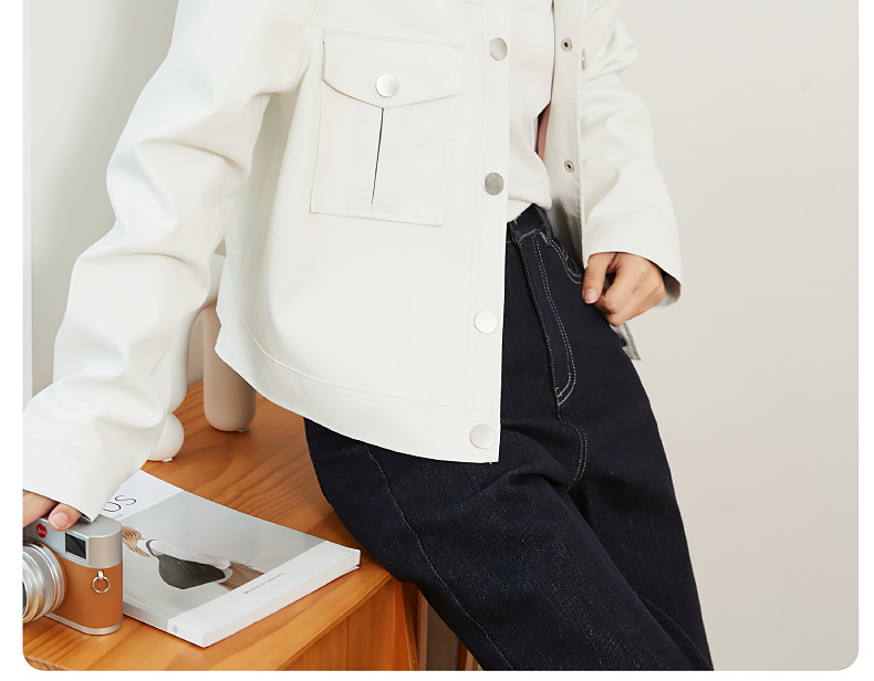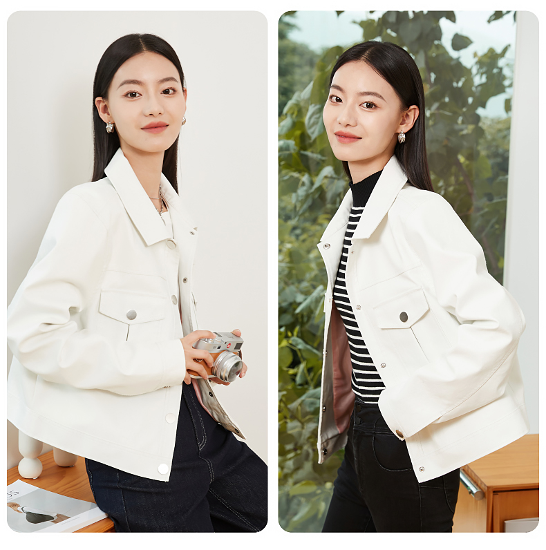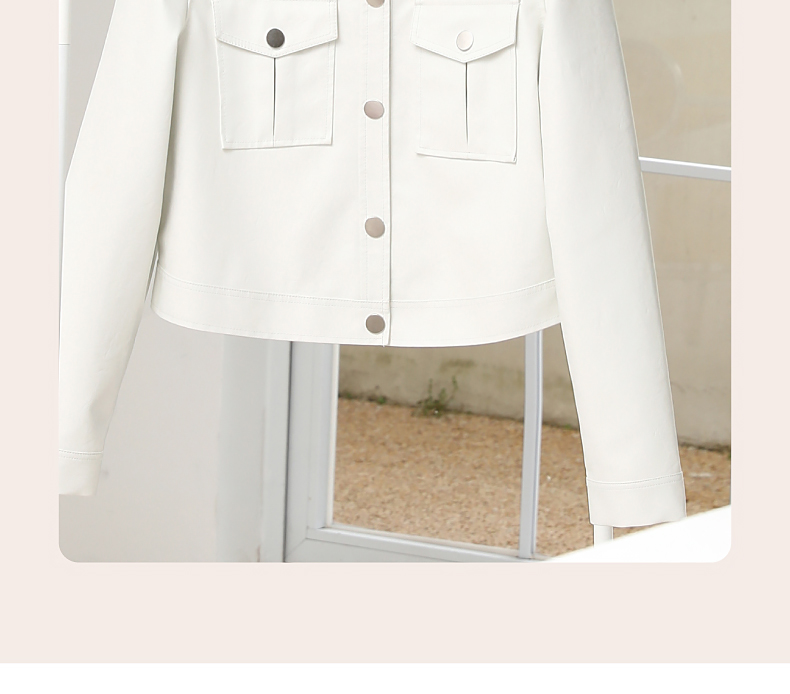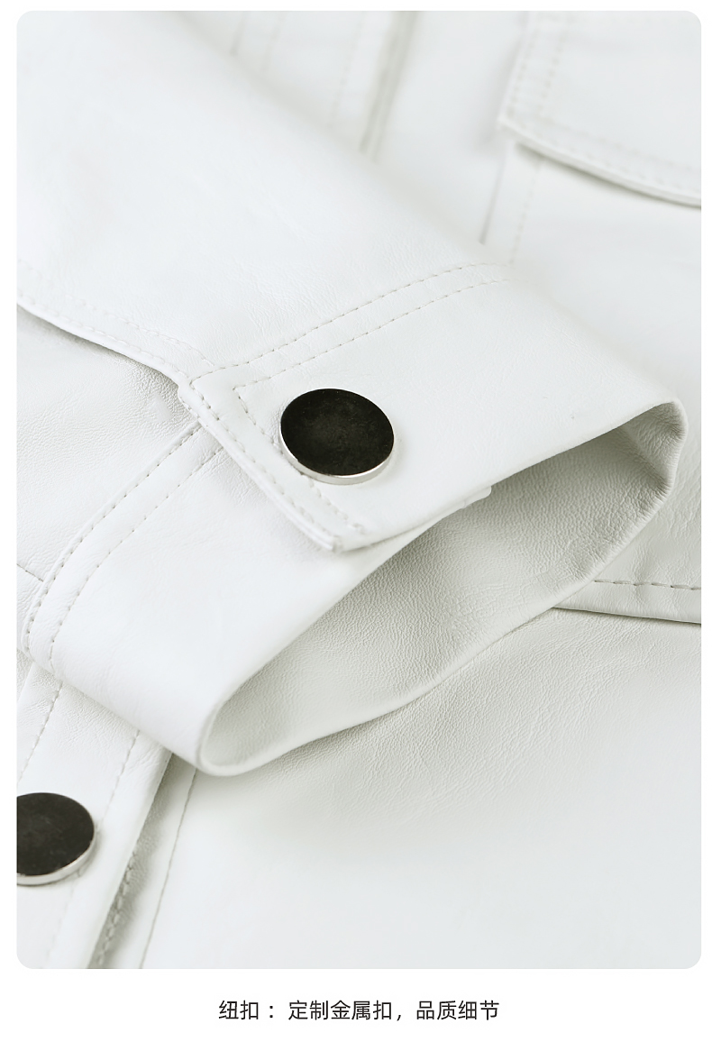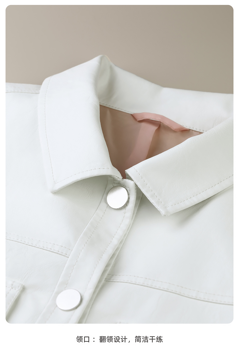 逸阳白色翻领水洗仿皮夹克女2024新款休闲宽松显瘦上衣短外套3081