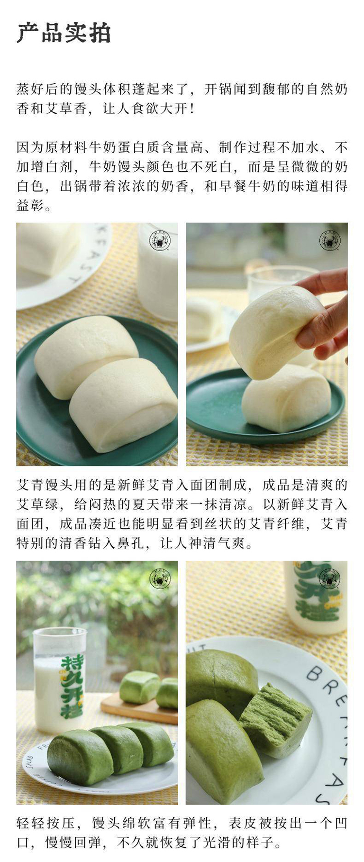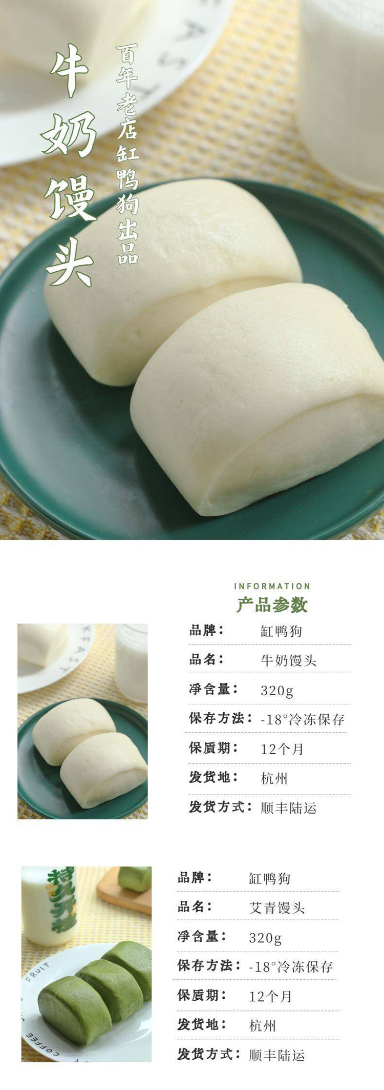 【缸鸭狗】馒头320g 2袋 牛奶/艾青味 速冻方便早餐牛奶面点 手工营养包子 刀切奶香小馒头