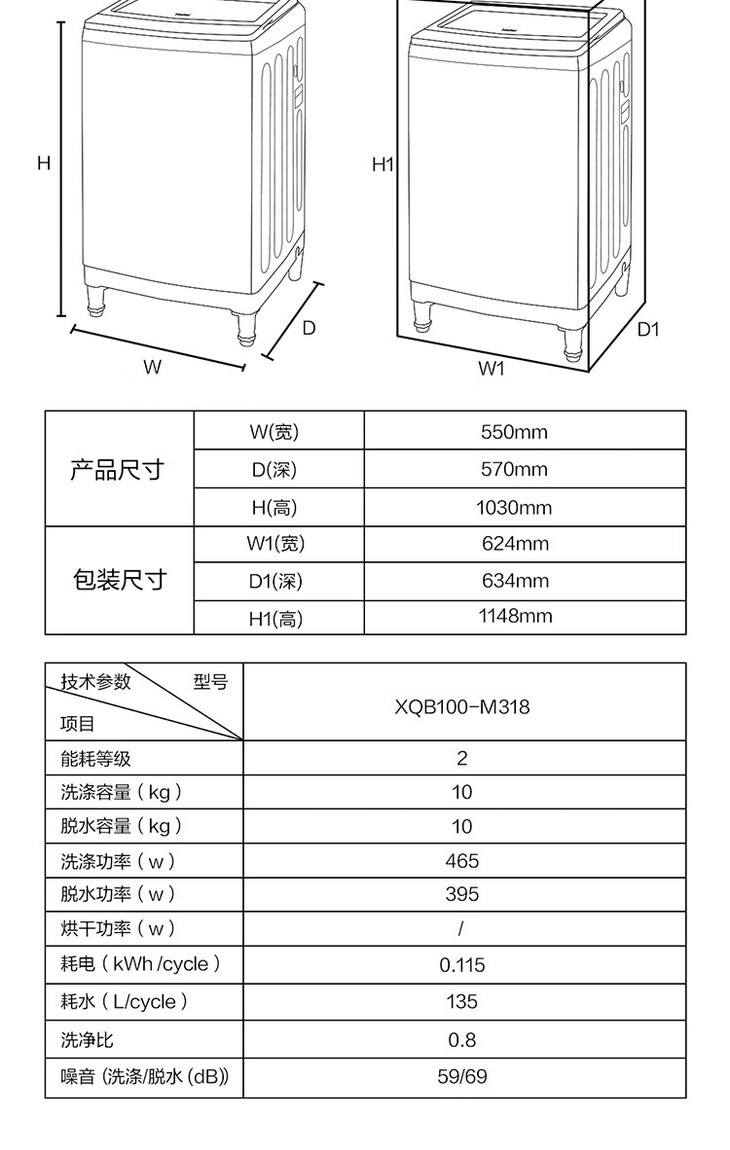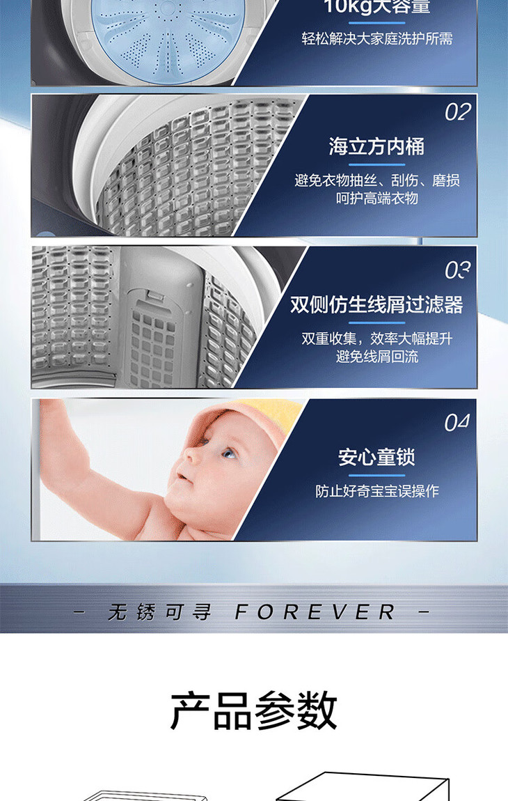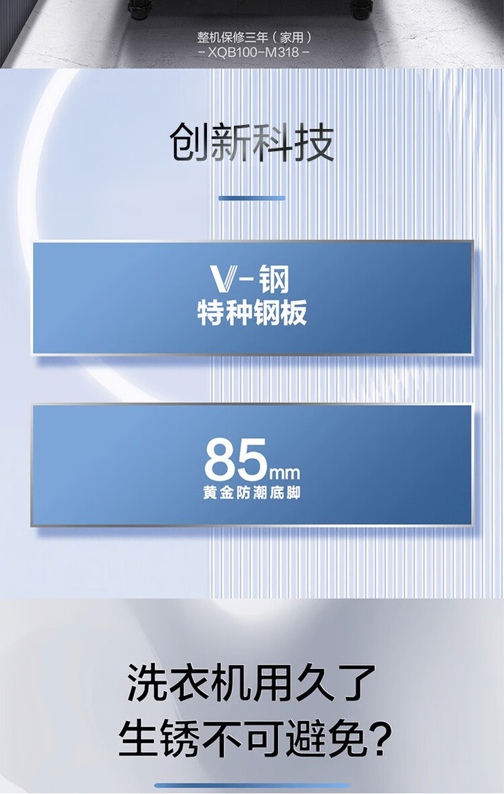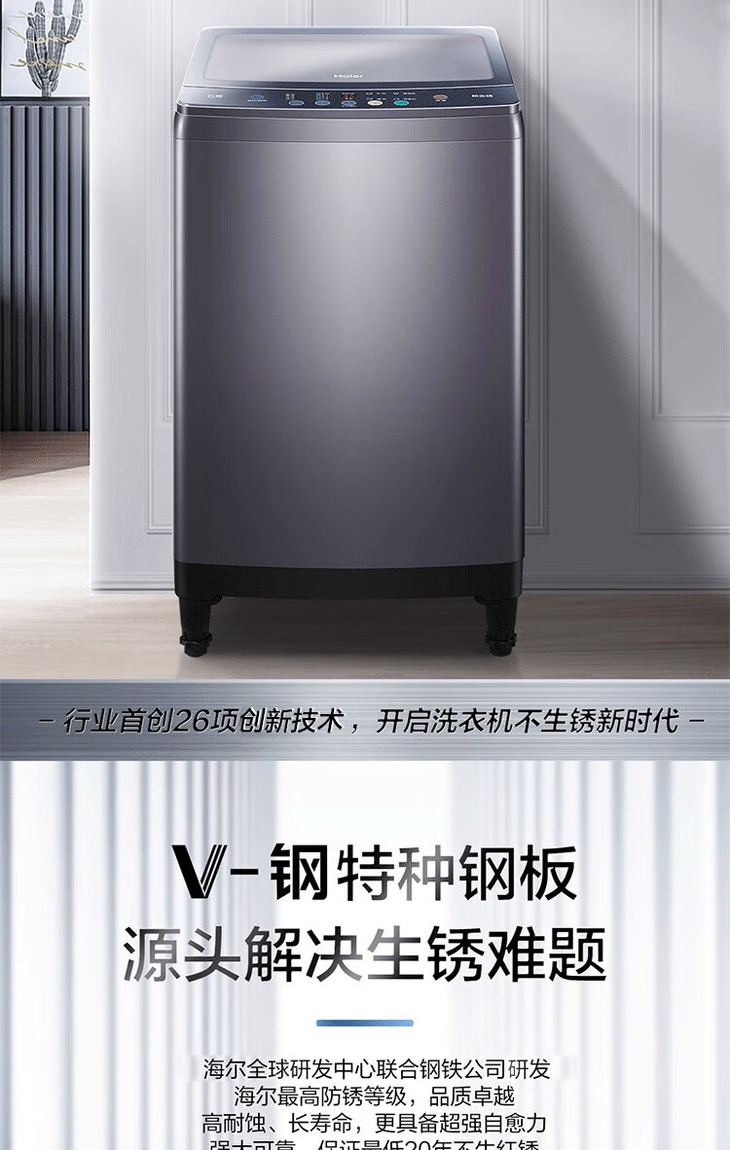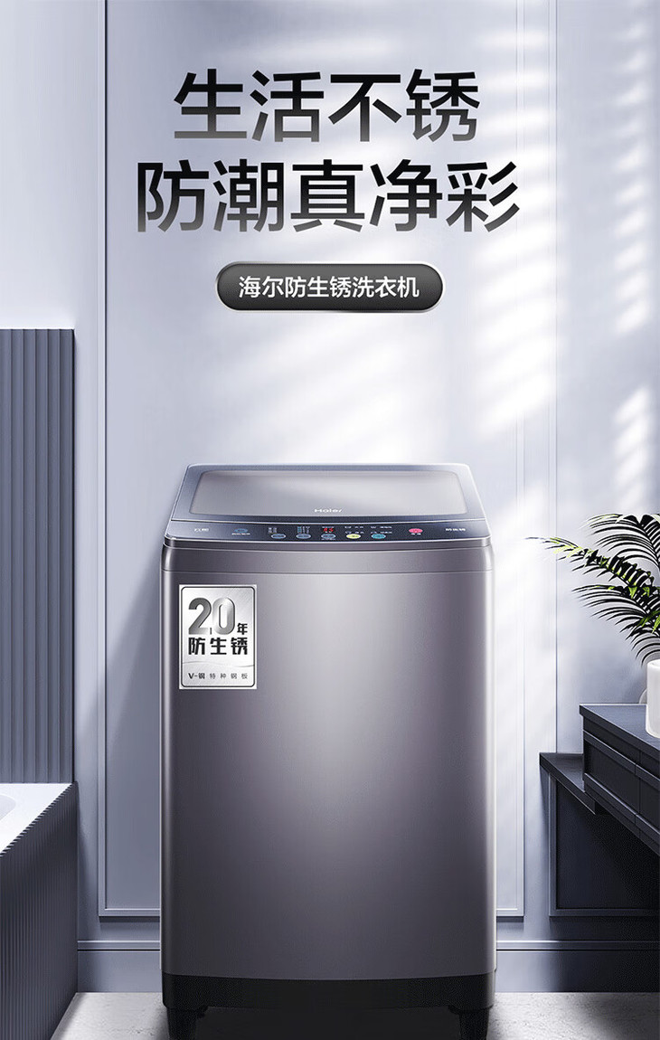 海尔(Haier)(252017)全自动波轮洗衣机10公斤大容量洗脱一体 20年防生锈 V-钢机身 透明玻璃上盖云熙系列家用洗衣机 10KG星蕴银防生锈洗衣机XQB100-M318