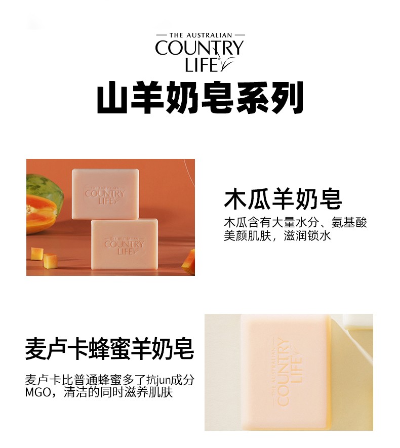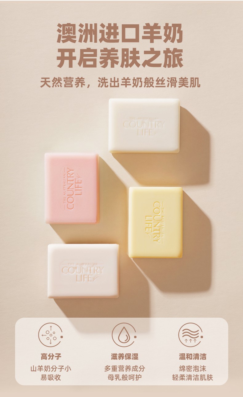 【中欧班列精选5块】澳洲香皂 原装进口乡间生活(COUNTRY LIFE)羊奶皂 原味/薰衣草/蜂蜜 100g/块*5