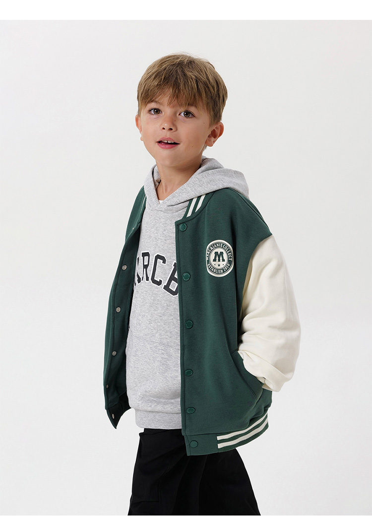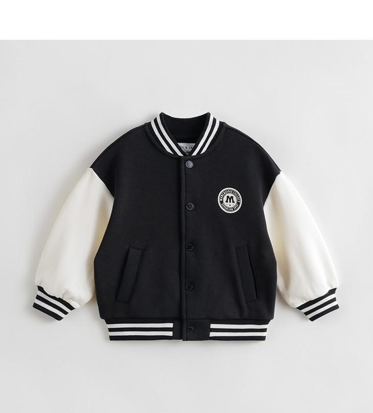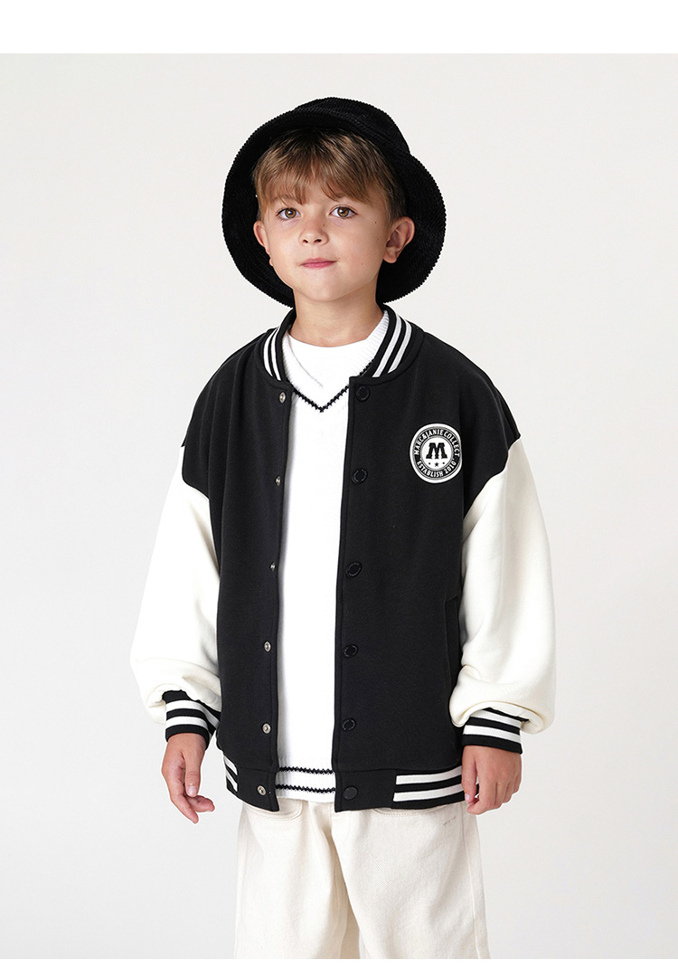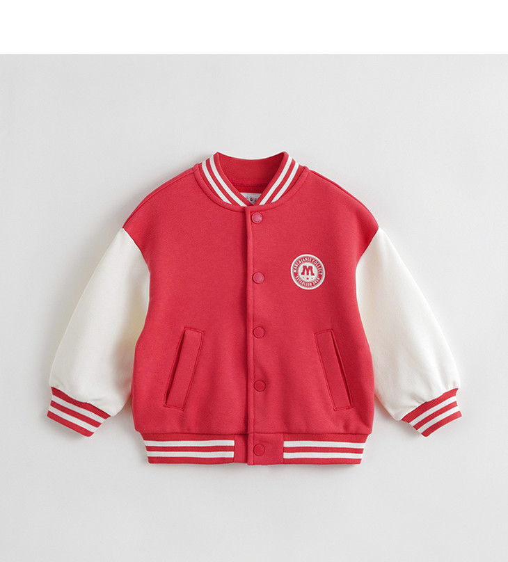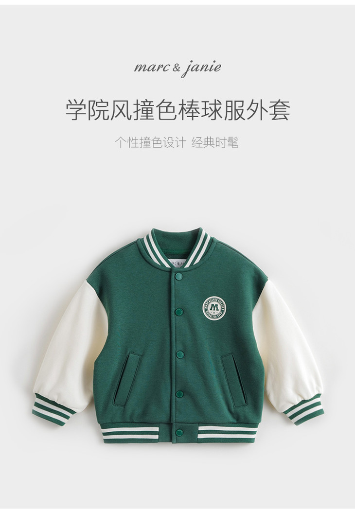 马克珍妮秋装 男女童学院风撞色拼接棒球服 儿童运动外套231156