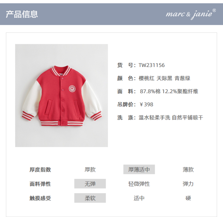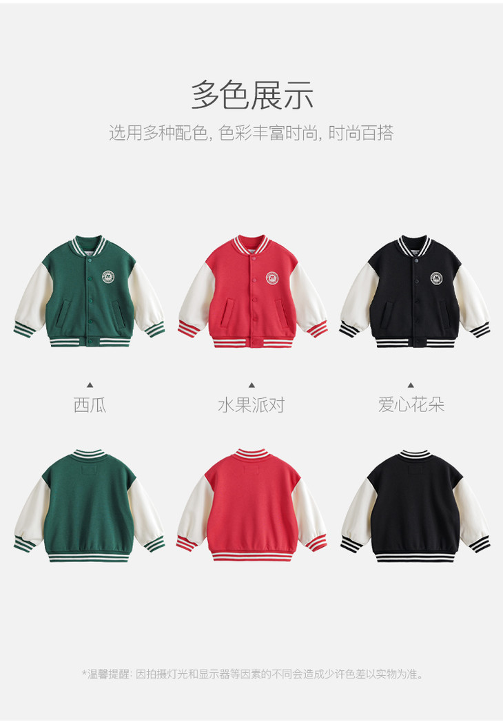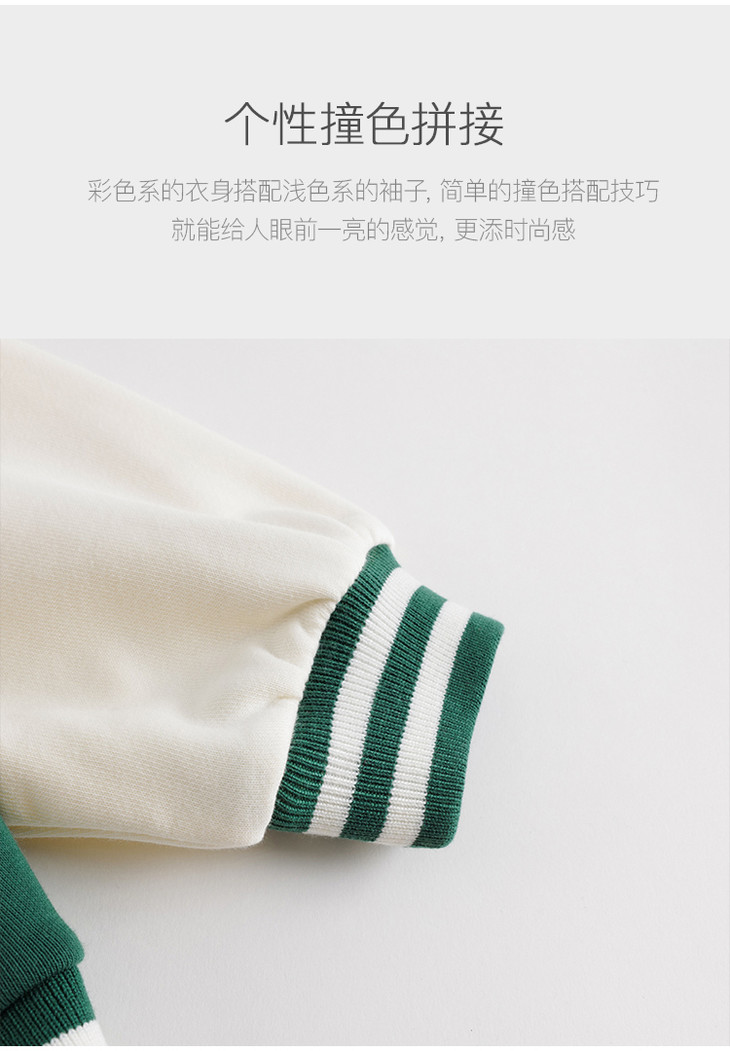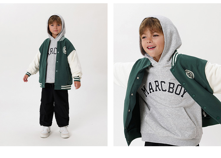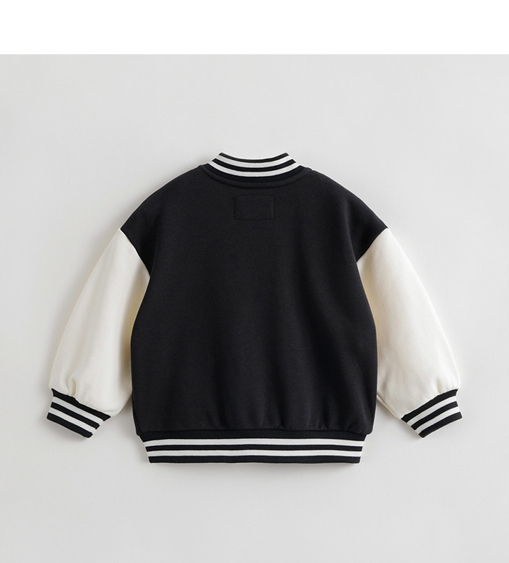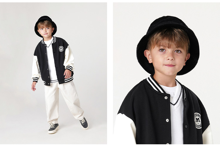 马克珍妮秋装 男女童学院风撞色拼接棒球服 儿童运动外套231156