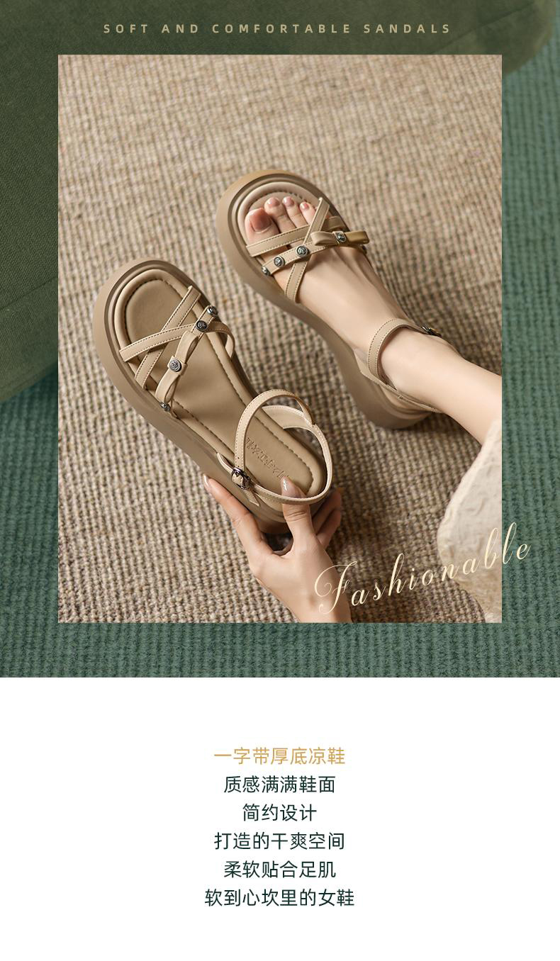 舒适厚底松糕鞋配裙子复古一字带夏季凉鞋软底5.5CM