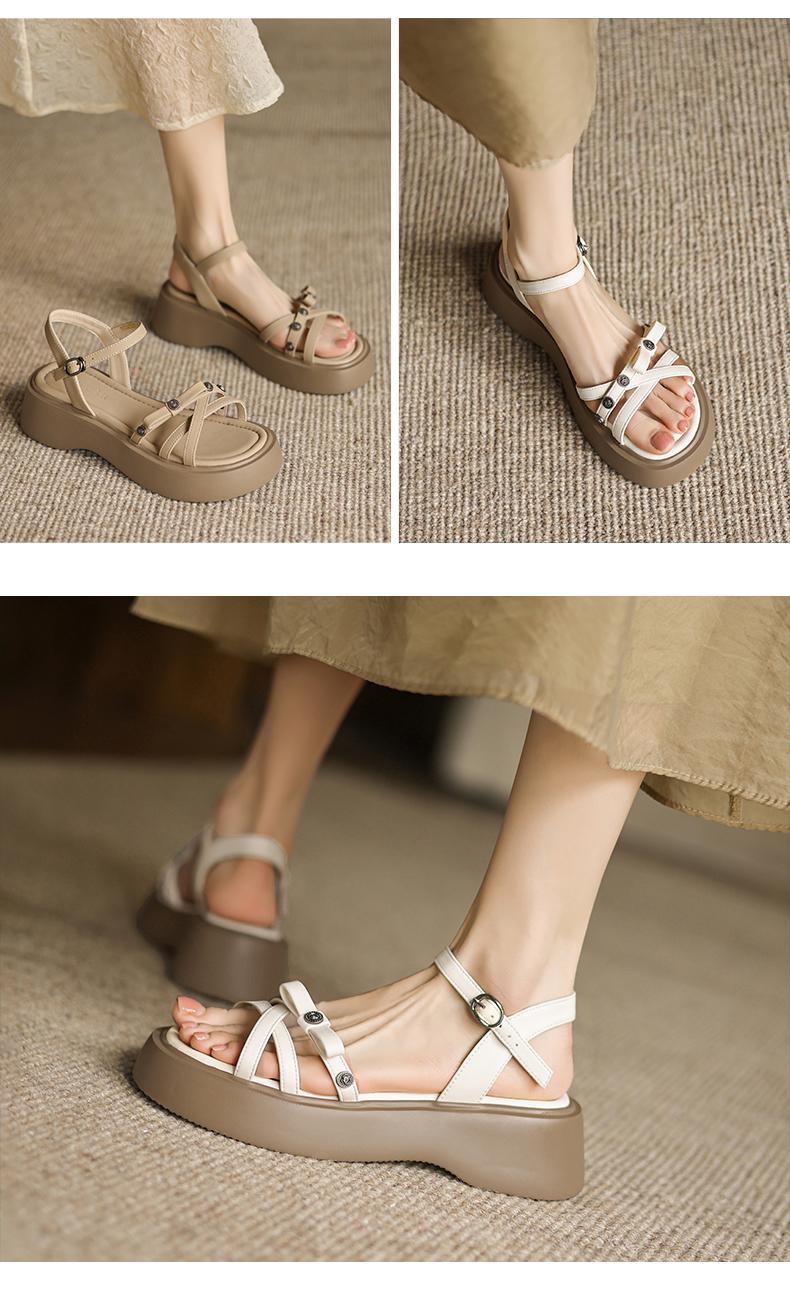 舒适厚底松糕鞋配裙子复古一字带夏季凉鞋软底5.5CM 商品图4