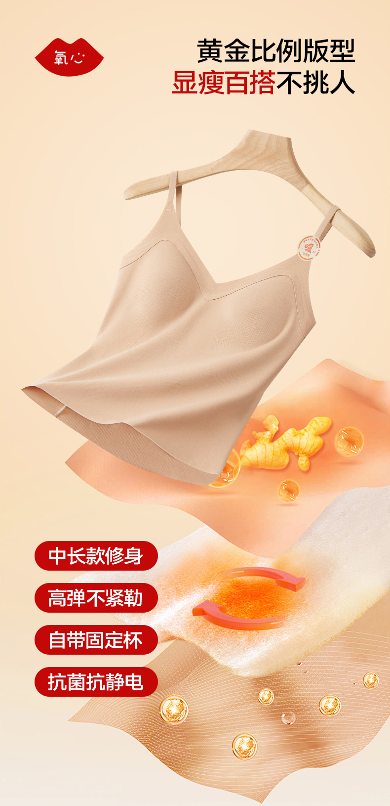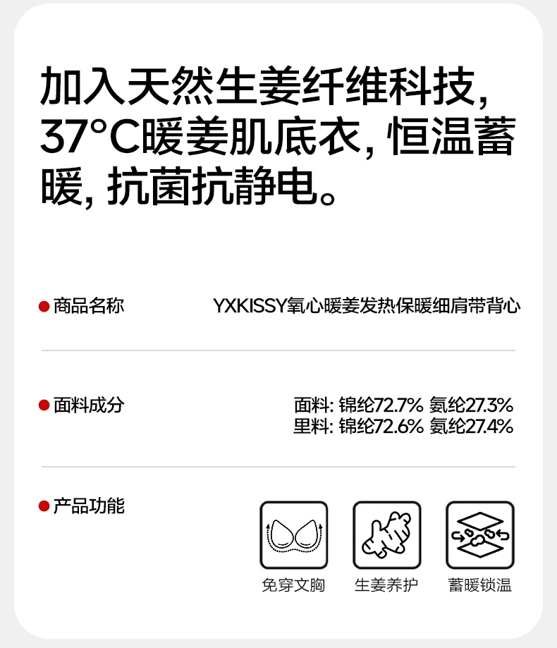 【99元/2件】YXKISSY氧心暖姜发热保暖细肩带背心 X3707【2511“羊毛”服装】