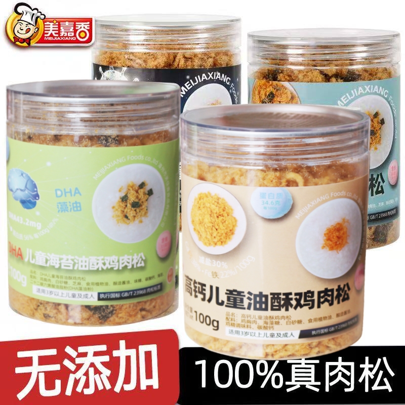 100g 美嘉香 儿童油酥肉松 原味/海苔肉松 早餐拌饭烘焙罐装正宗鸡肉松