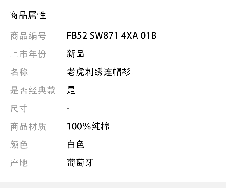 KENZO 高田贤三 经典大虎头 女士卫衣 白色 FB52 SW871 4XA 01B