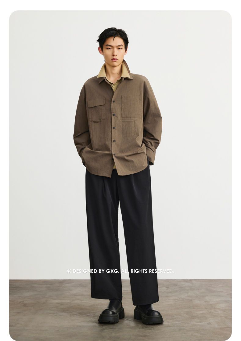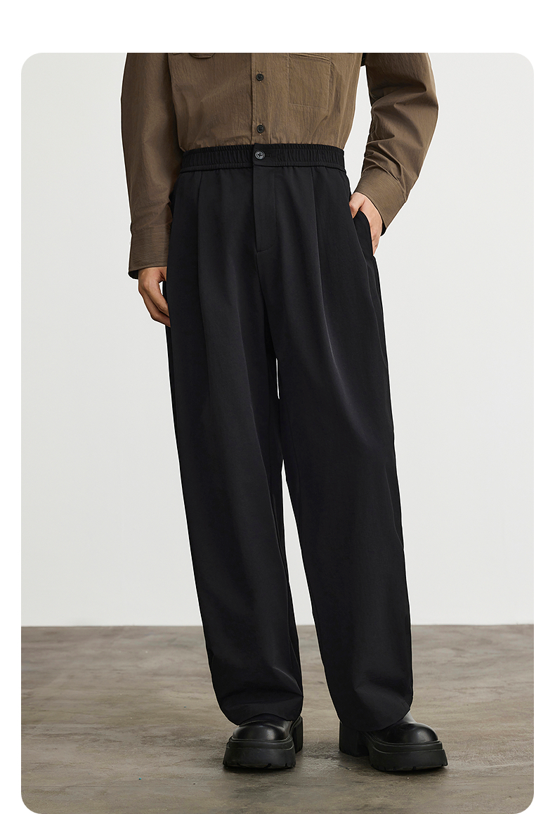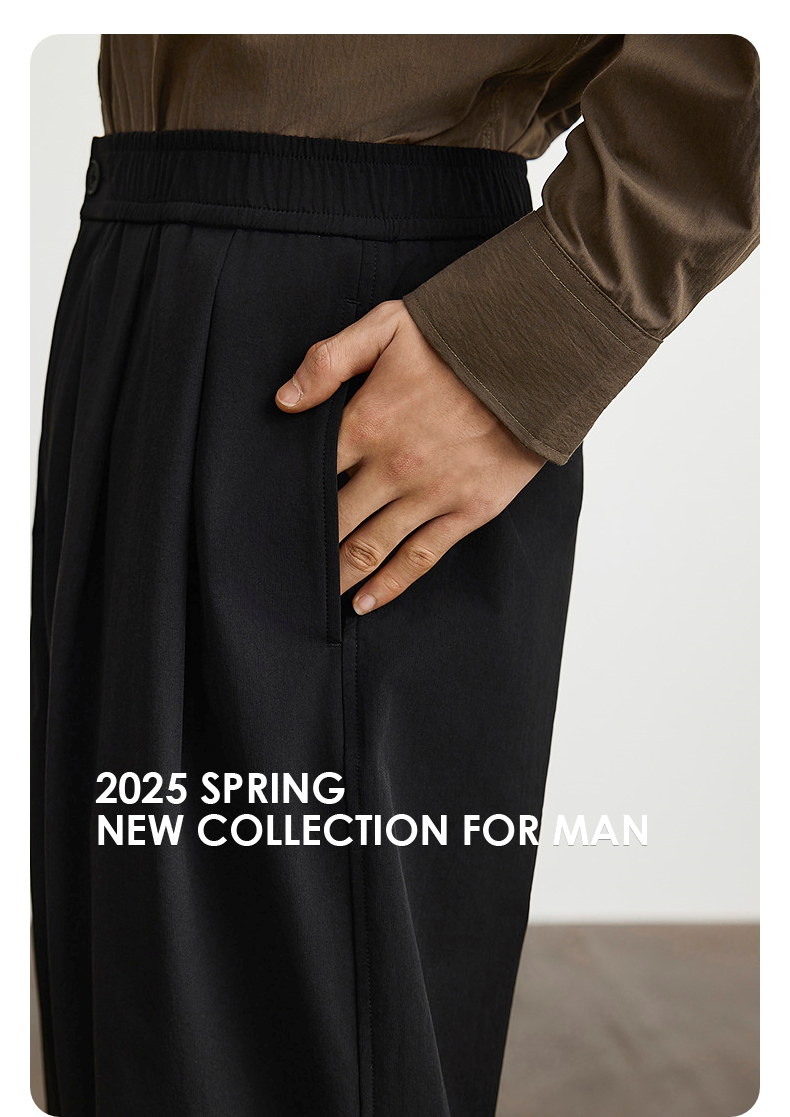 GXG男装 黑色简约阔腿休闲裤宽松舒适男通勤长裤 春季热卖G25X021003