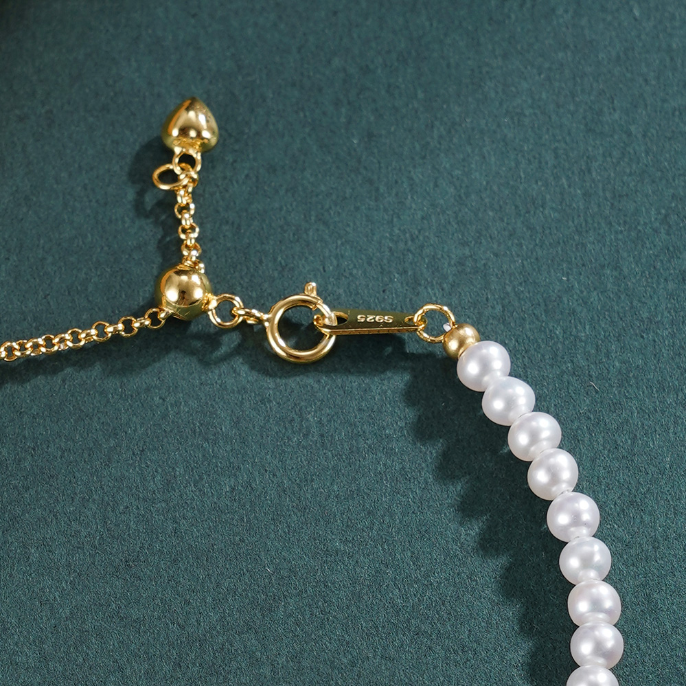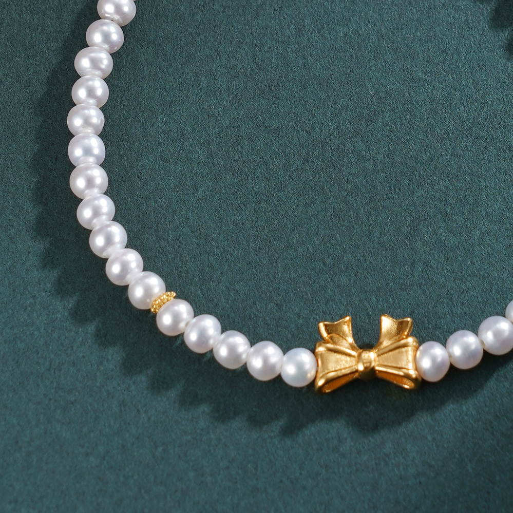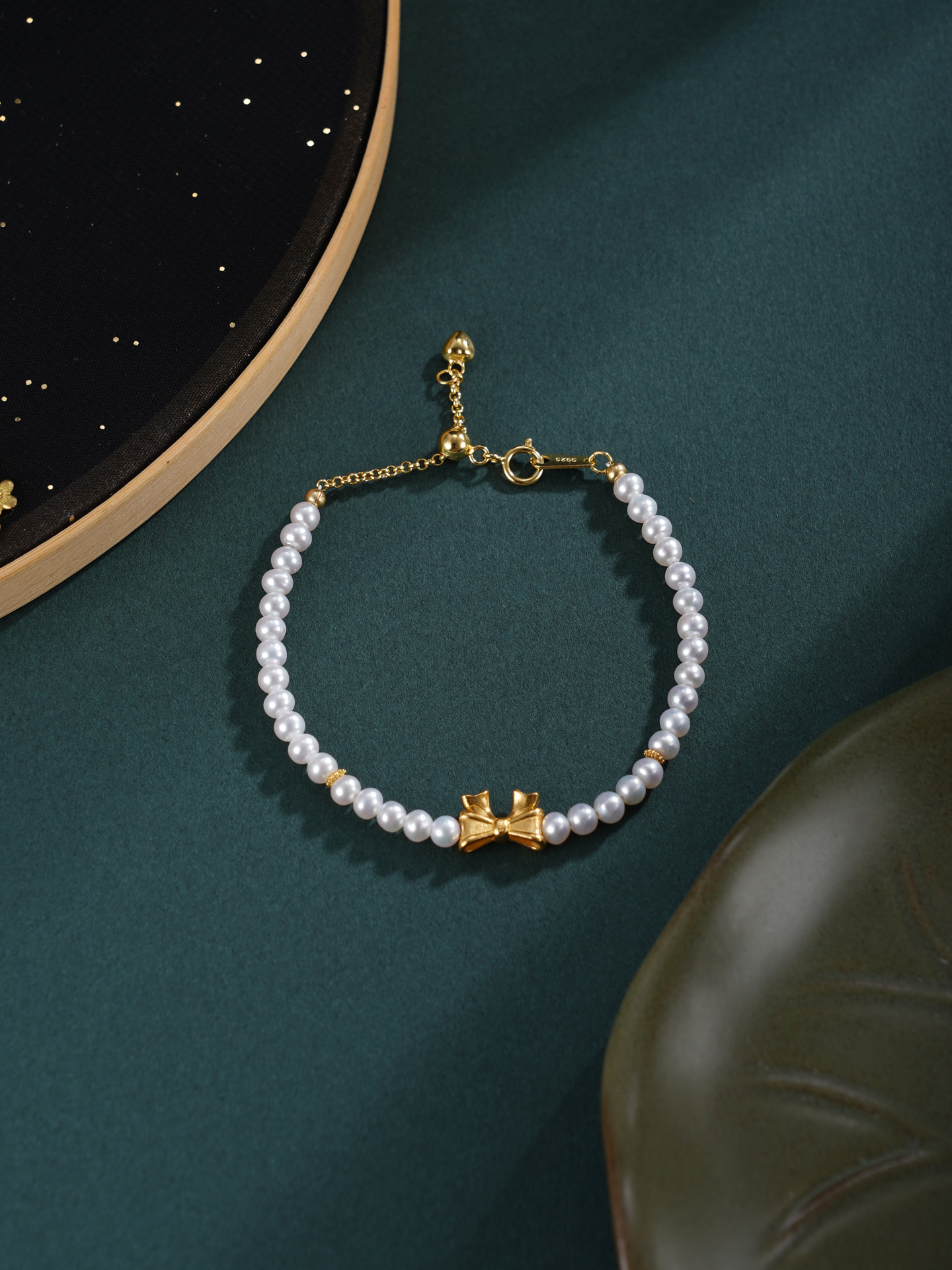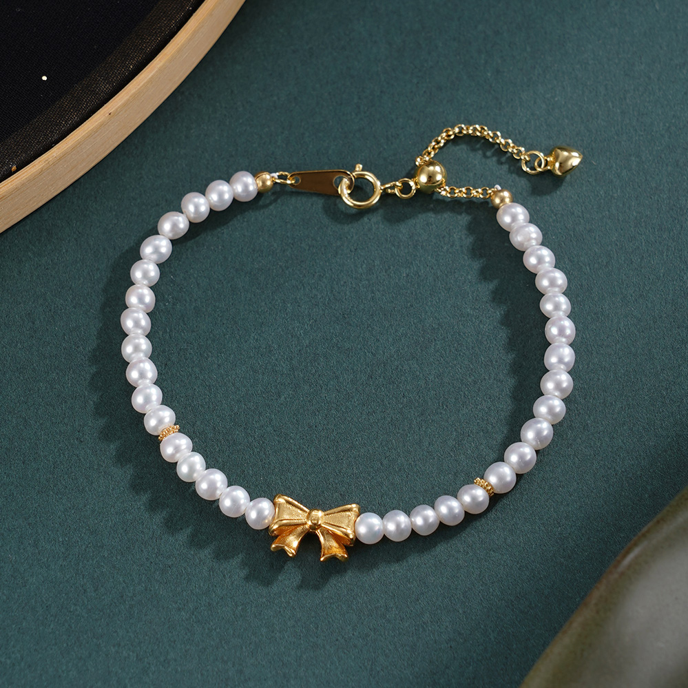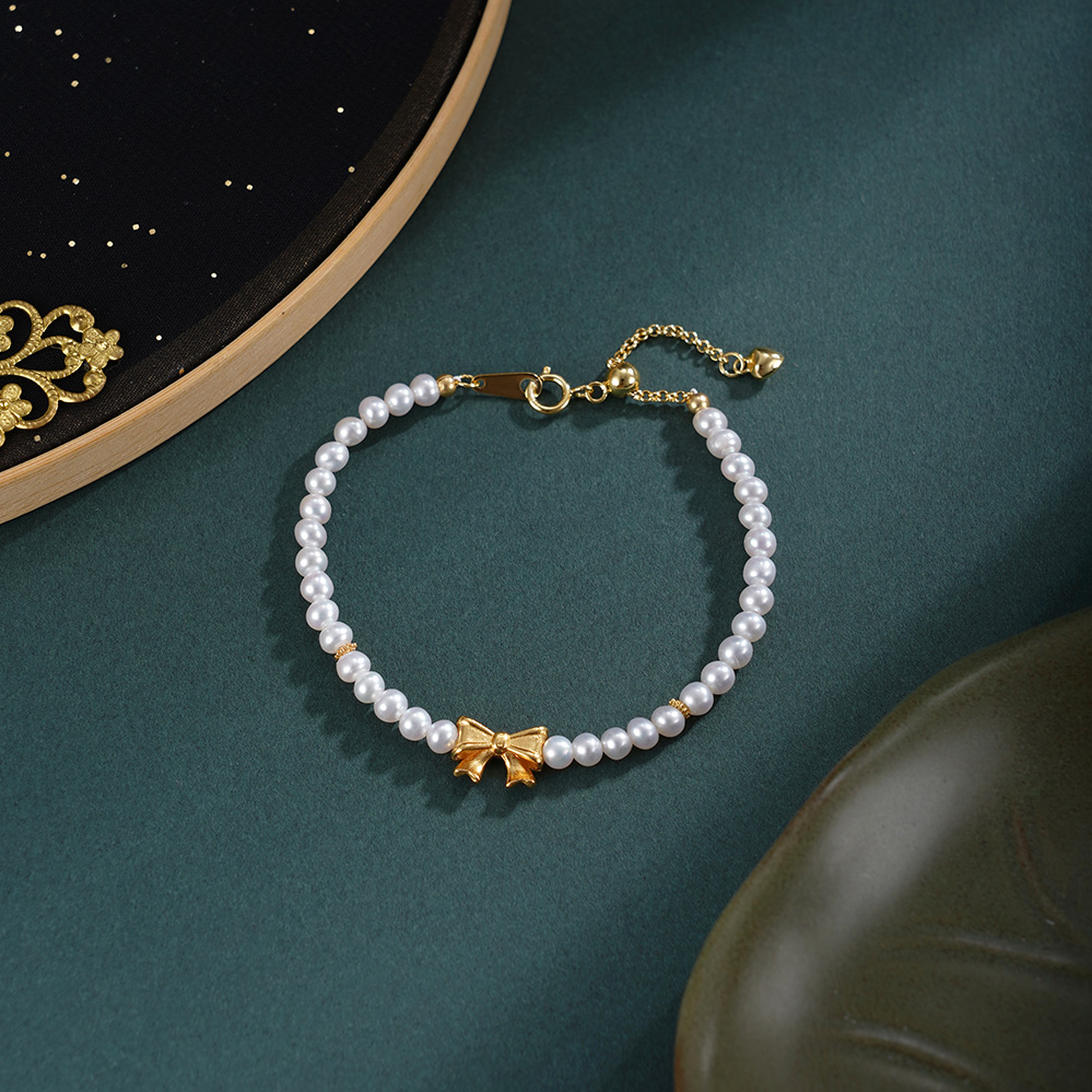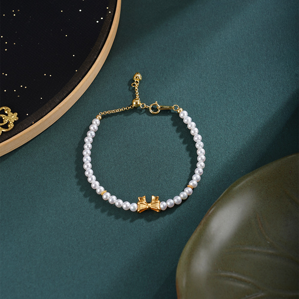 子佩集【巧结情缘】银S925珍珠惜王妃手链【SGB0648001】3.5mm珠镀金蝴蝶结儿童2601