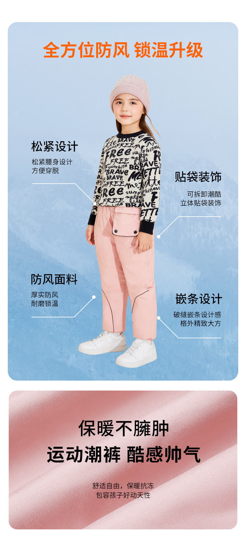 mettekids儿童羽绒裤冬季白鹅绒童装男童女童轻便加厚运动外穿裤