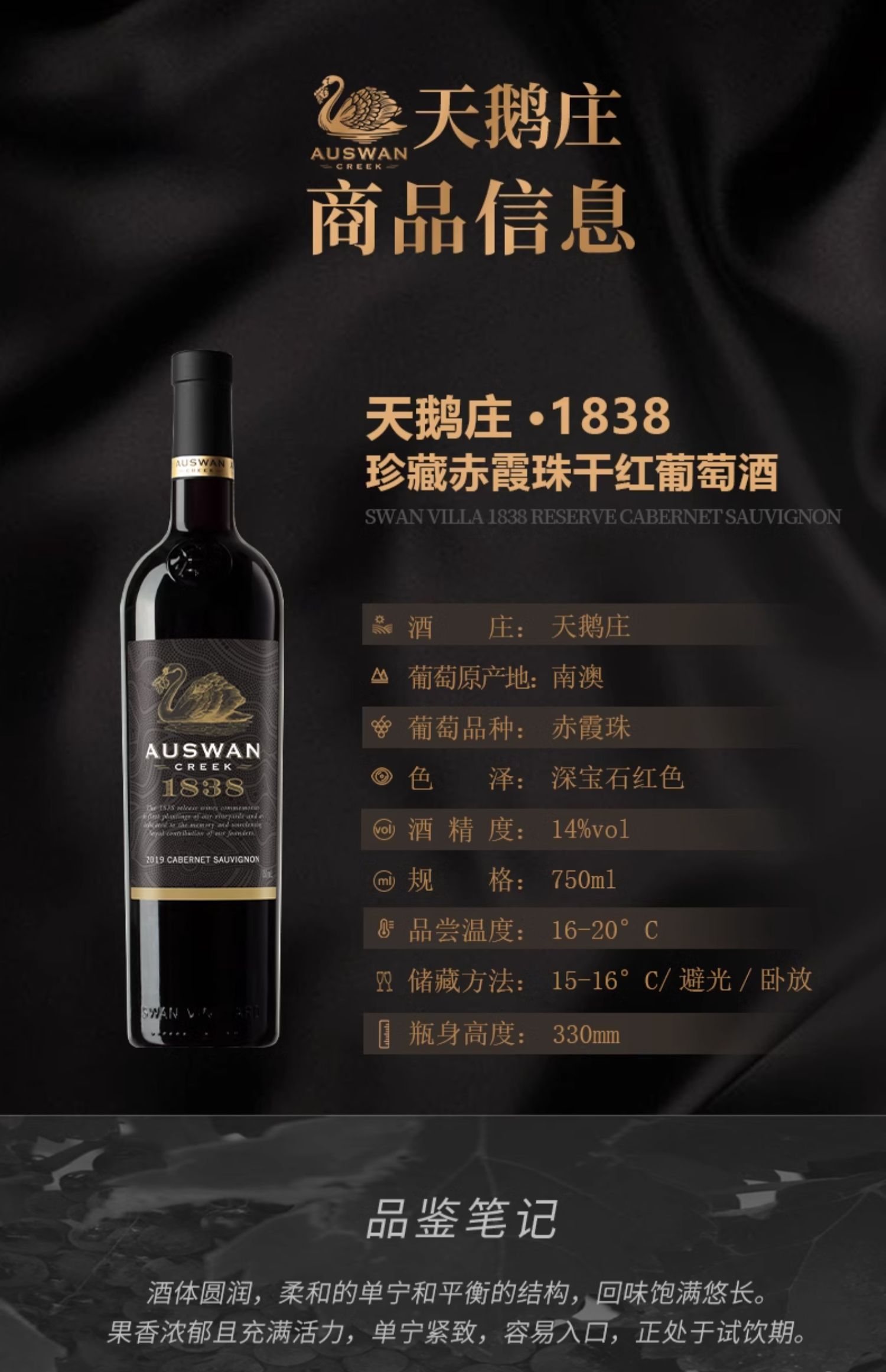 天鹅庄BIN1838赤霞珠干红葡萄酒 750ML