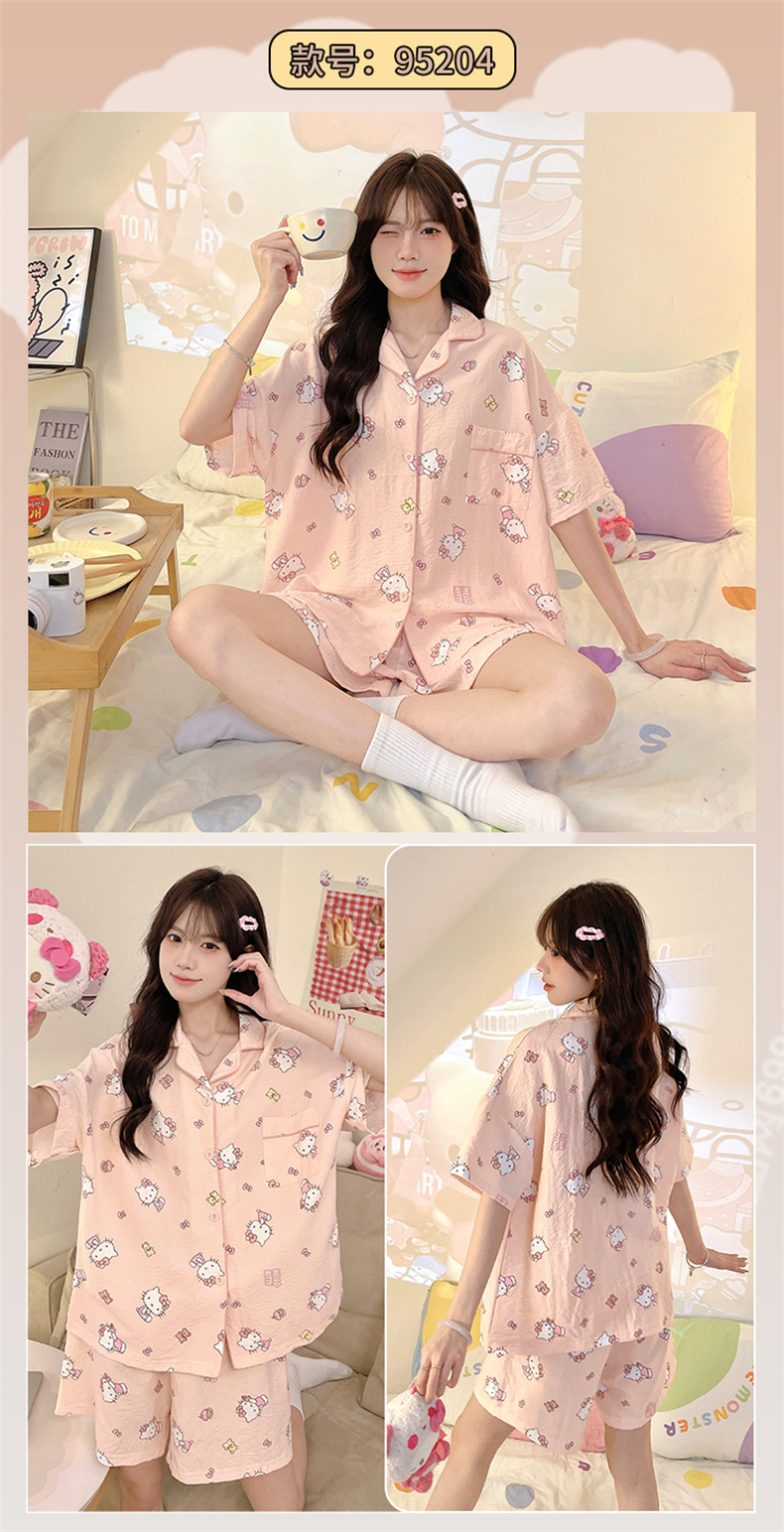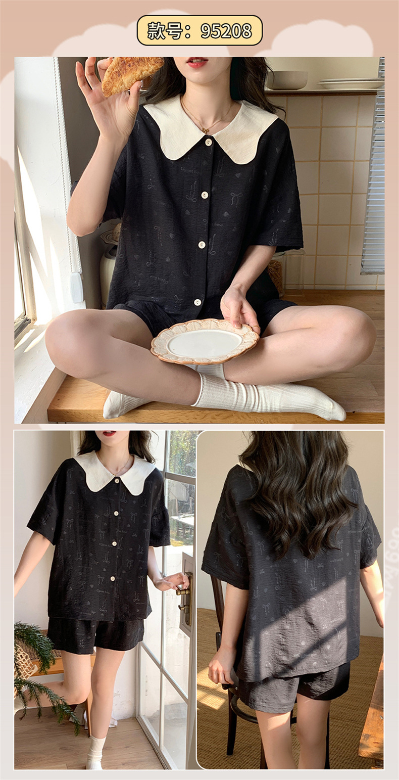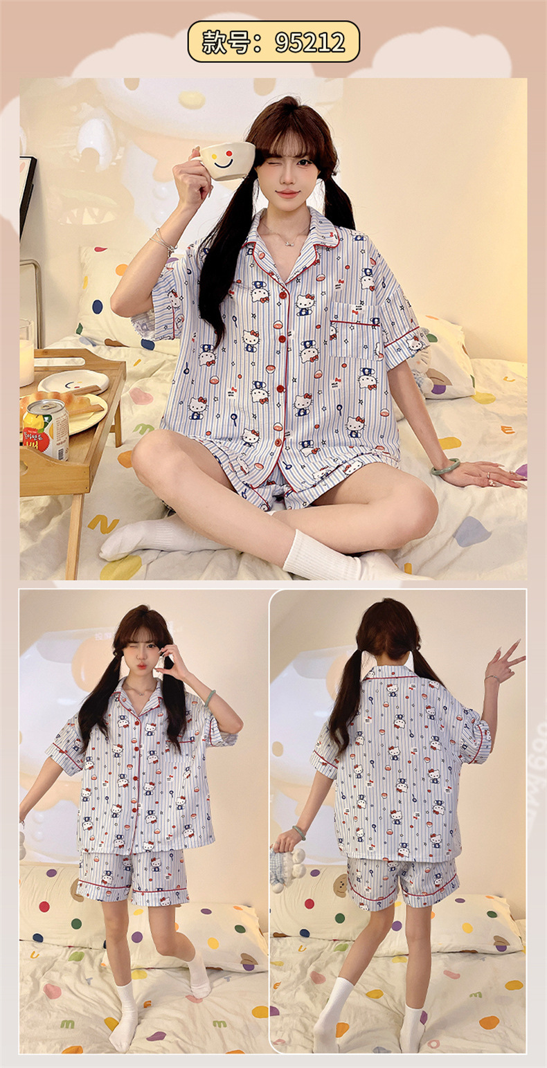 夏季家居秒杀59元【可爱舒适云朵棉睡衣】夏天新款短袖套装 撞色格子开衫家居服
