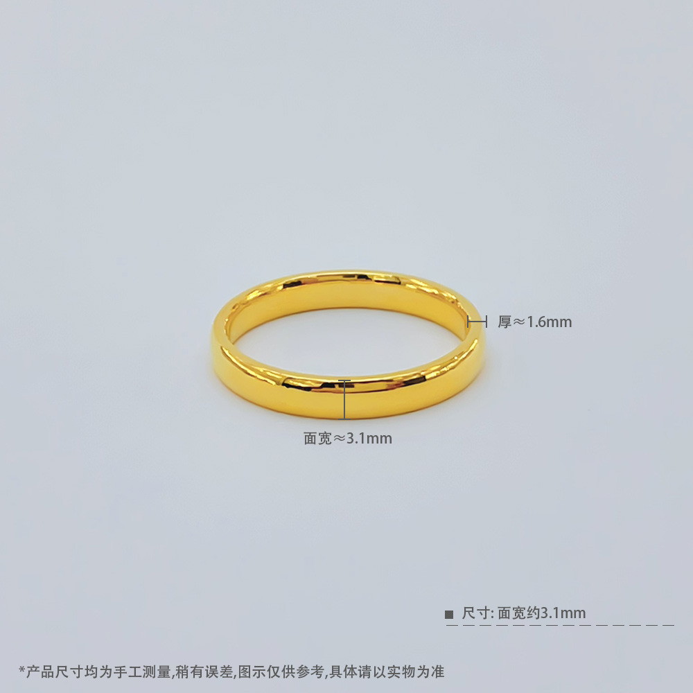 足金999.9 【精品】空心固口戒指亮面光面素圈戒指条戒(面宽约2.9-3.3mm)(AIJZ00141-1)