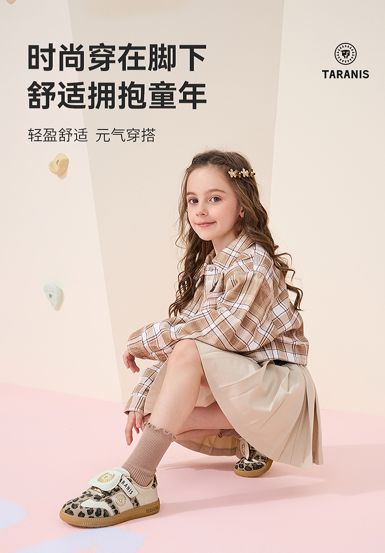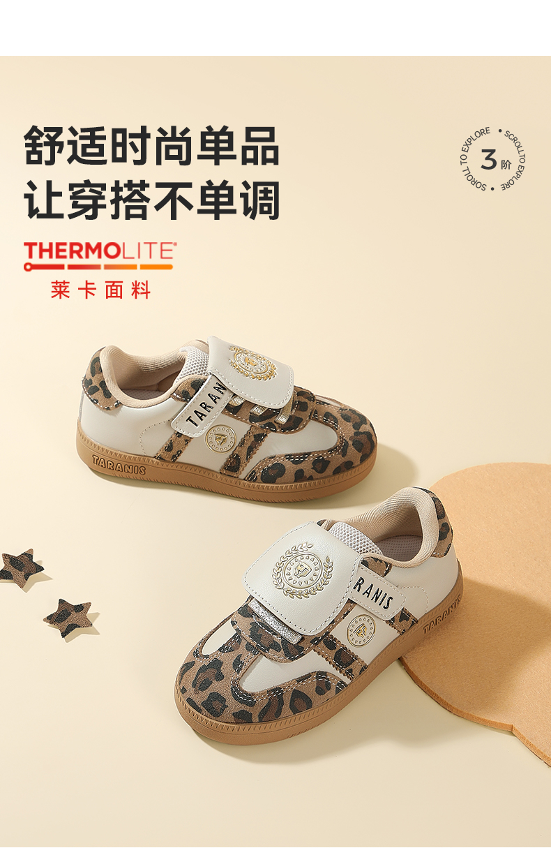 泰兰尼斯童鞋2025秋季新款儿童板鞋男童软底小童时尚豹纹运动鞋子 T02X5C6860