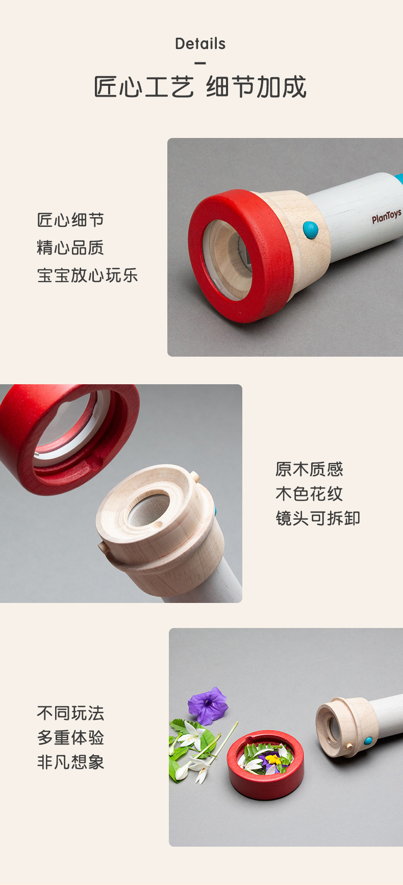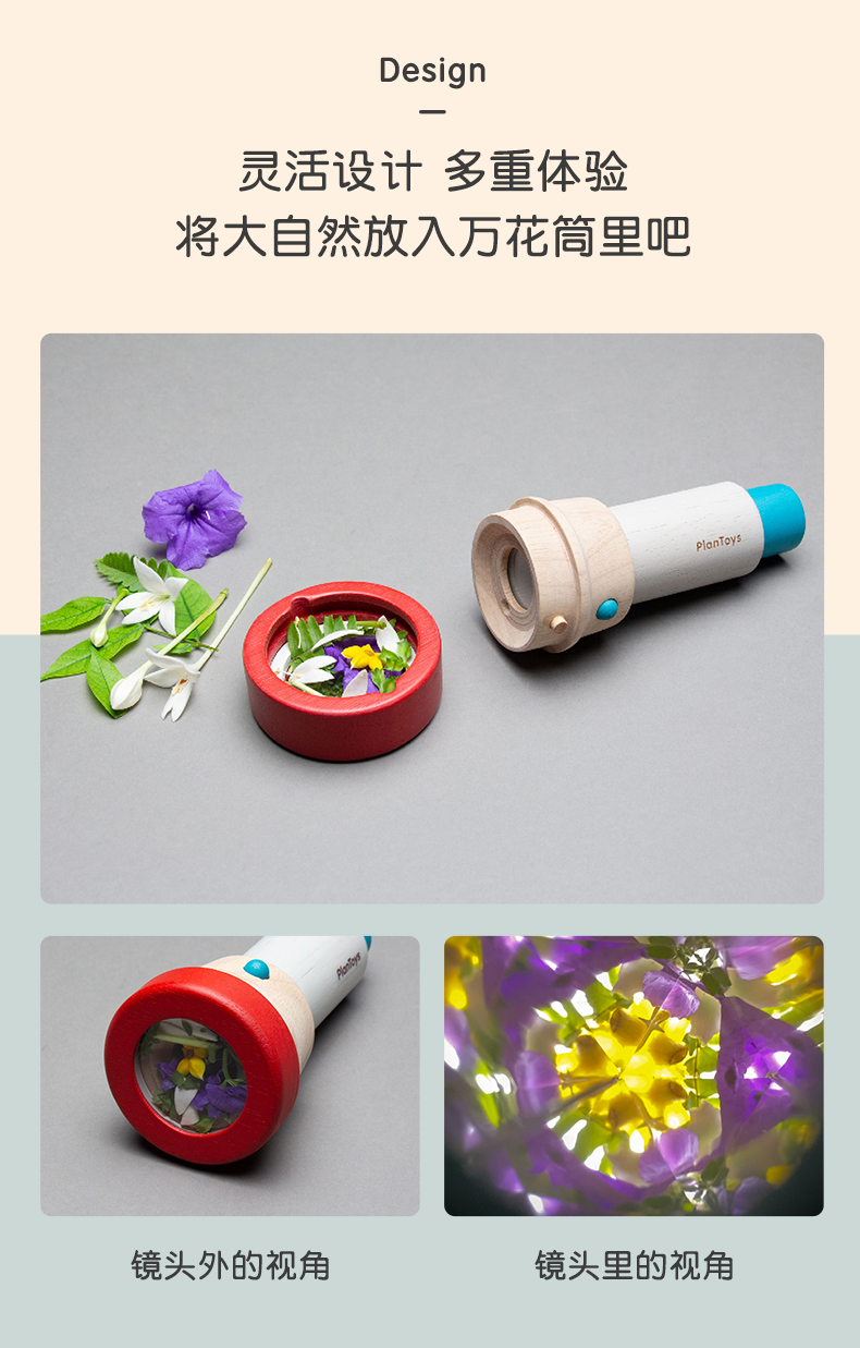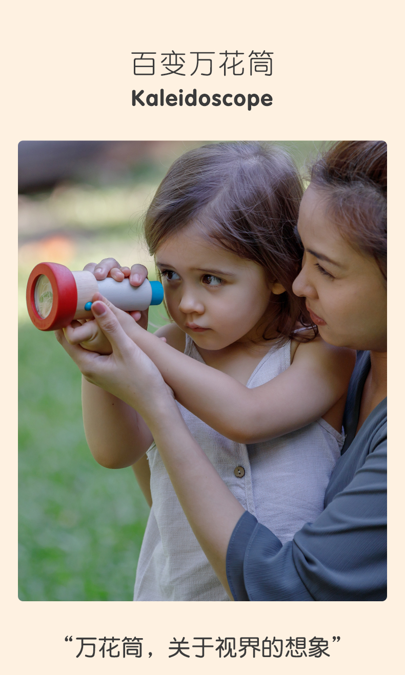 3岁+ | 泰国PlanToys 百变万花筒儿童早教益智类玩具科学探索多棱镜木制万花筒