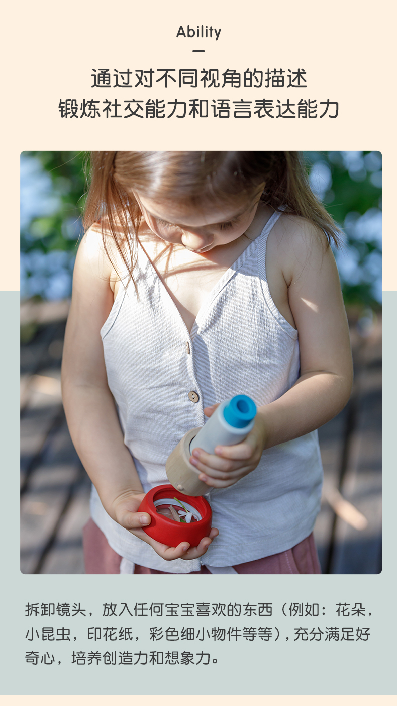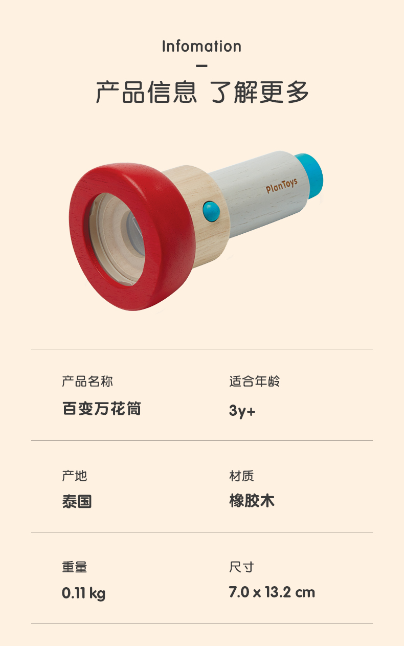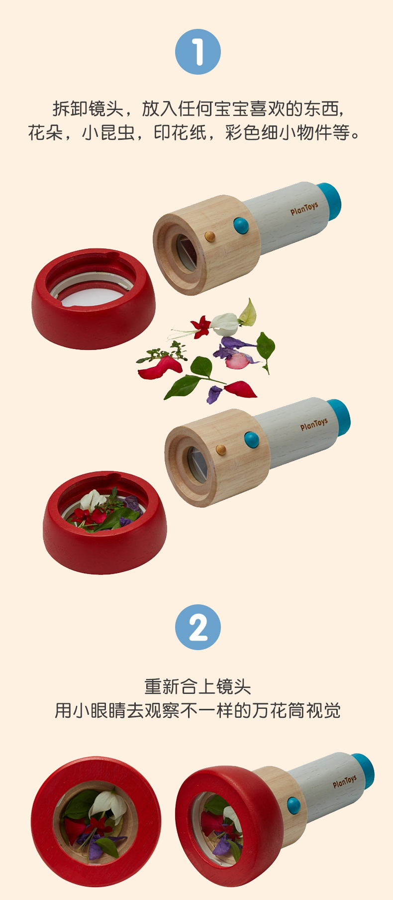 3岁+ | 泰国PlanToys 百变万花筒儿童早教益智类玩具科学探索多棱镜木制万花筒
