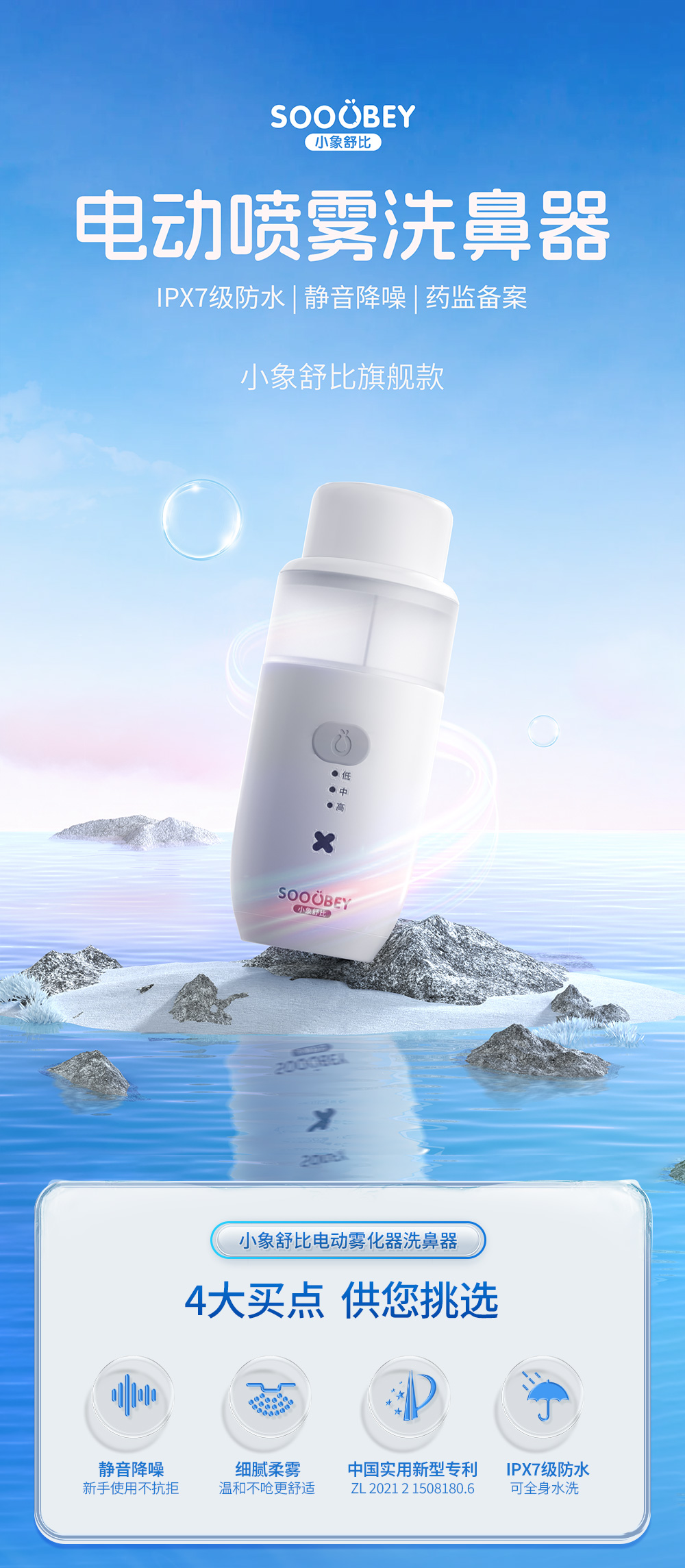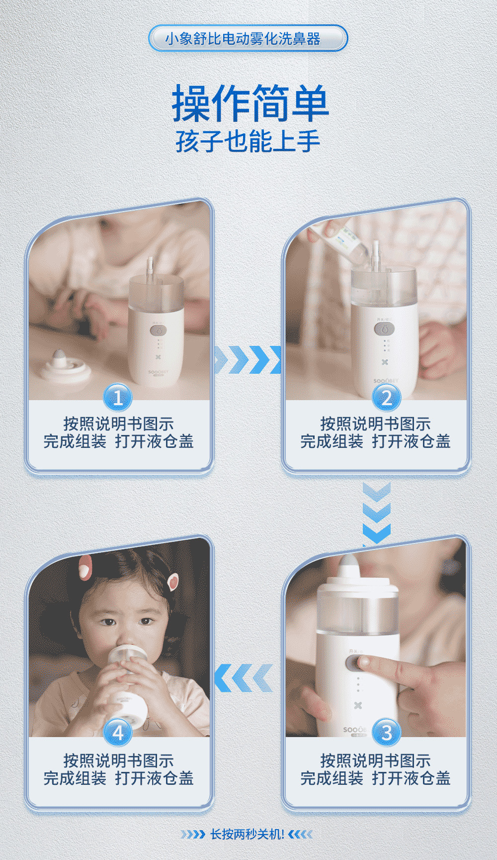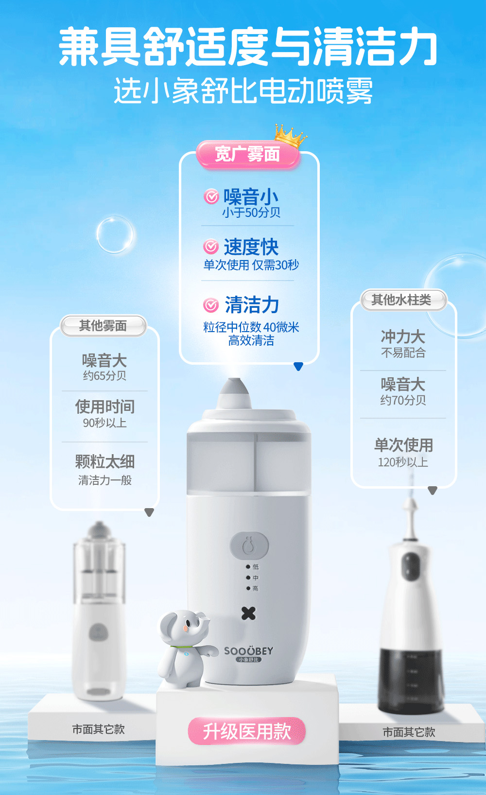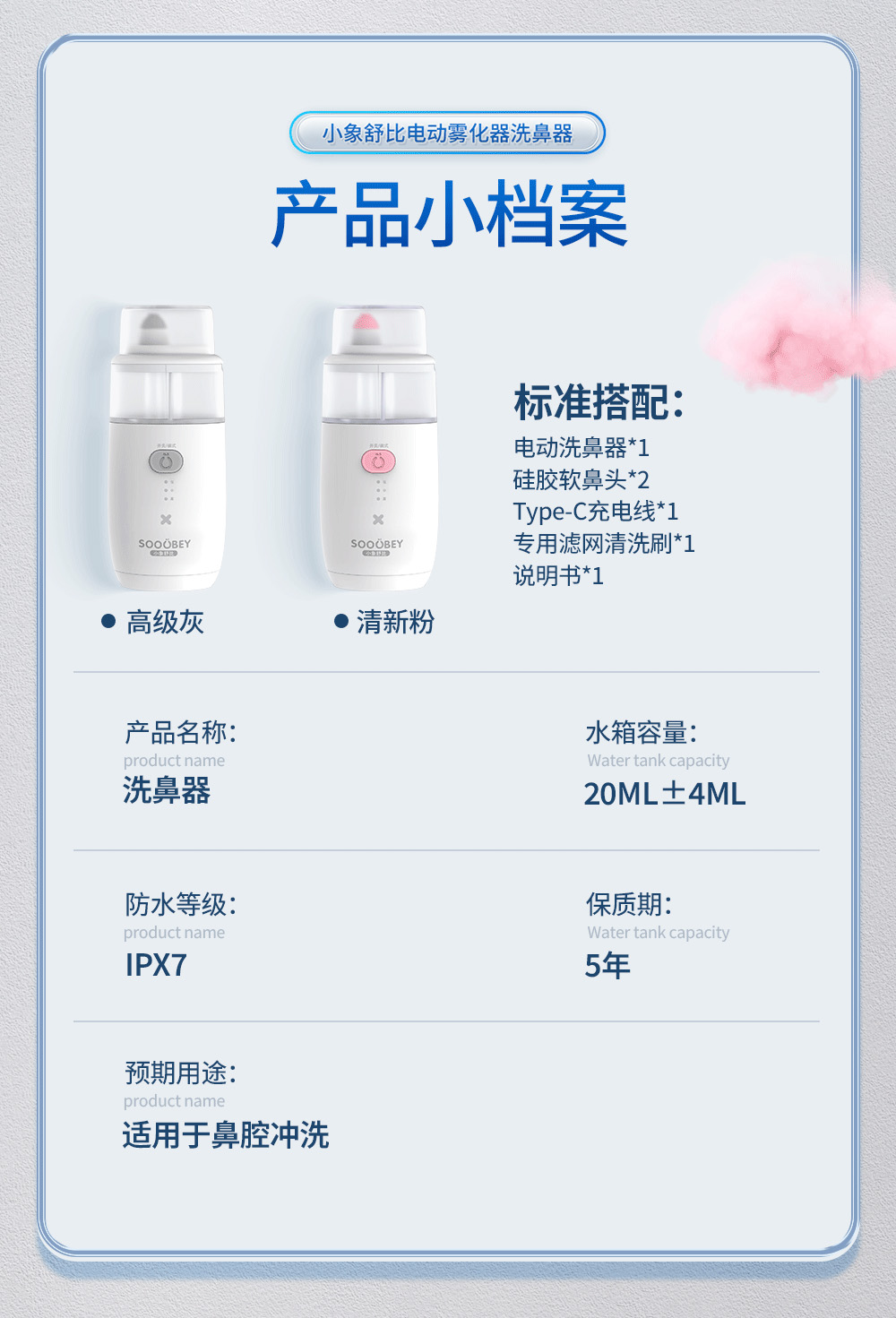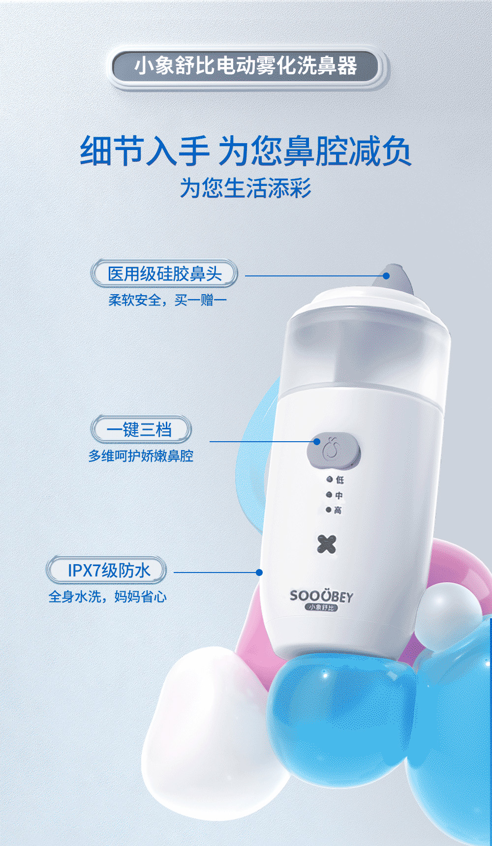 11【品牌直发】小象舒比儿童专用静音舒适电动喷雾洗鼻器海盐水鼻腔冲洗通鼻家用冲洗神器