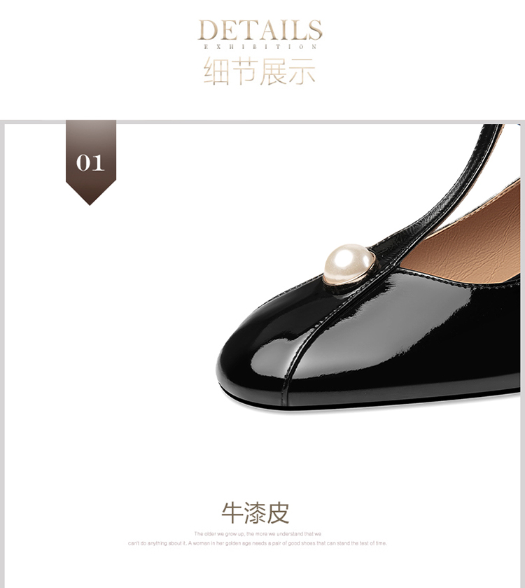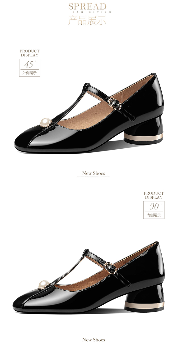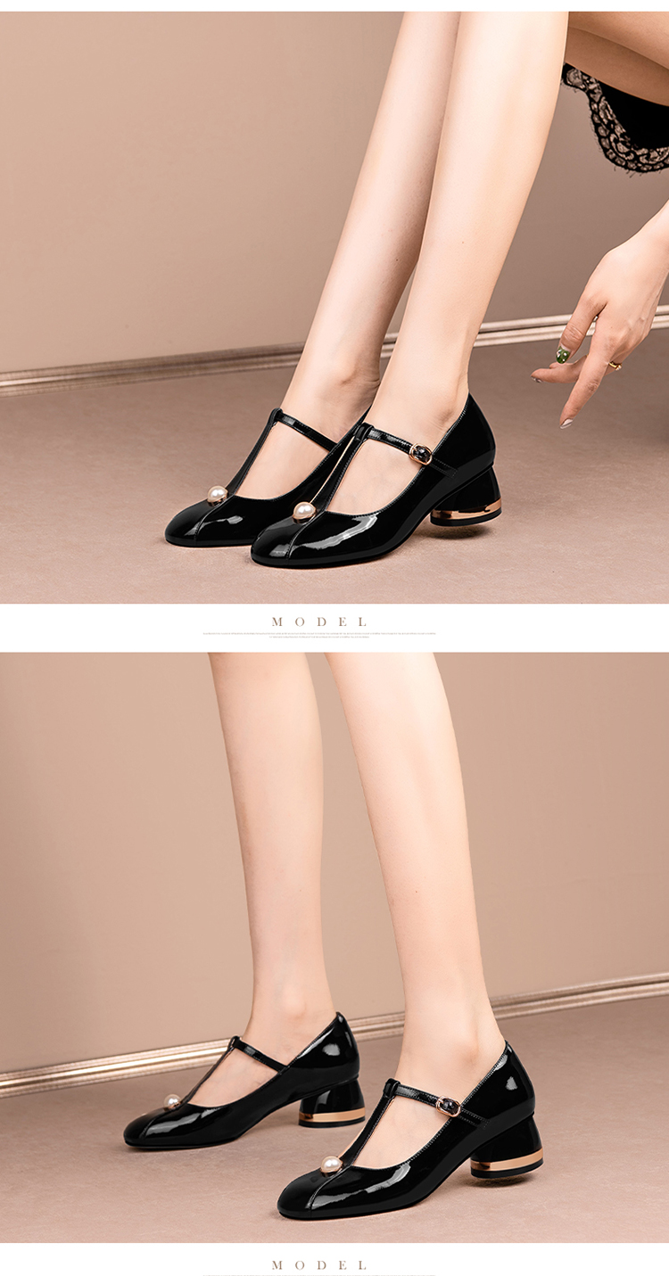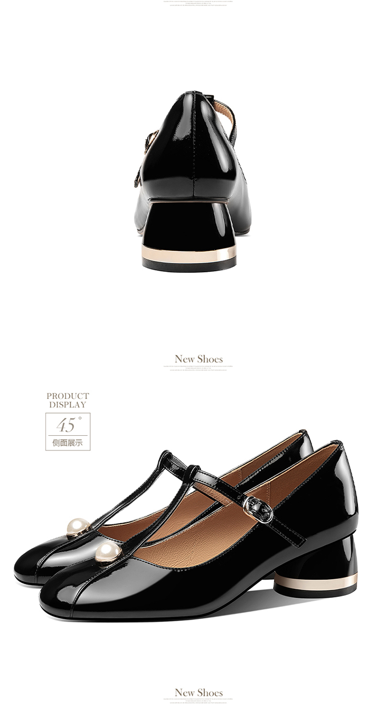 简约百搭,真皮亮面钉珠圆头单鞋HY-H2659