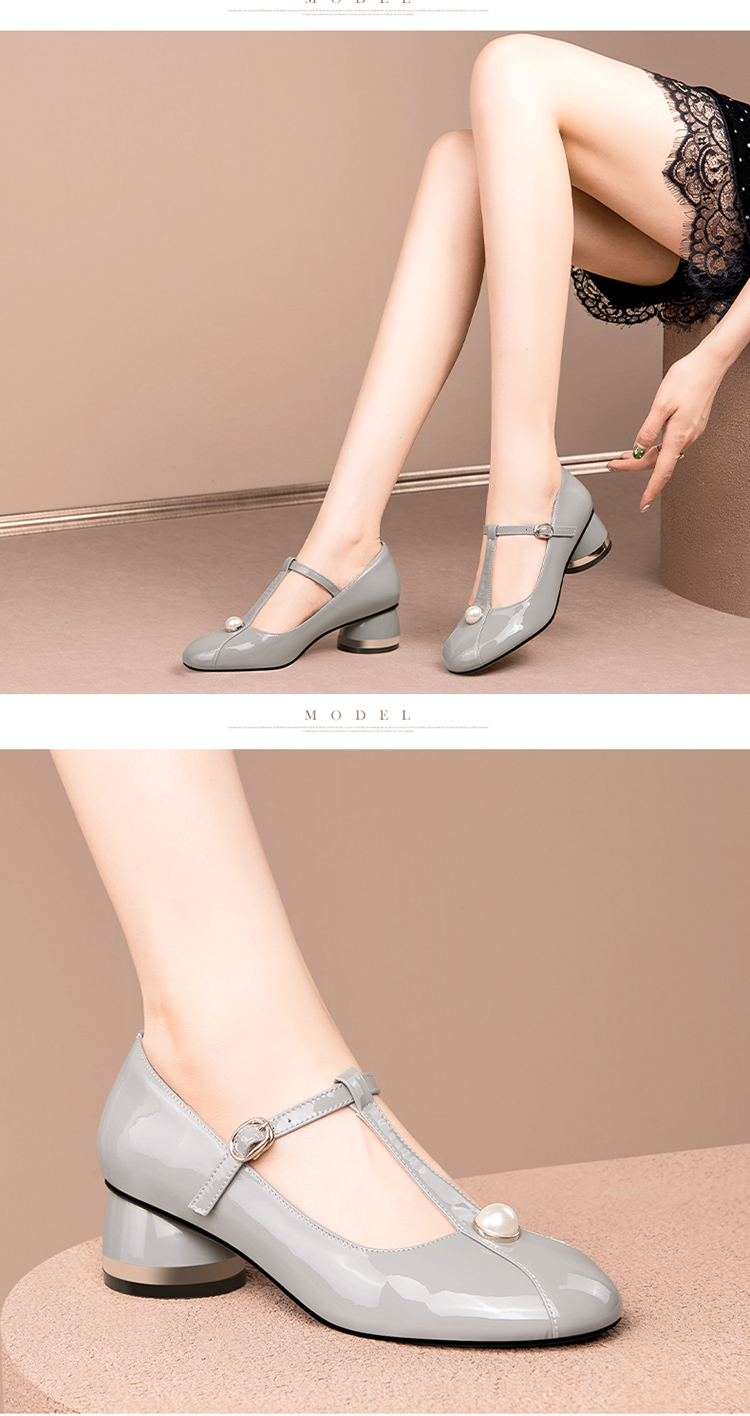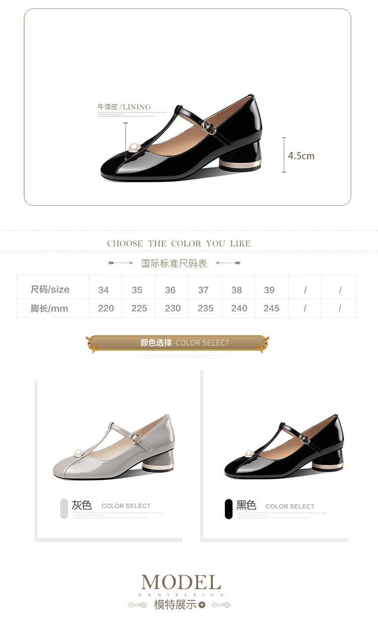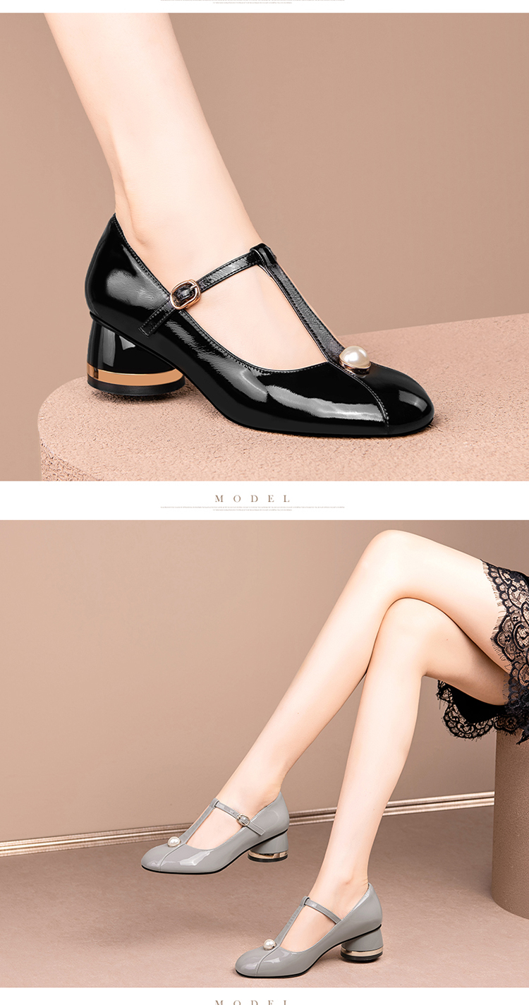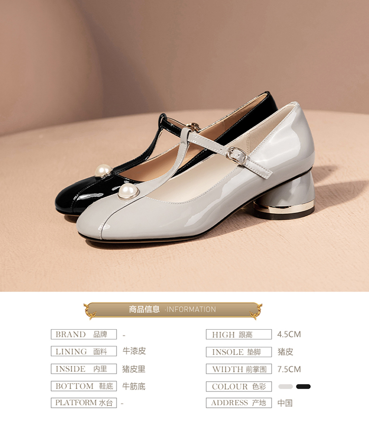 简约百搭,真皮亮面钉珠圆头单鞋HY-H2659