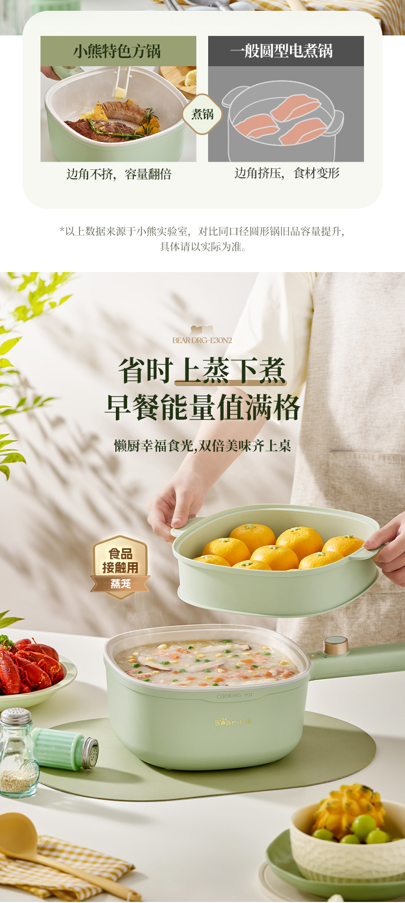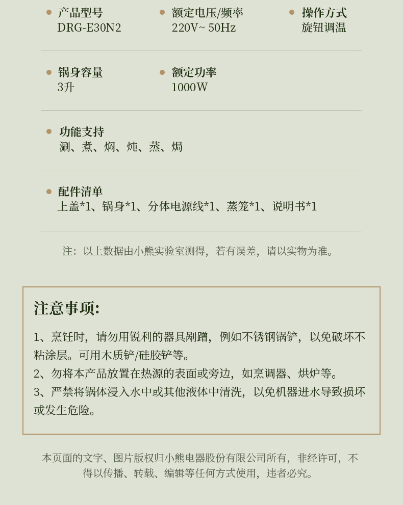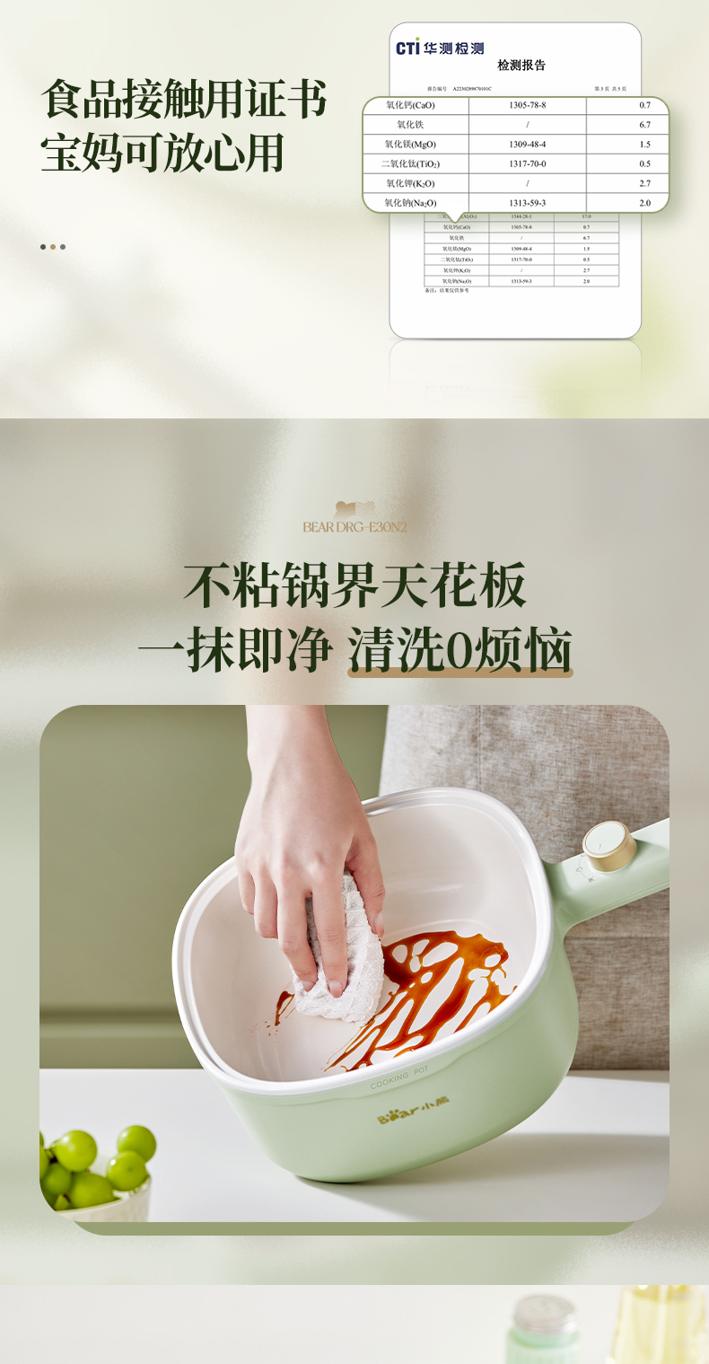 【小程序】小熊(Bear)电煮锅 电火锅 小电锅 电热锅 3L多功能电蒸锅 电炒锅一体 学生宿舍泡面火锅 配蒸笼丨DRG-E30N2