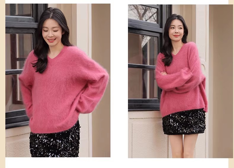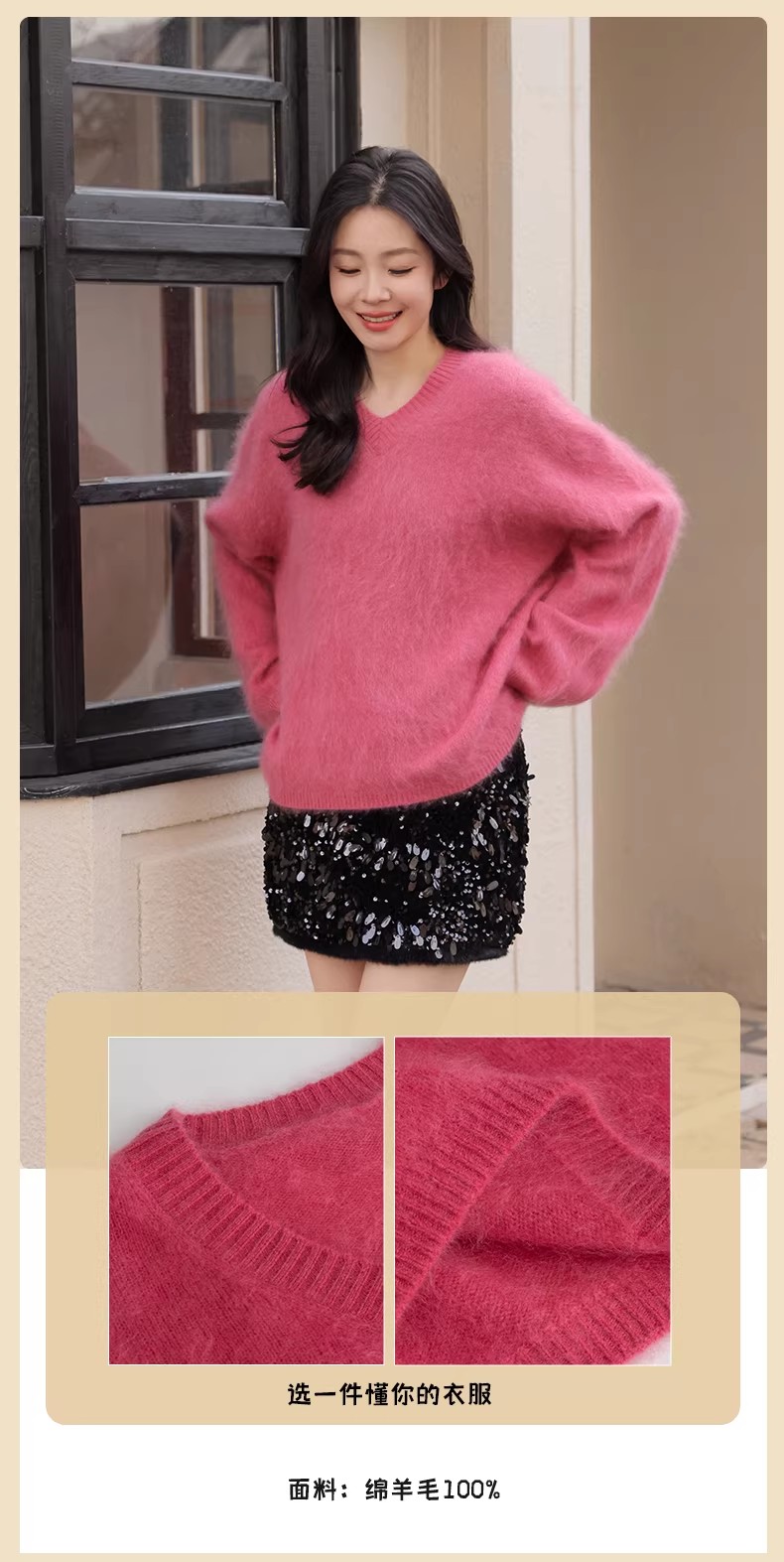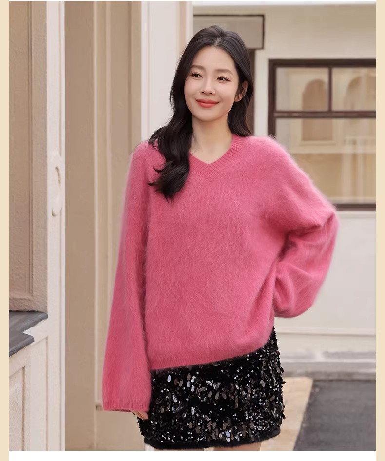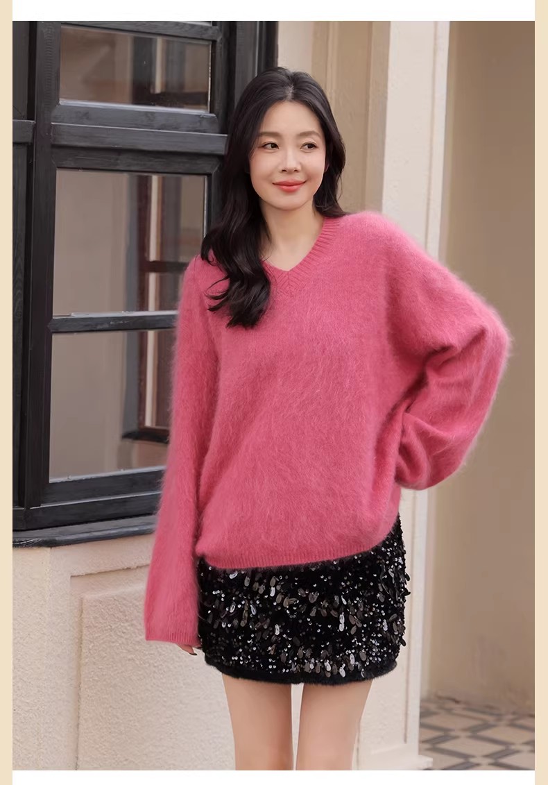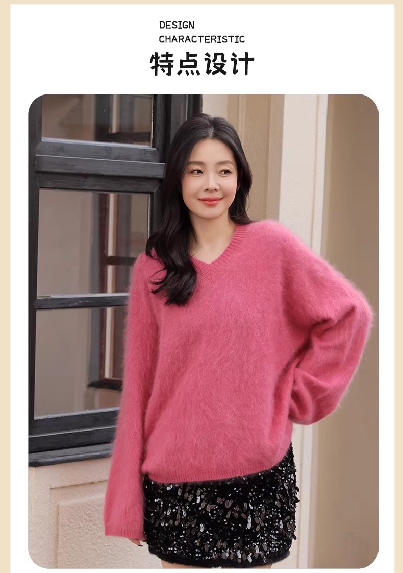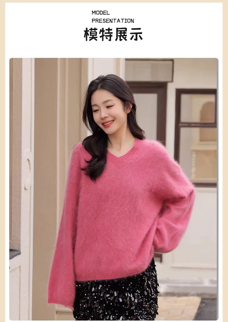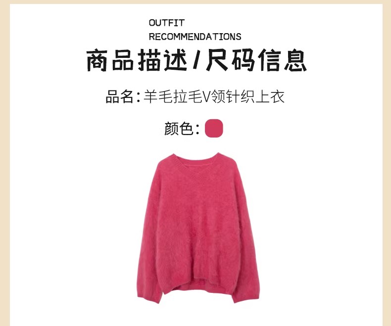 【门店同款】ENJOY冬季“暖冬软糖”羊毛拉毛V领针织上衣 168993288