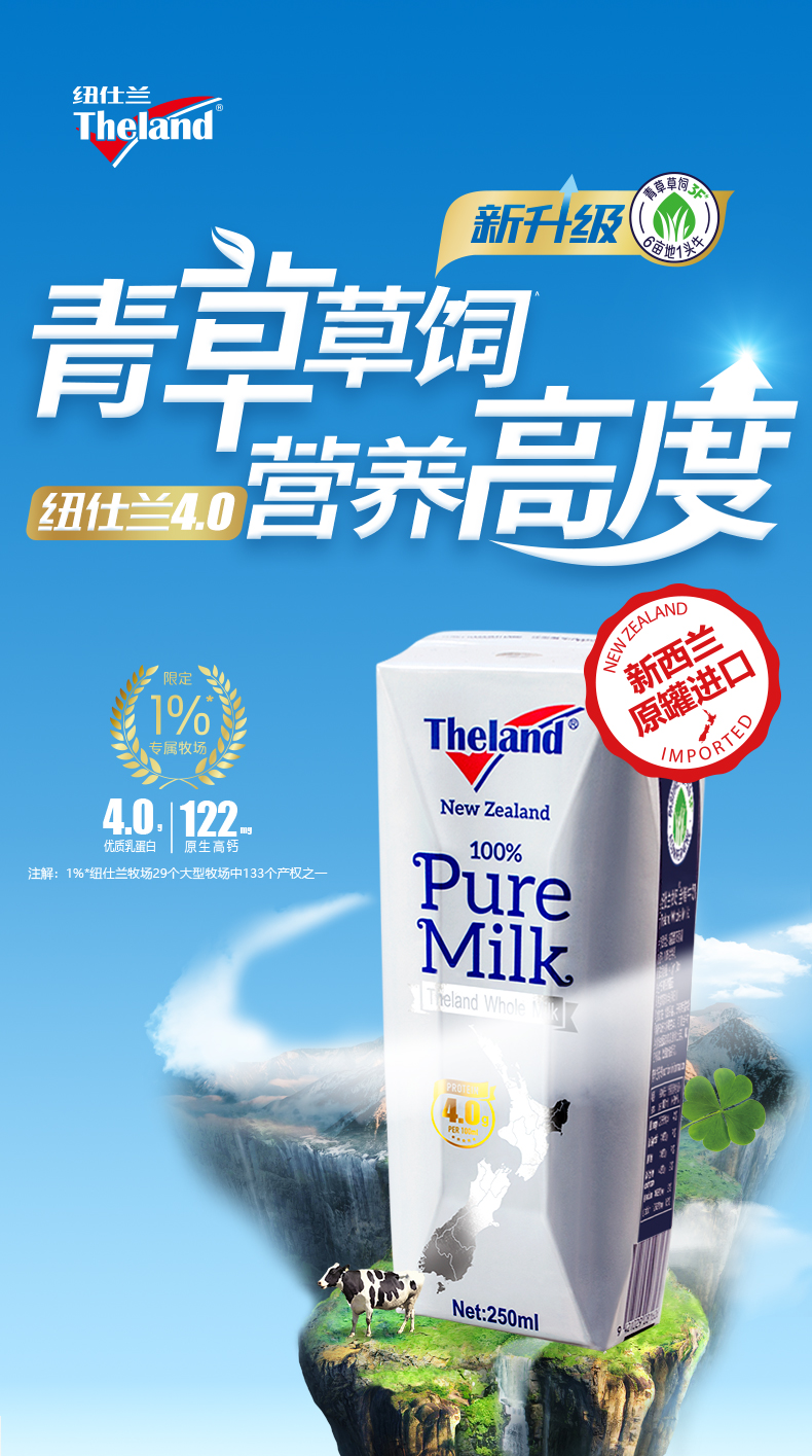新西兰纽仕兰牧场全脂牛奶礼盒250ml*10/025529 纯牛奶4.0g蛋白质