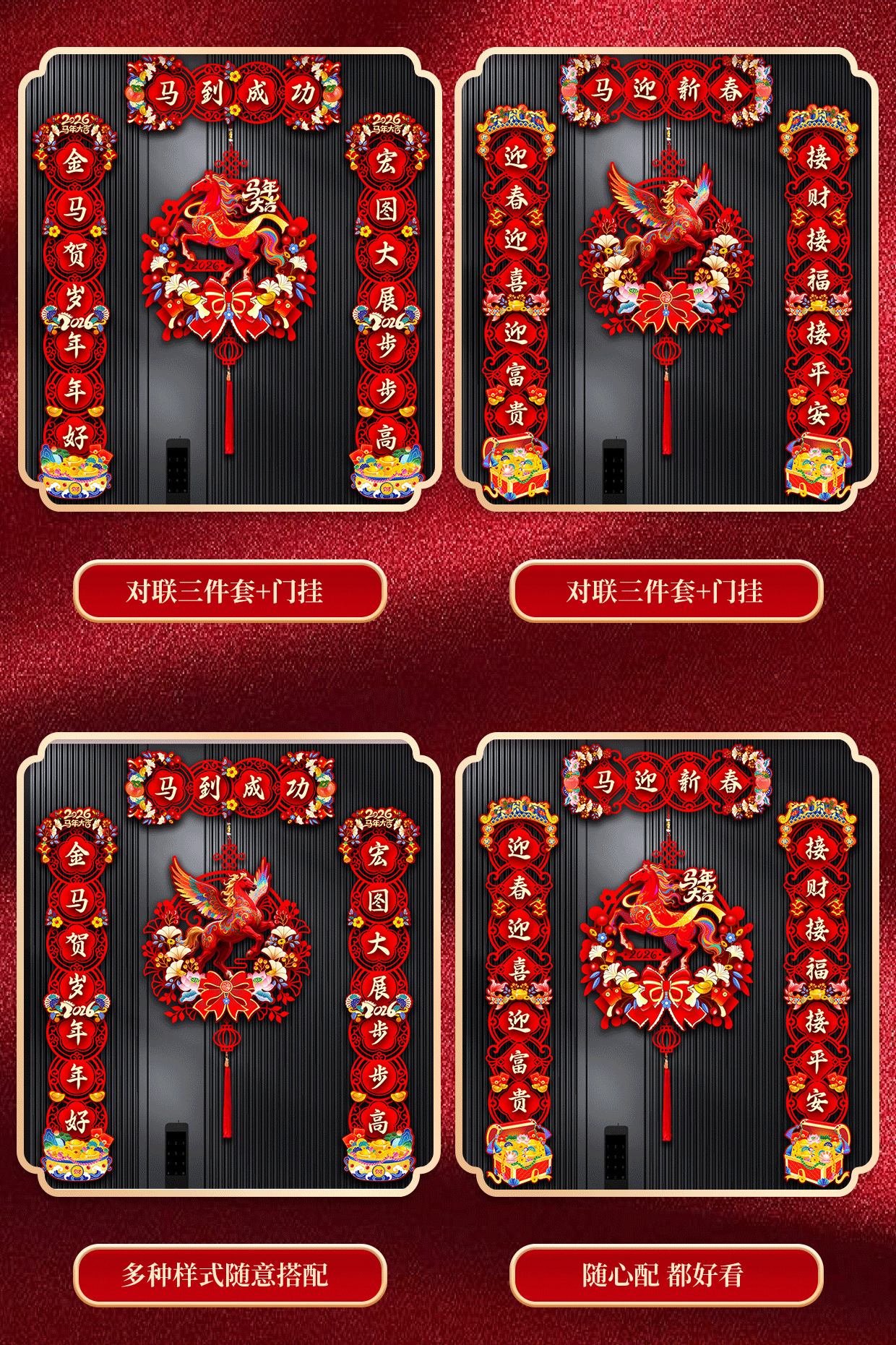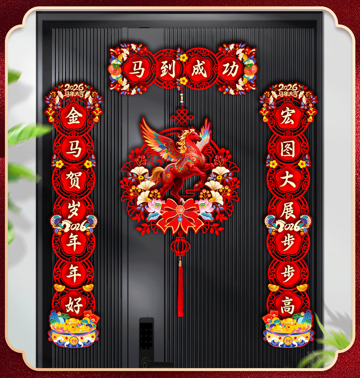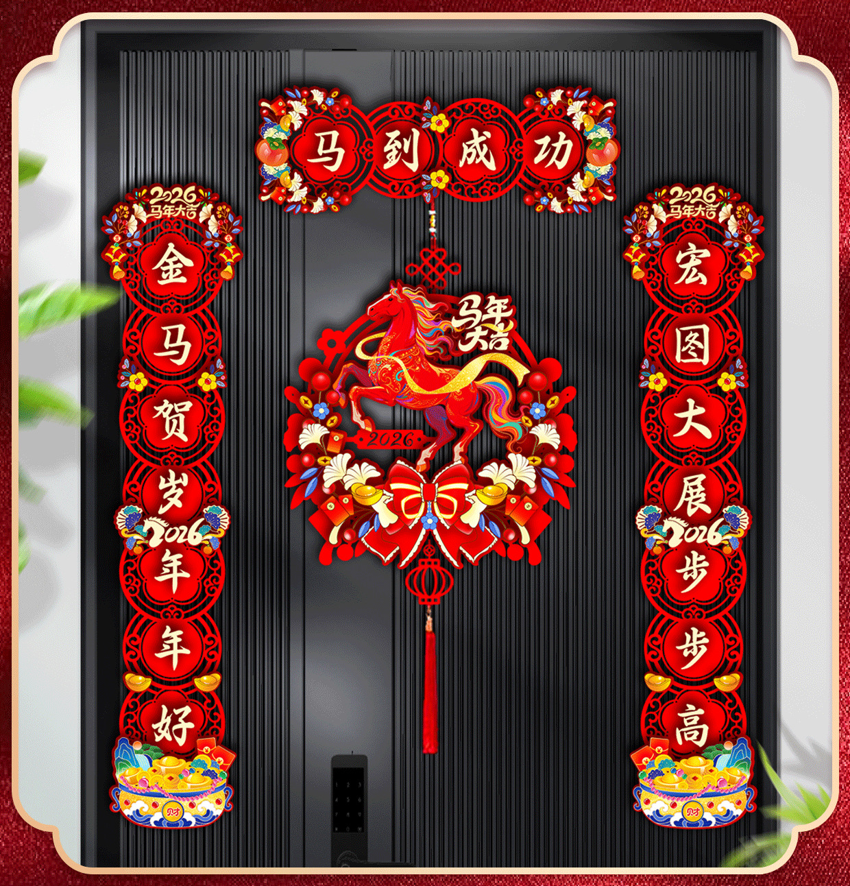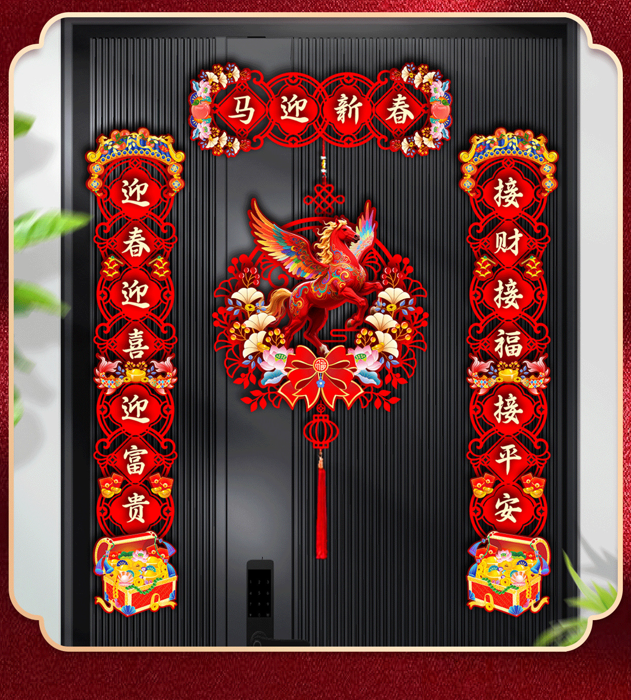 【马年新款磁吸对联】 2026马年新款过年春节家用大门装饰 立体植绒福字门贴春联