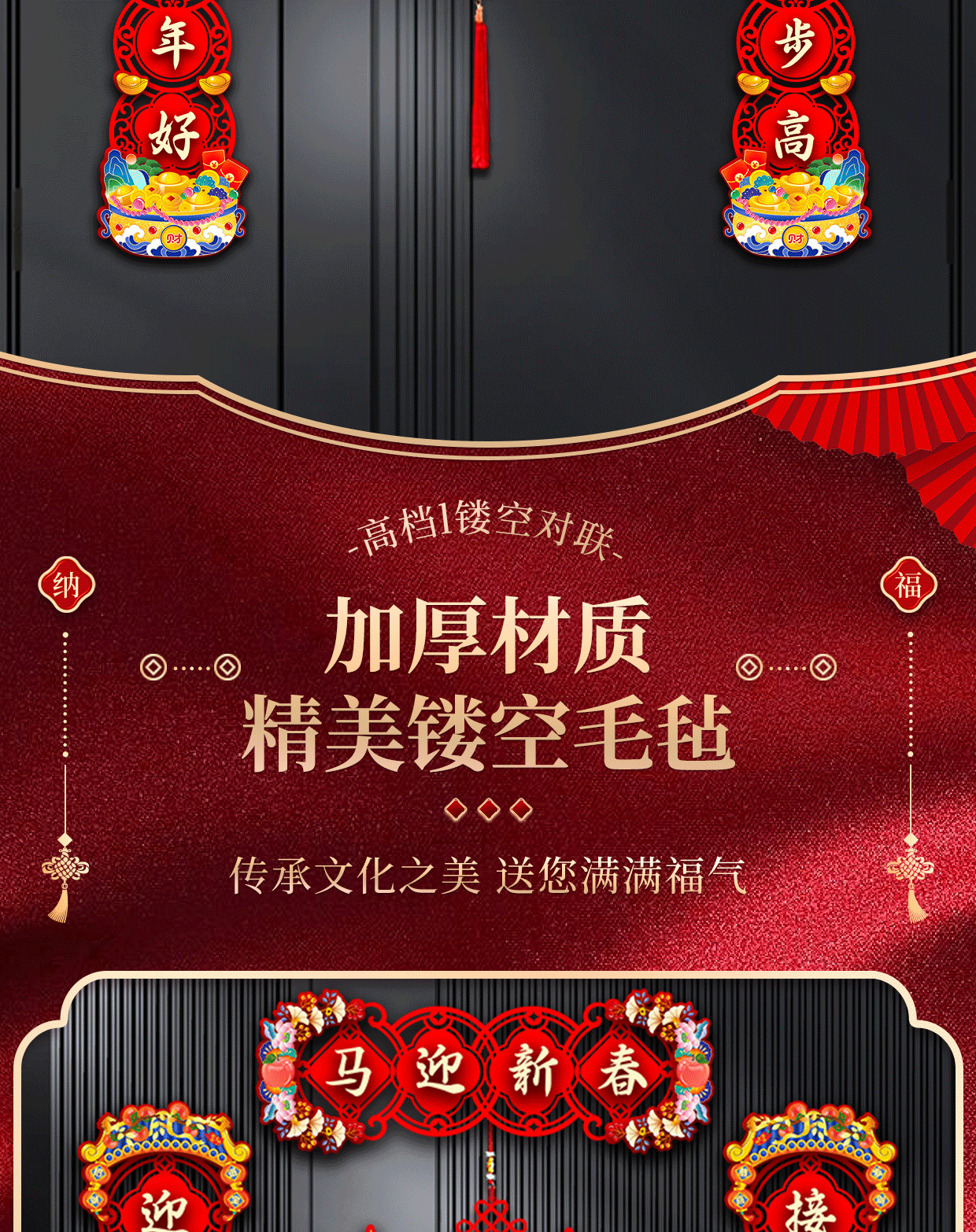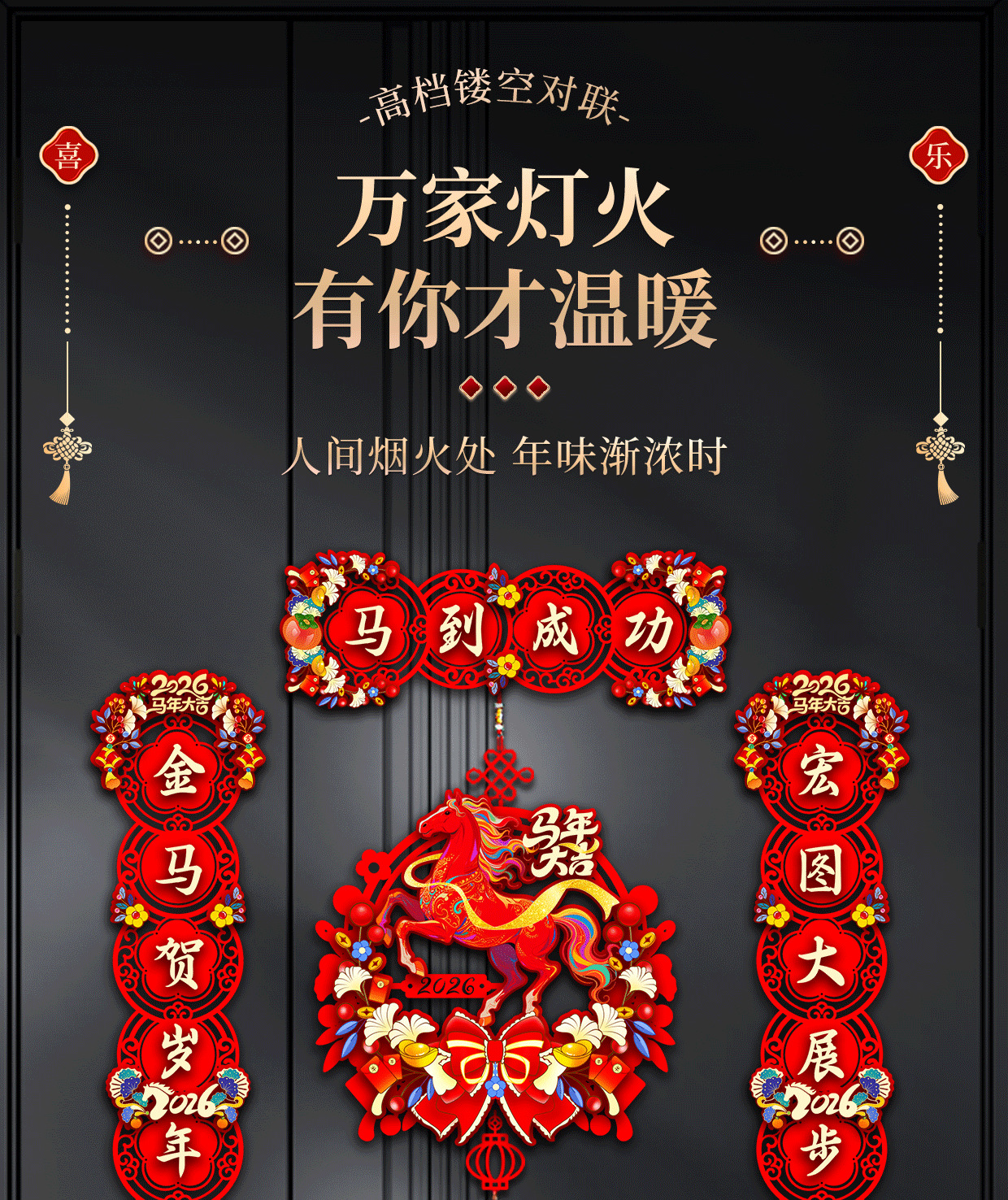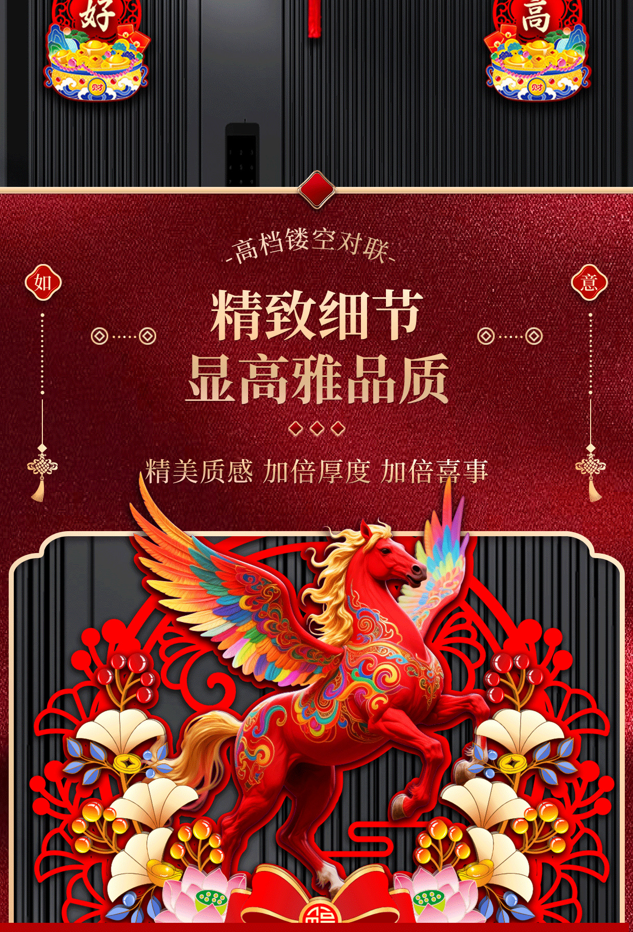 【马年新款磁吸对联】 2026马年新款过年春节家用大门装饰 立体植绒福字门贴春联
