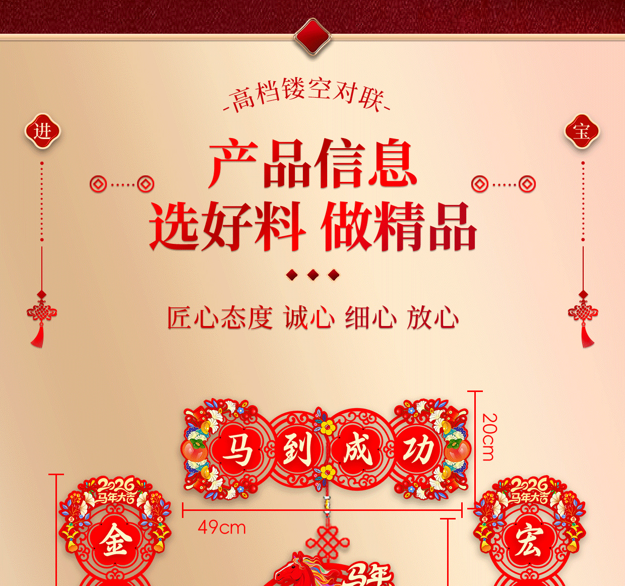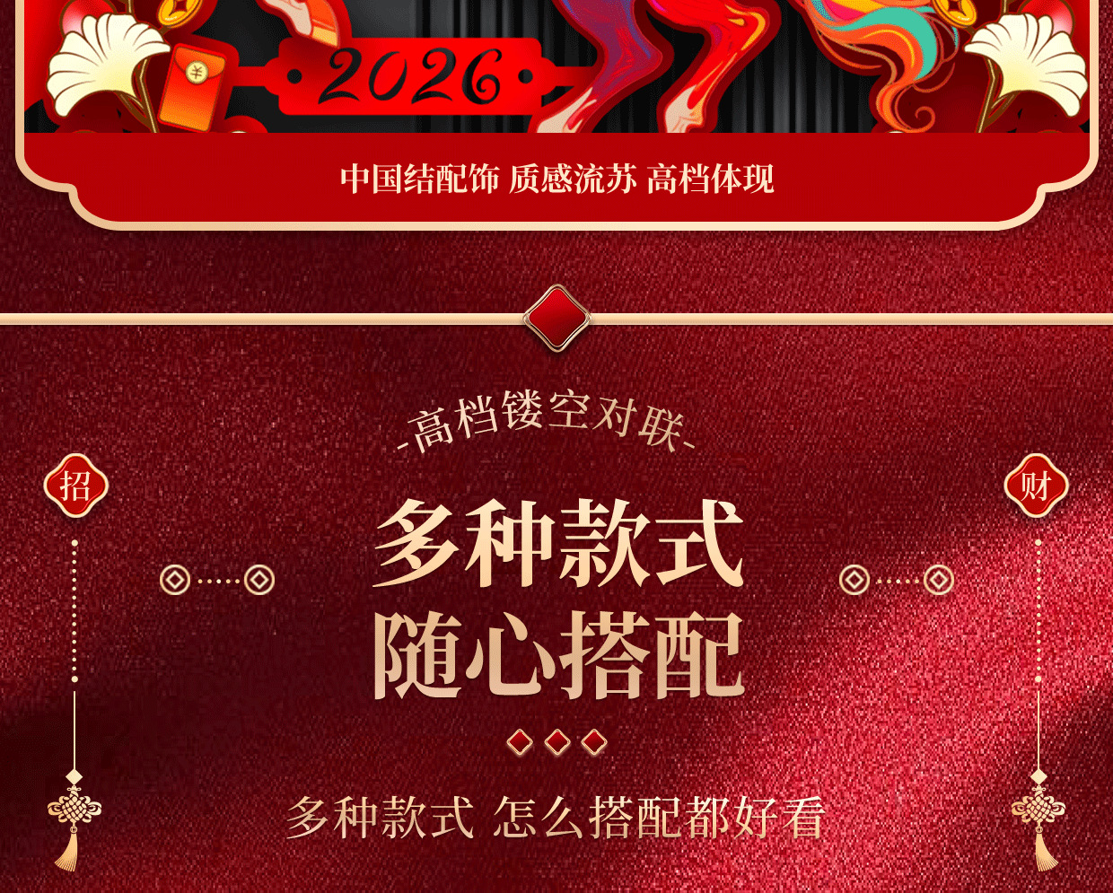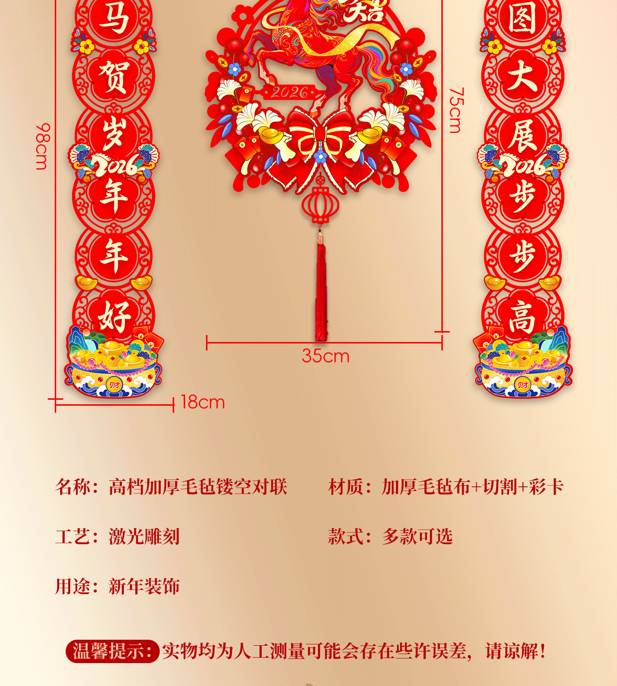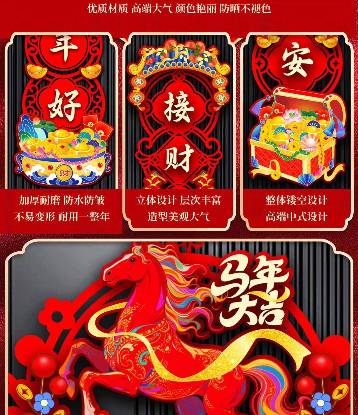 【马年新款磁吸对联】 2026马年新款过年春节家用大门装饰 立体植绒福字门贴春联