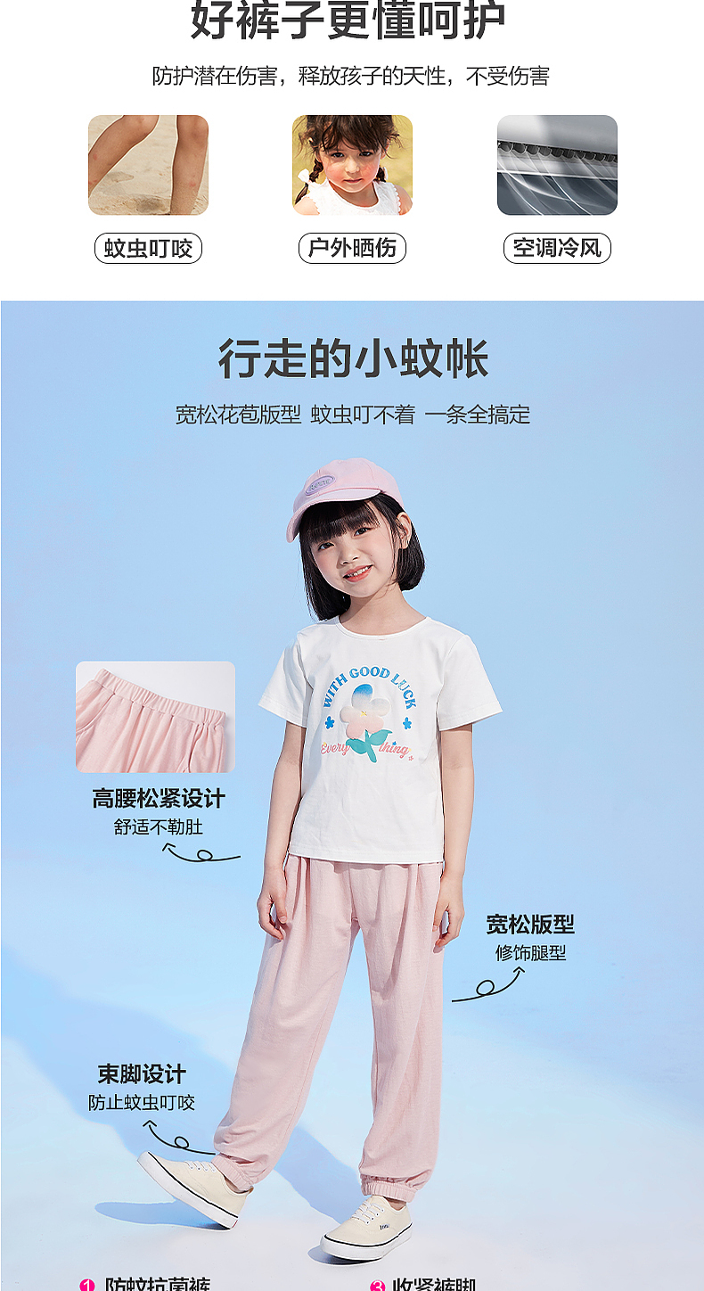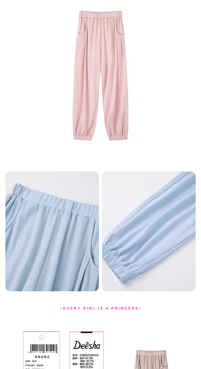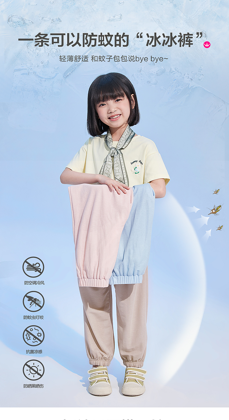 笛莎官方童装女童裤子夏季2023新款夏装凉感长裤儿童艾草防蚊裤薄