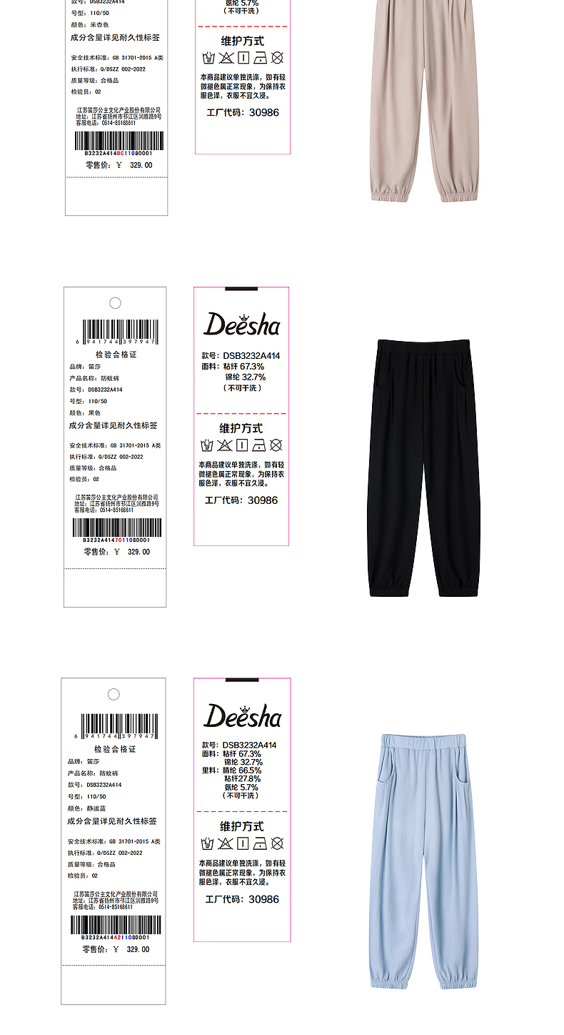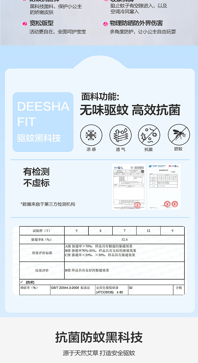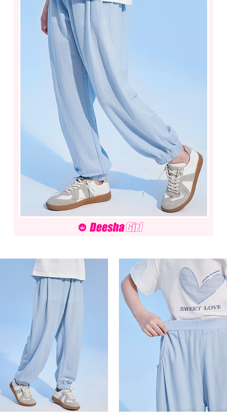 笛莎官方童装女童裤子夏季2023新款夏装凉感长裤儿童艾草防蚊裤薄