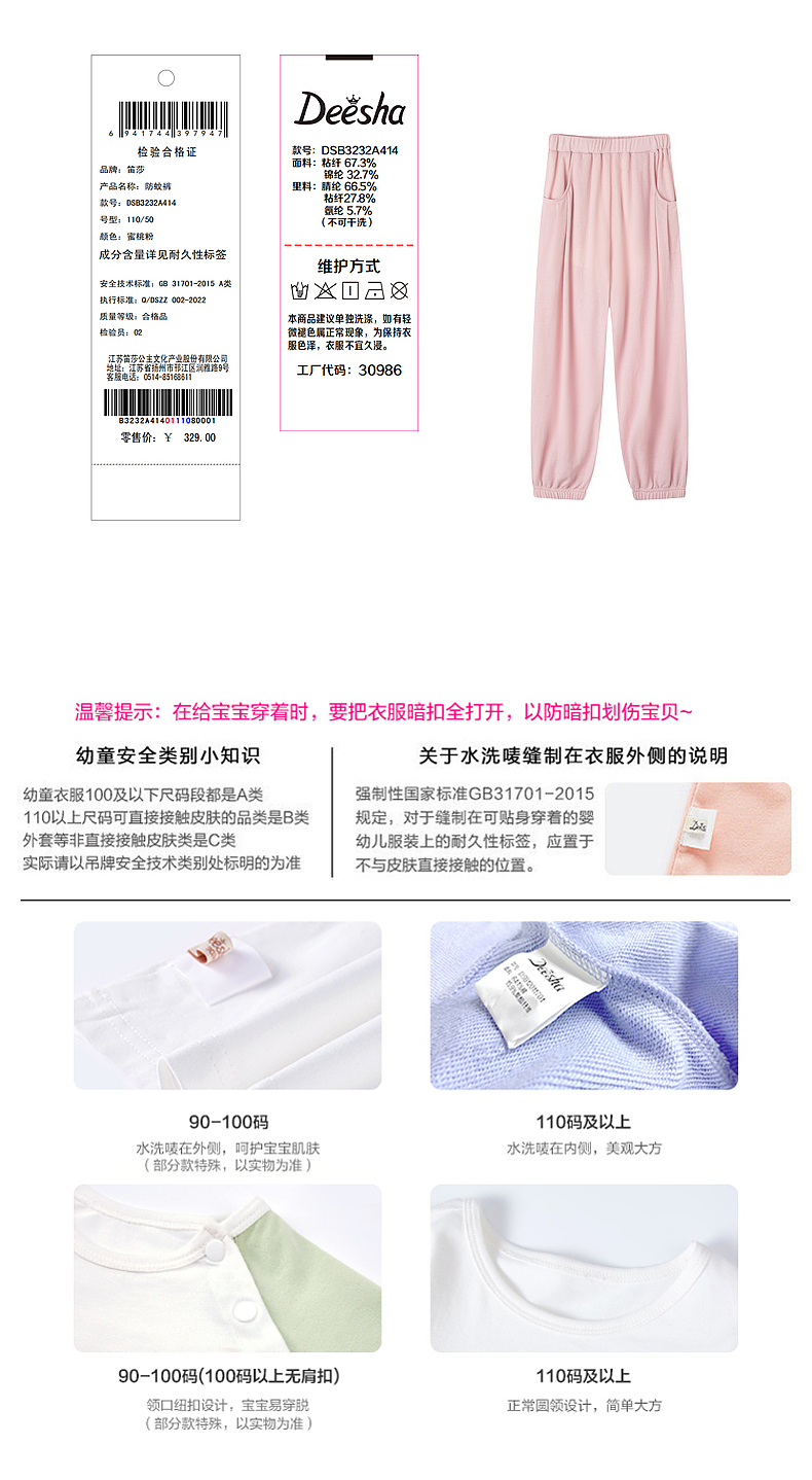 笛莎Deesha 2026年夏季新款小童女童直筒裤裤子