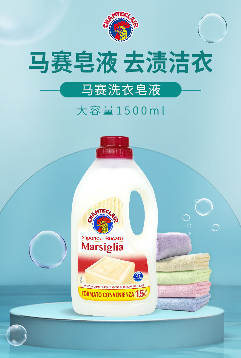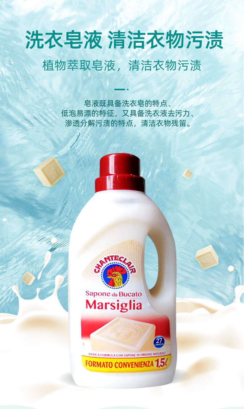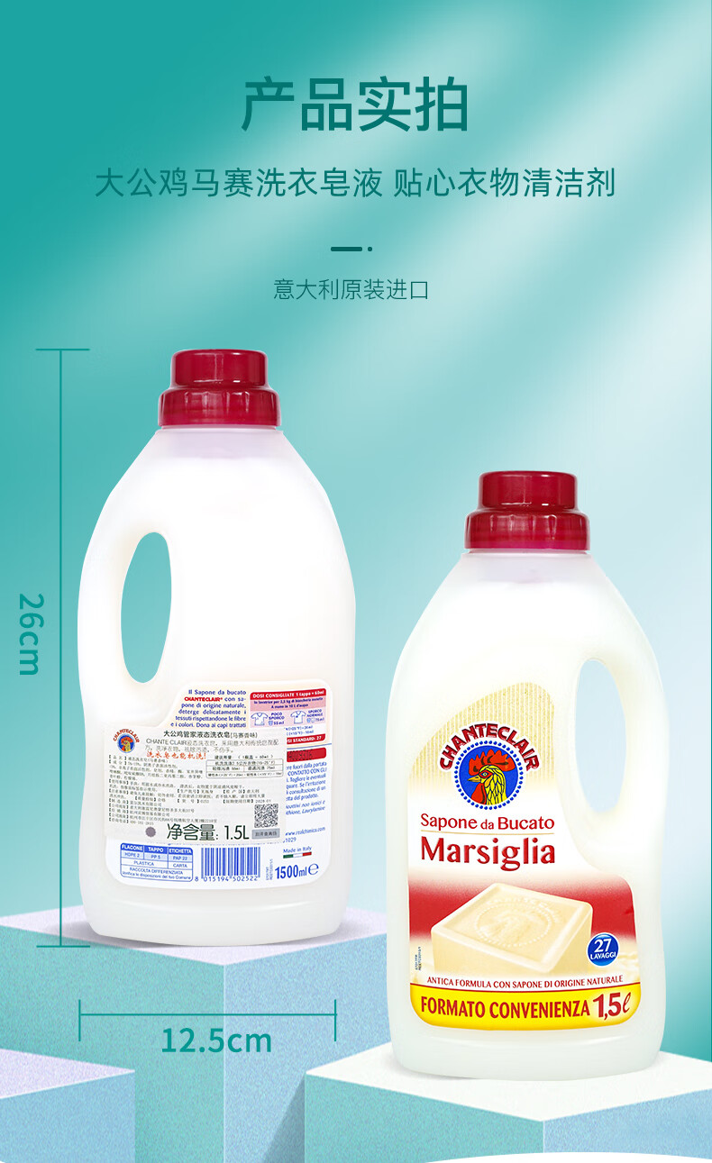 【3瓶装】大公鸡管家洗衣液马赛香1.5L*3瓶/112366*3 植物萃取去污力强 新疆西藏港澳台不发货