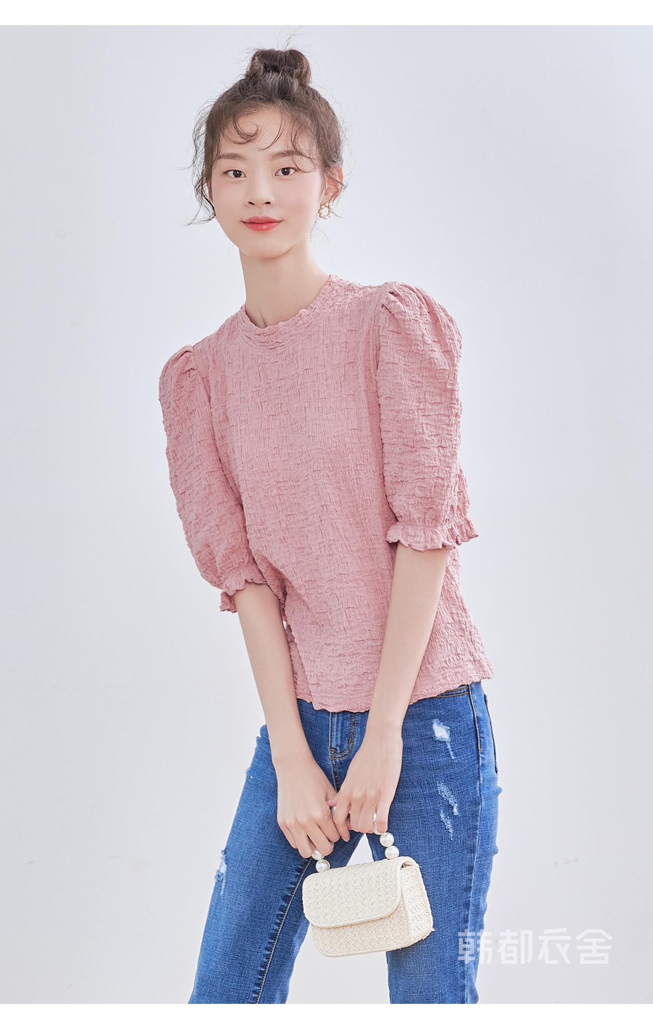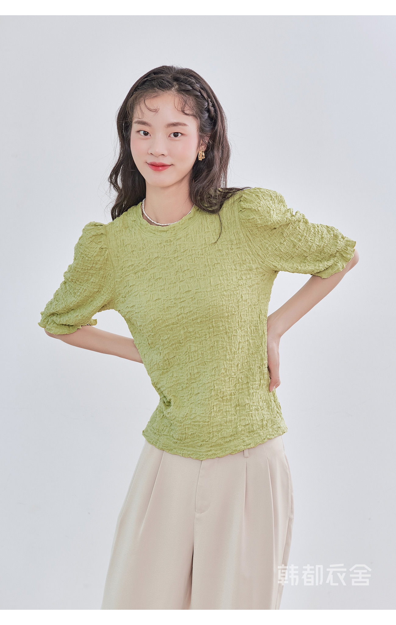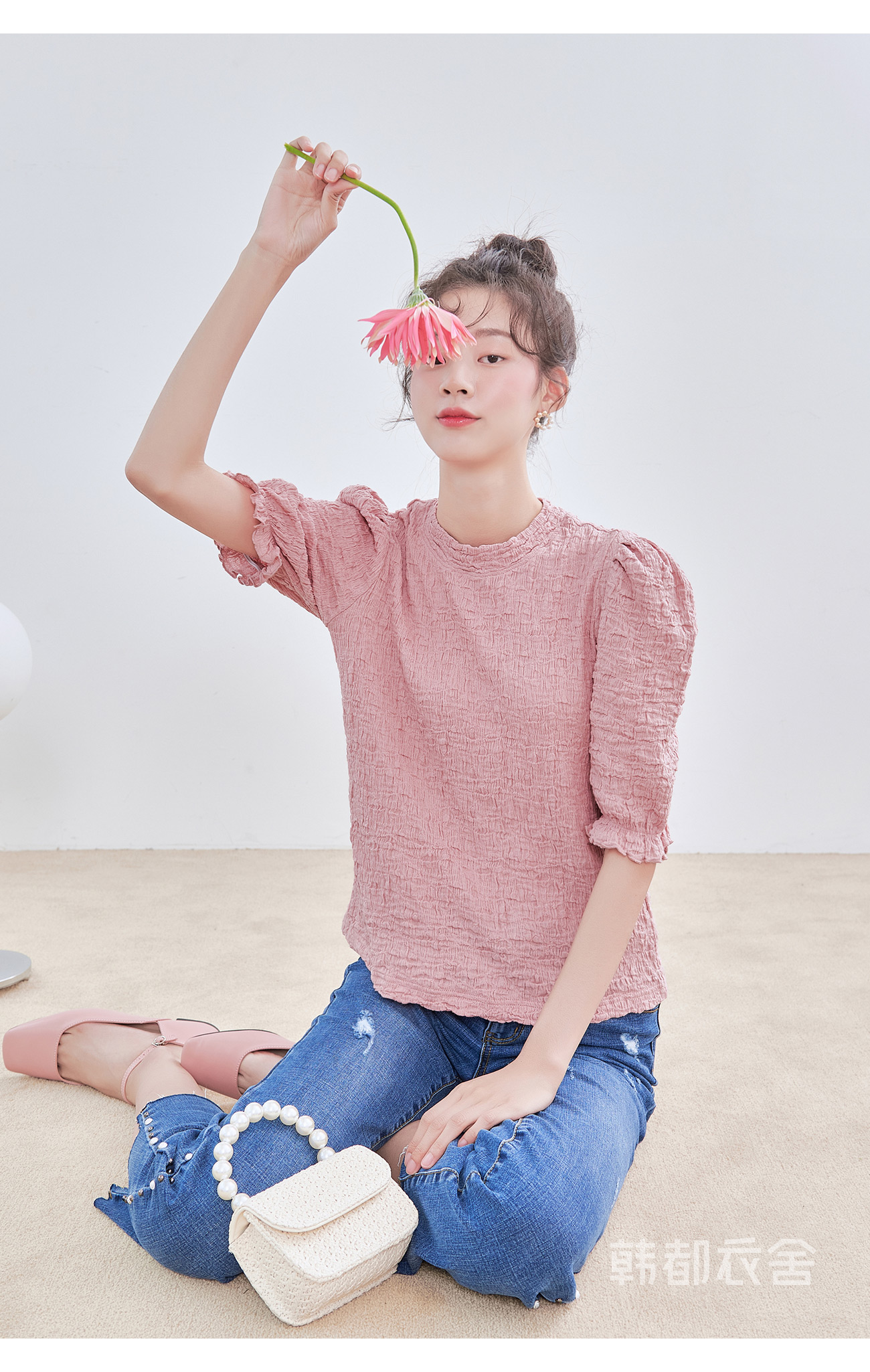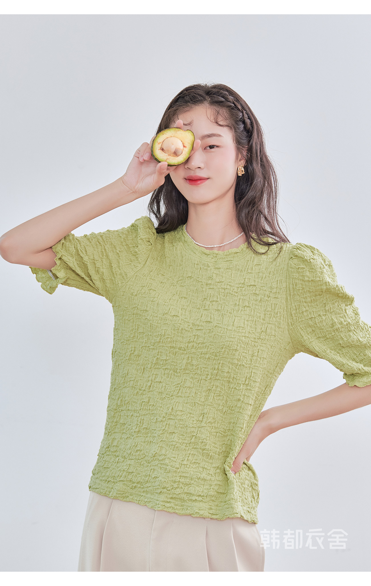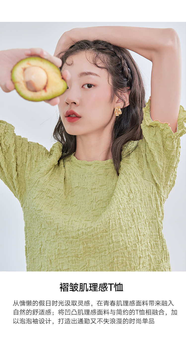 韩都衣舍2021春季新款女装宽松小心机上衣设计感短袖T恤女MX10164