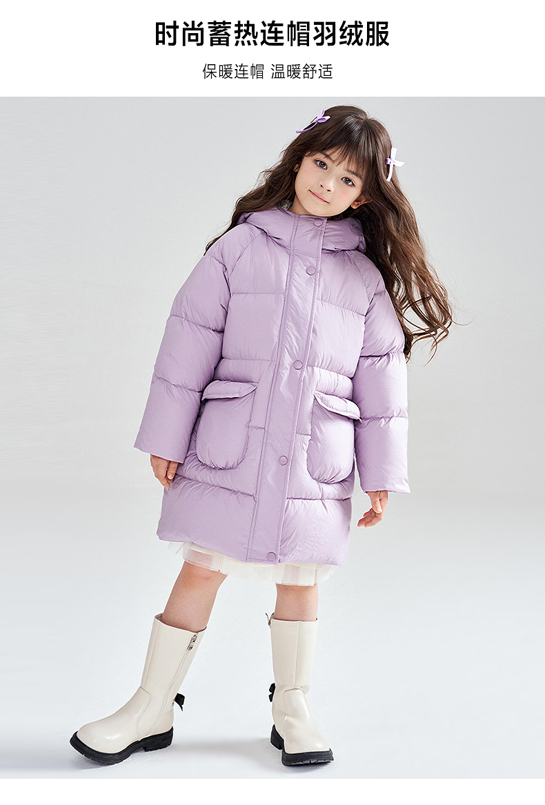 笛莎Deesha 2025冬季新款女童时尚蓄热连帽羽绒服