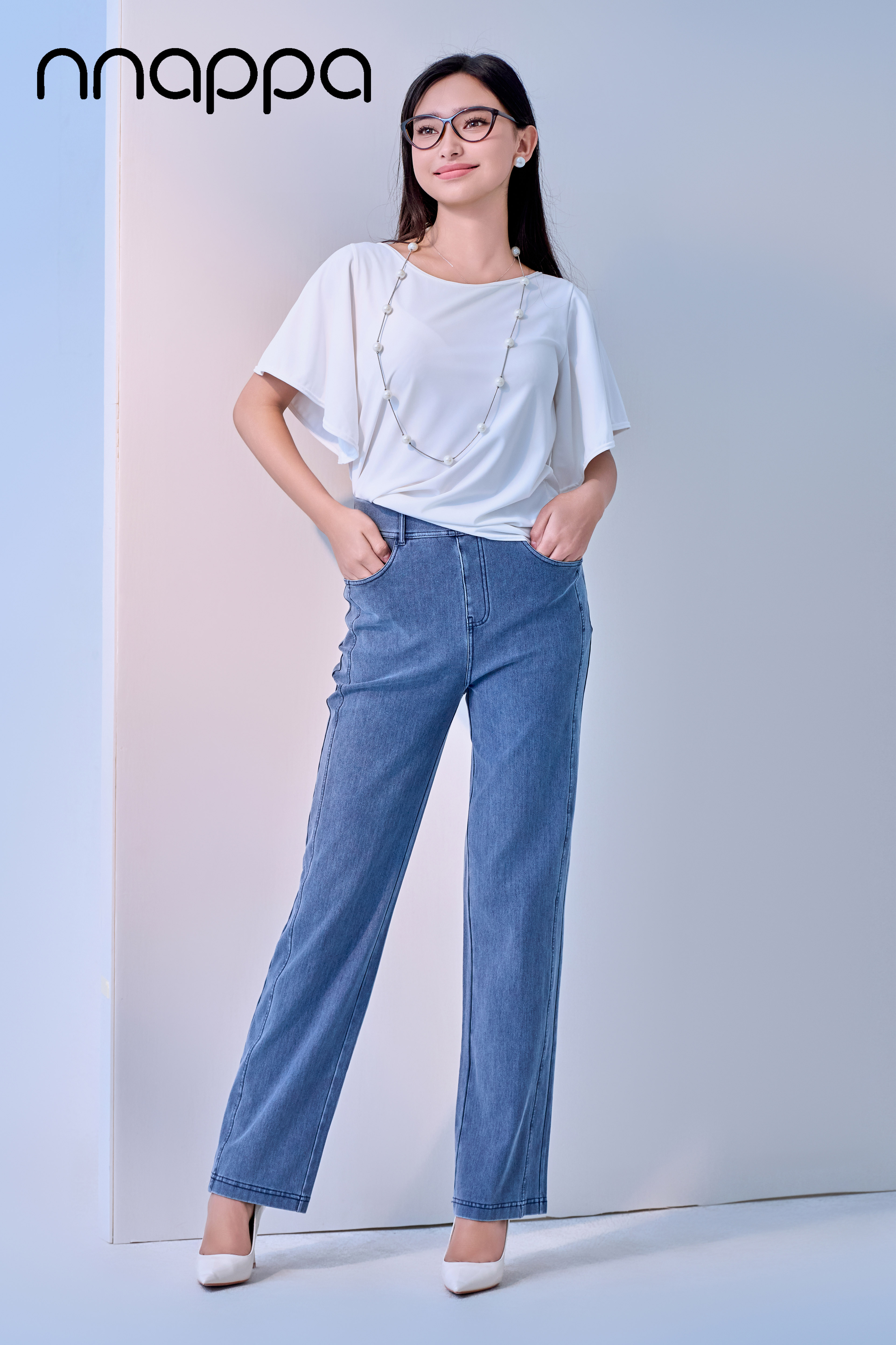 超细滑中腰时尚窄版牛仔直筒裤PA29368