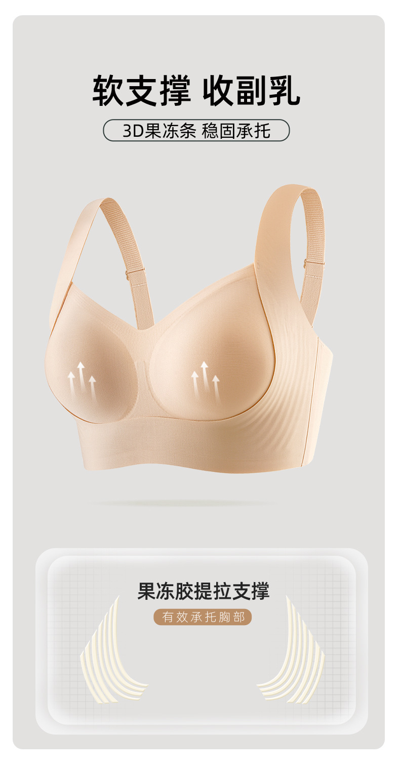 新年好物!【3D果冻条!稳固承托】调整型软支撑聚拢无痕内衣,上托防下垂收副乳无钢圈文胸,固定杯 不易跑杯 优化背部曲线