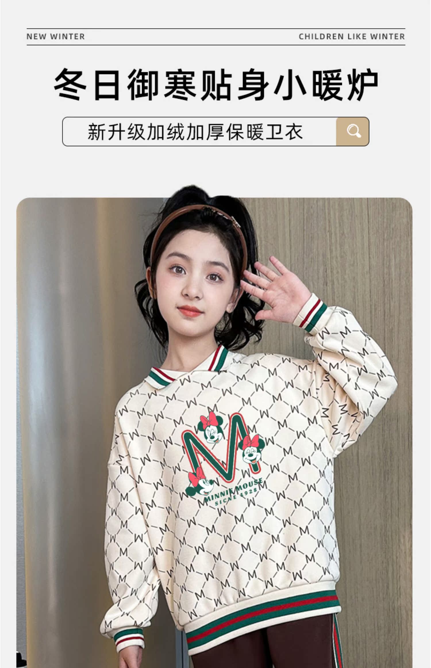 女童加绒卫衣冬季儿童加厚保暖衣服2024新款一体绒洋气女孩打底衫