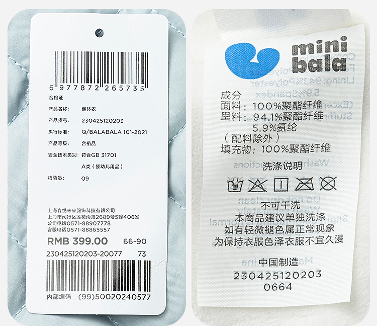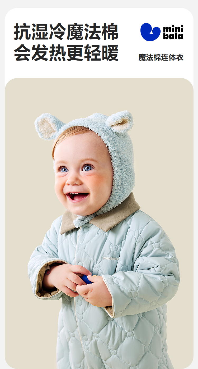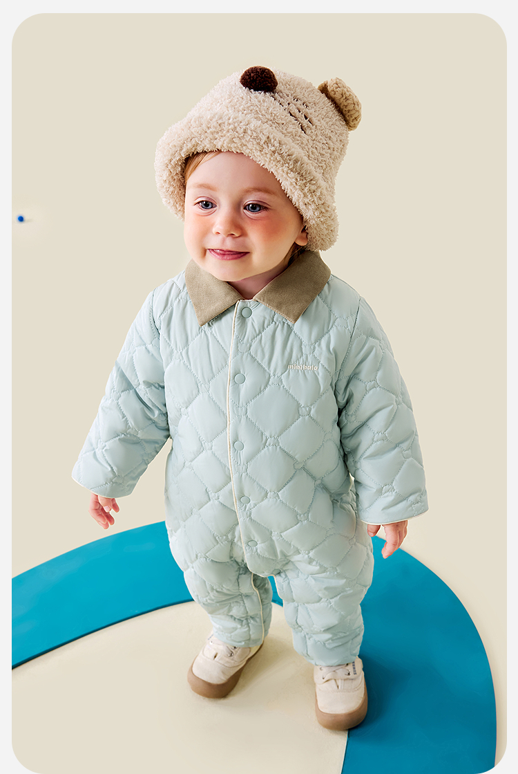 【魔法棉】迷你巴拉婴儿衣服男女宝宝抗湿冷棉服轻暖翻领连体衣