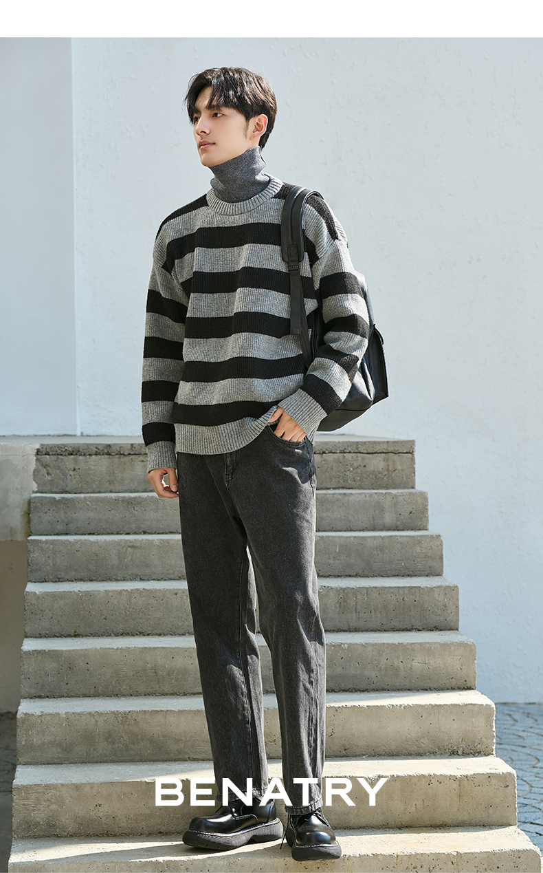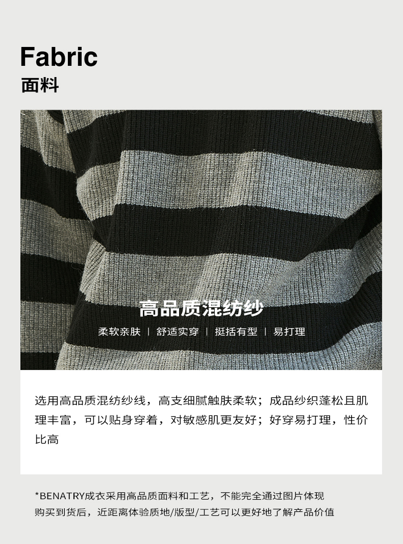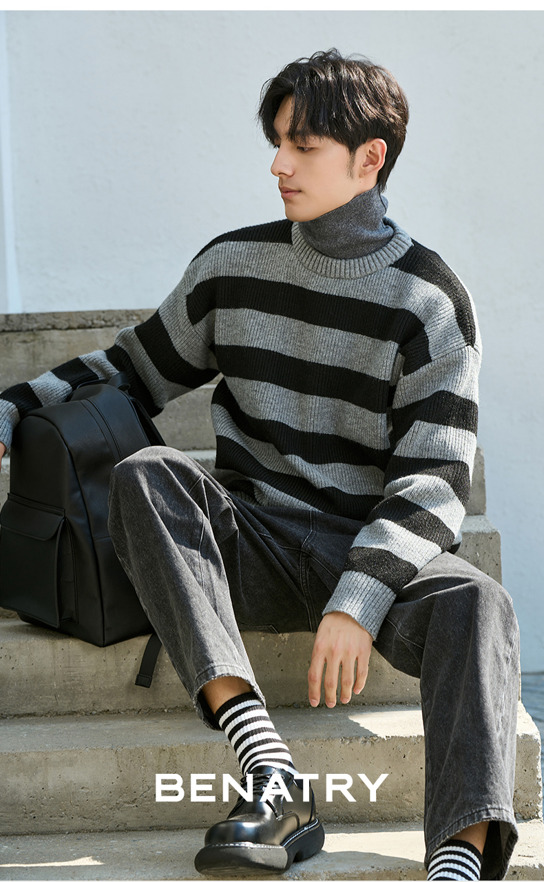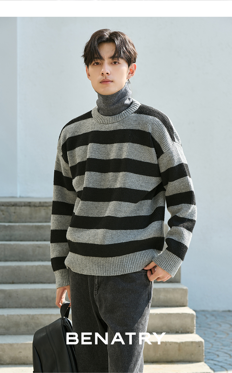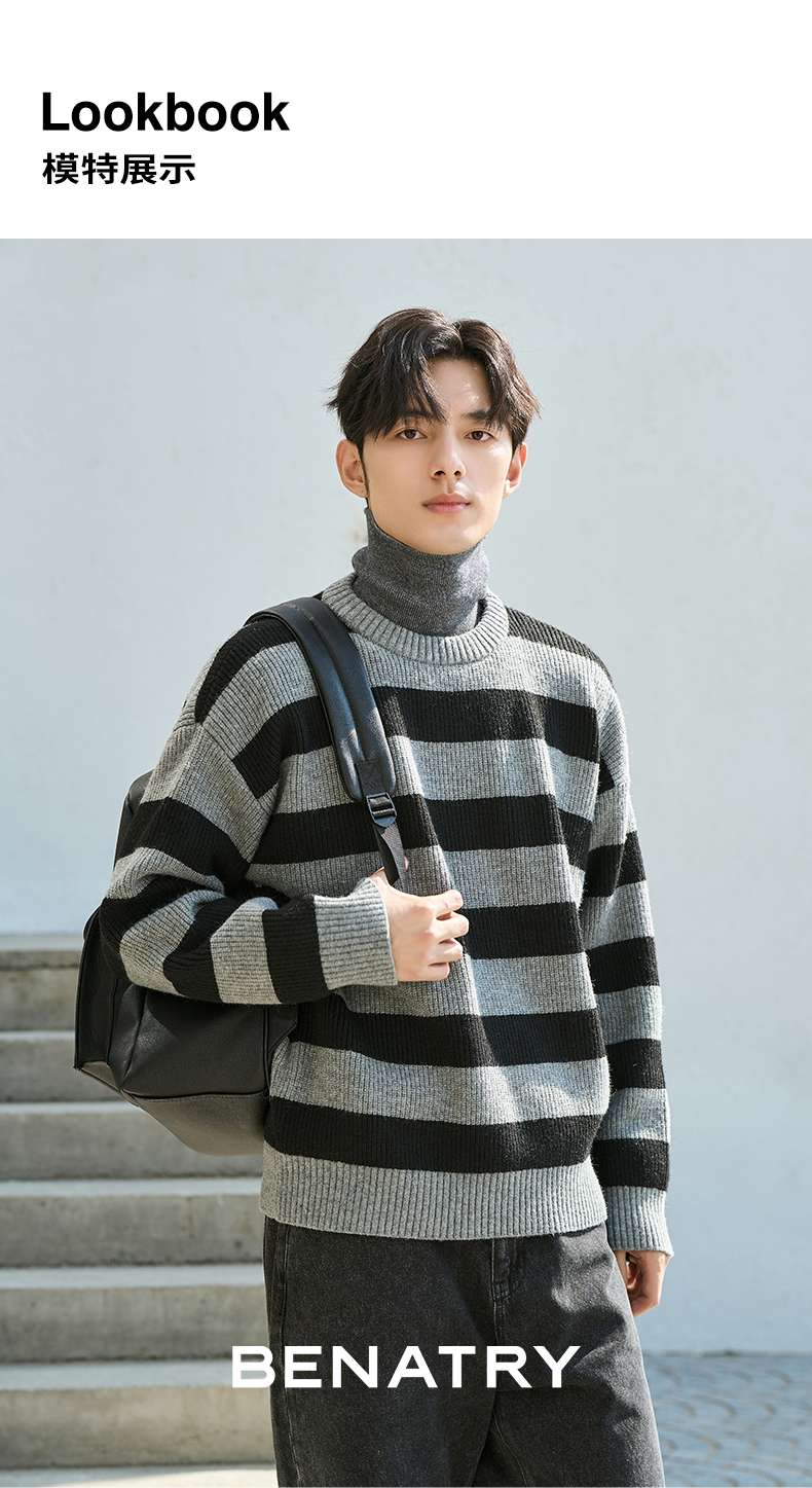 贝纳川经典圆领条纹长袖男士毛衣ECP416001402