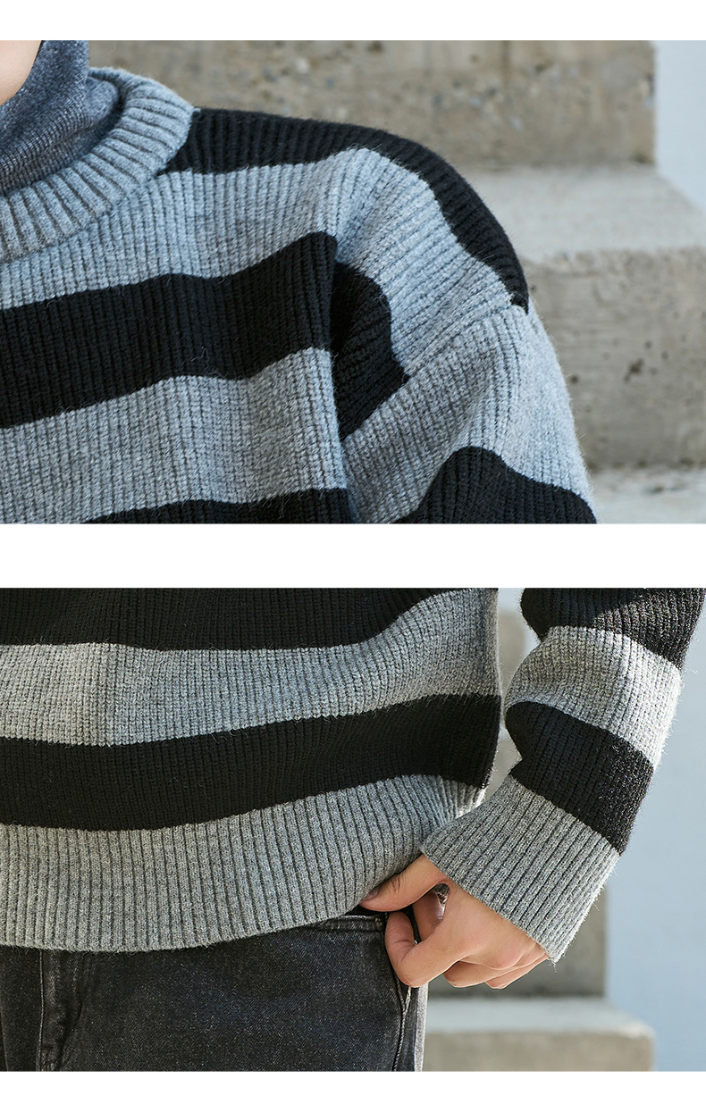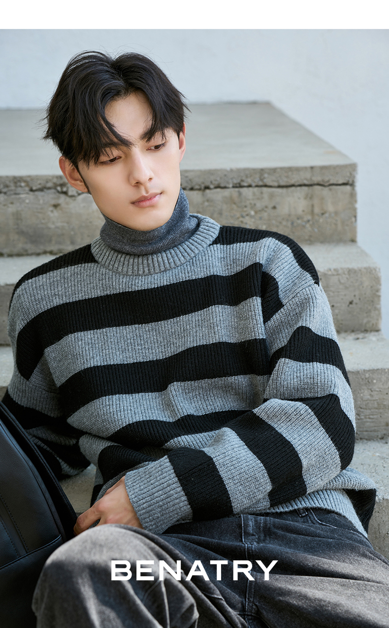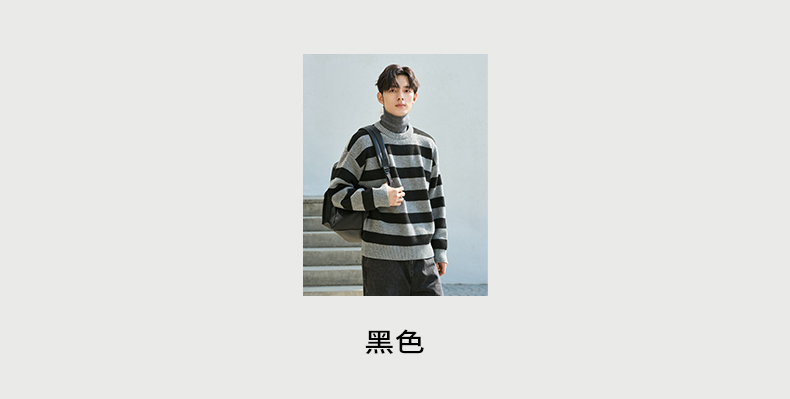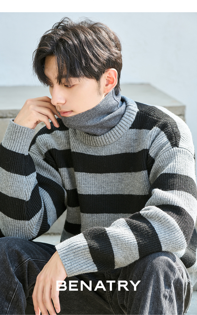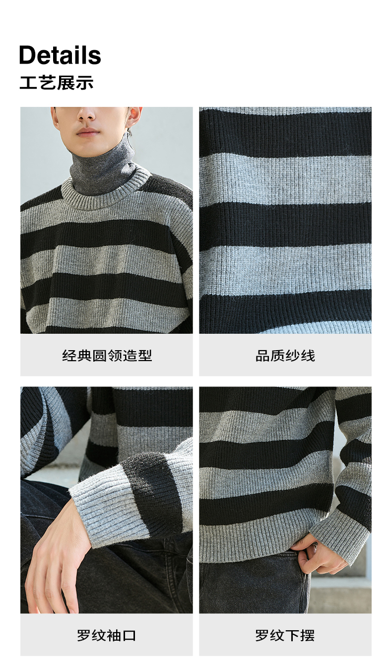 贝纳川经典圆领条纹长袖男士毛衣ECP416001402