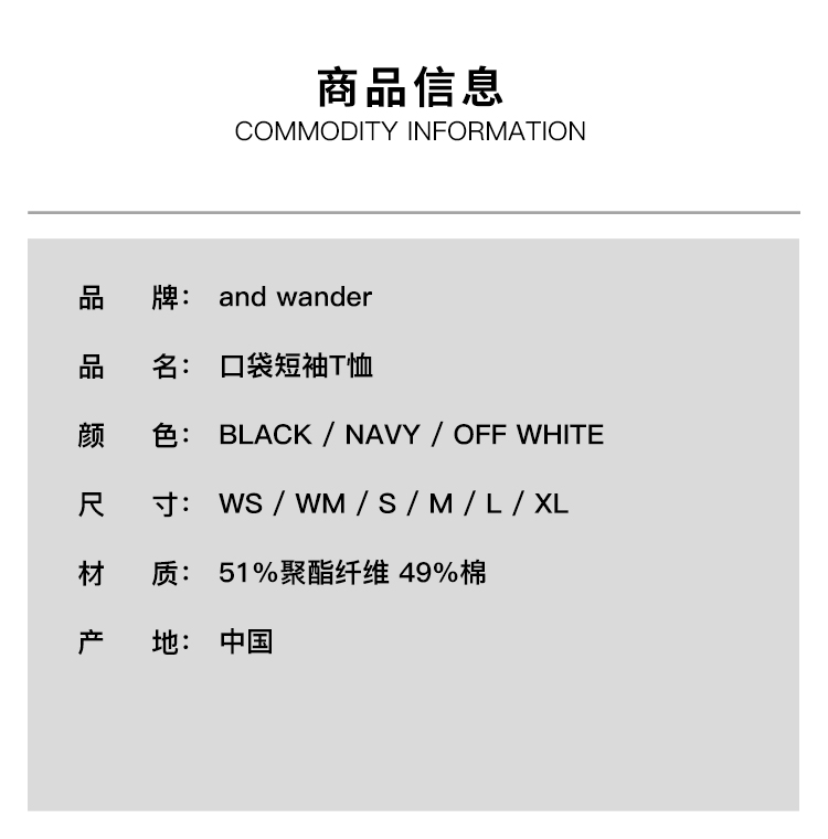 and wander pocket T 男女COOLMAX吸湿透气圆领短袖口袋T恤