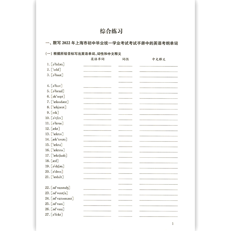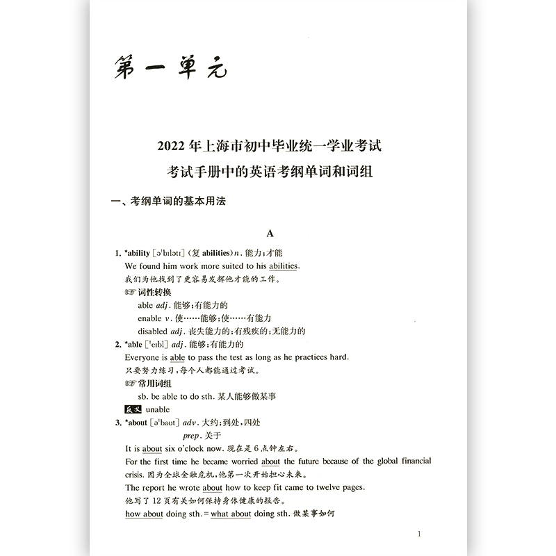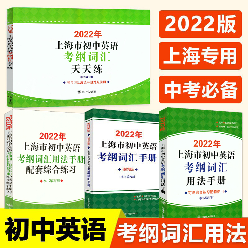 2022年上海市初中英语考纲词汇用法手册+配套综合练习+便携本+天天练