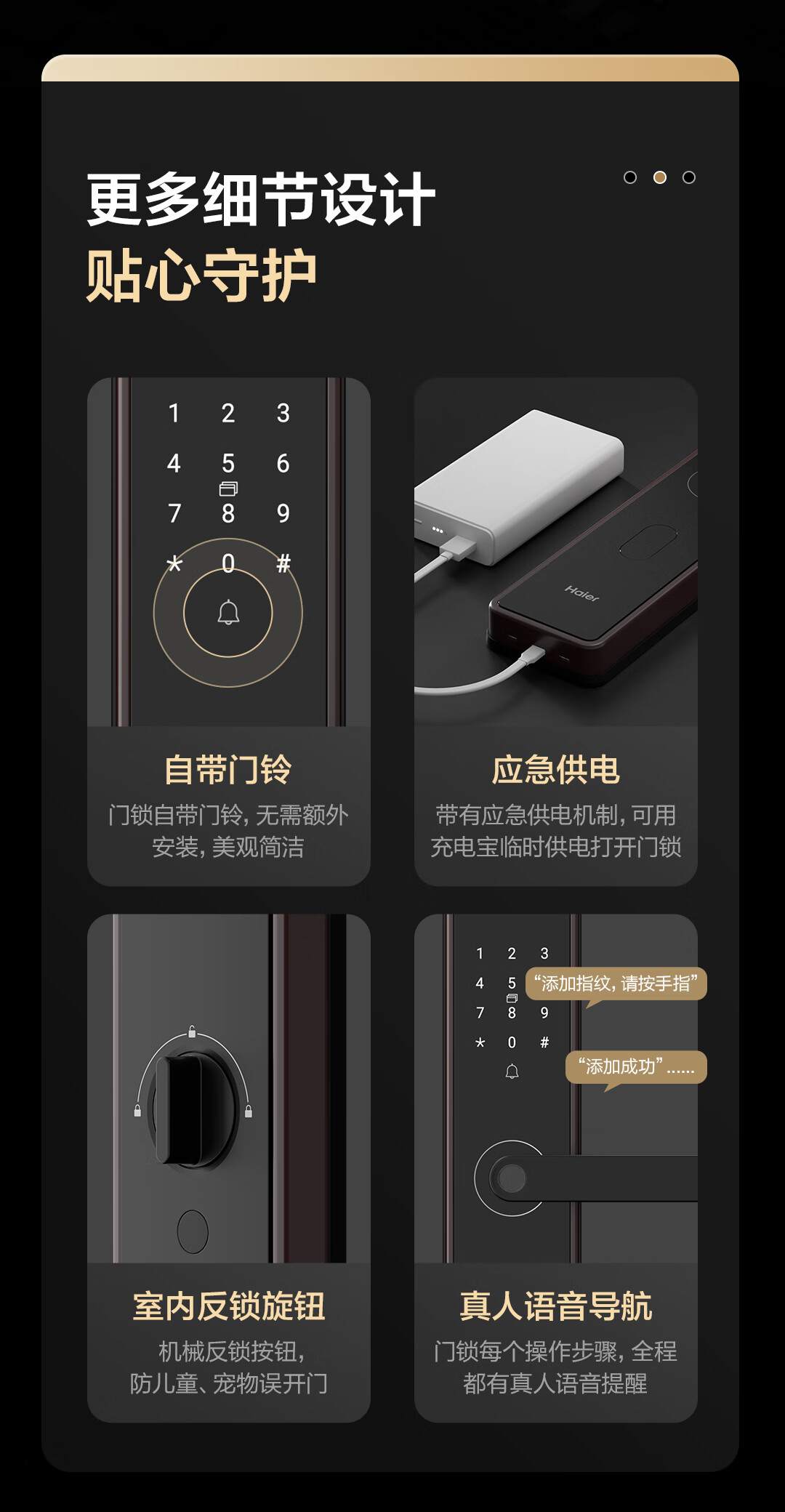 海尔智能门锁V19Pro电子密码锁智能锁猫眼锁可视对讲HFH-19V-U1(pro)