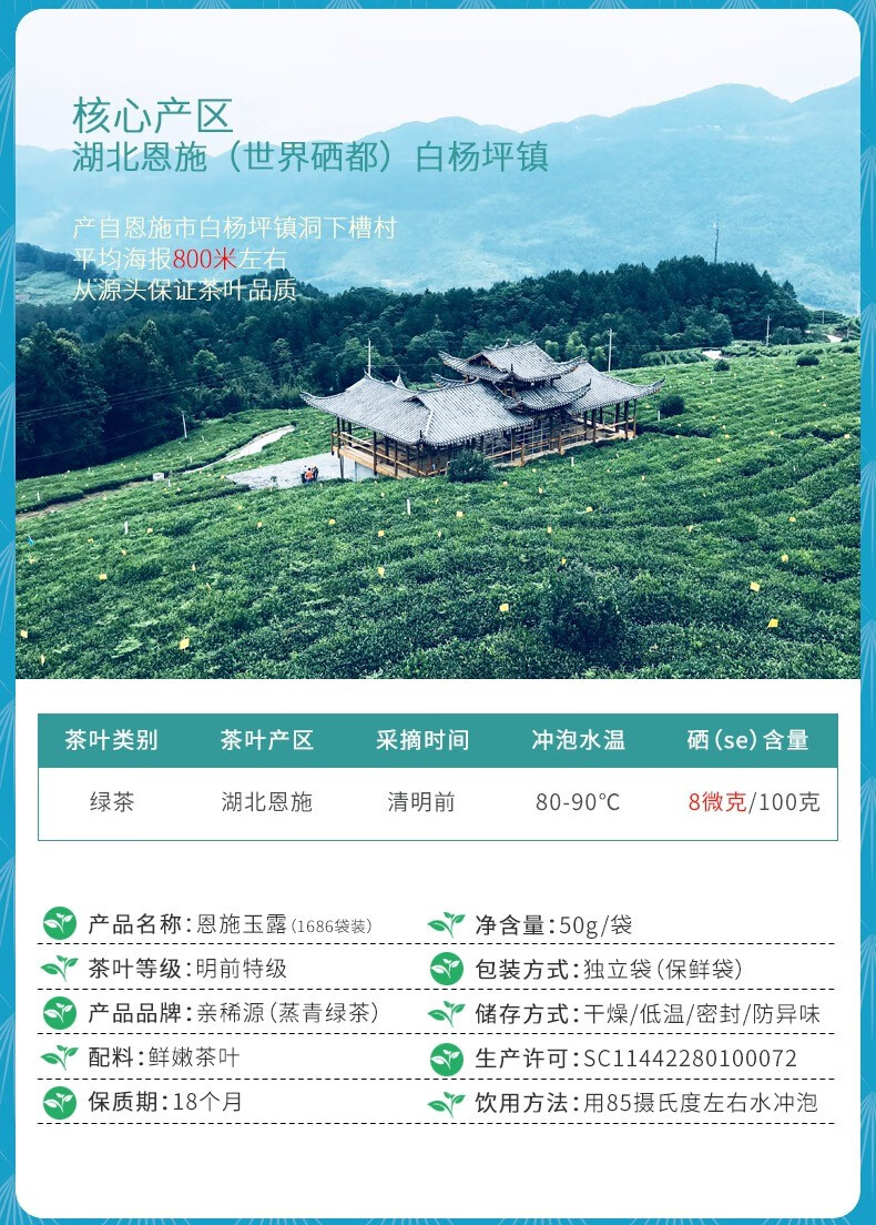 蓝焙2024年新春茶明前恩施玉露一芽一叶特级蒸青富硒绿茶1686实惠袋装 50克*1袋