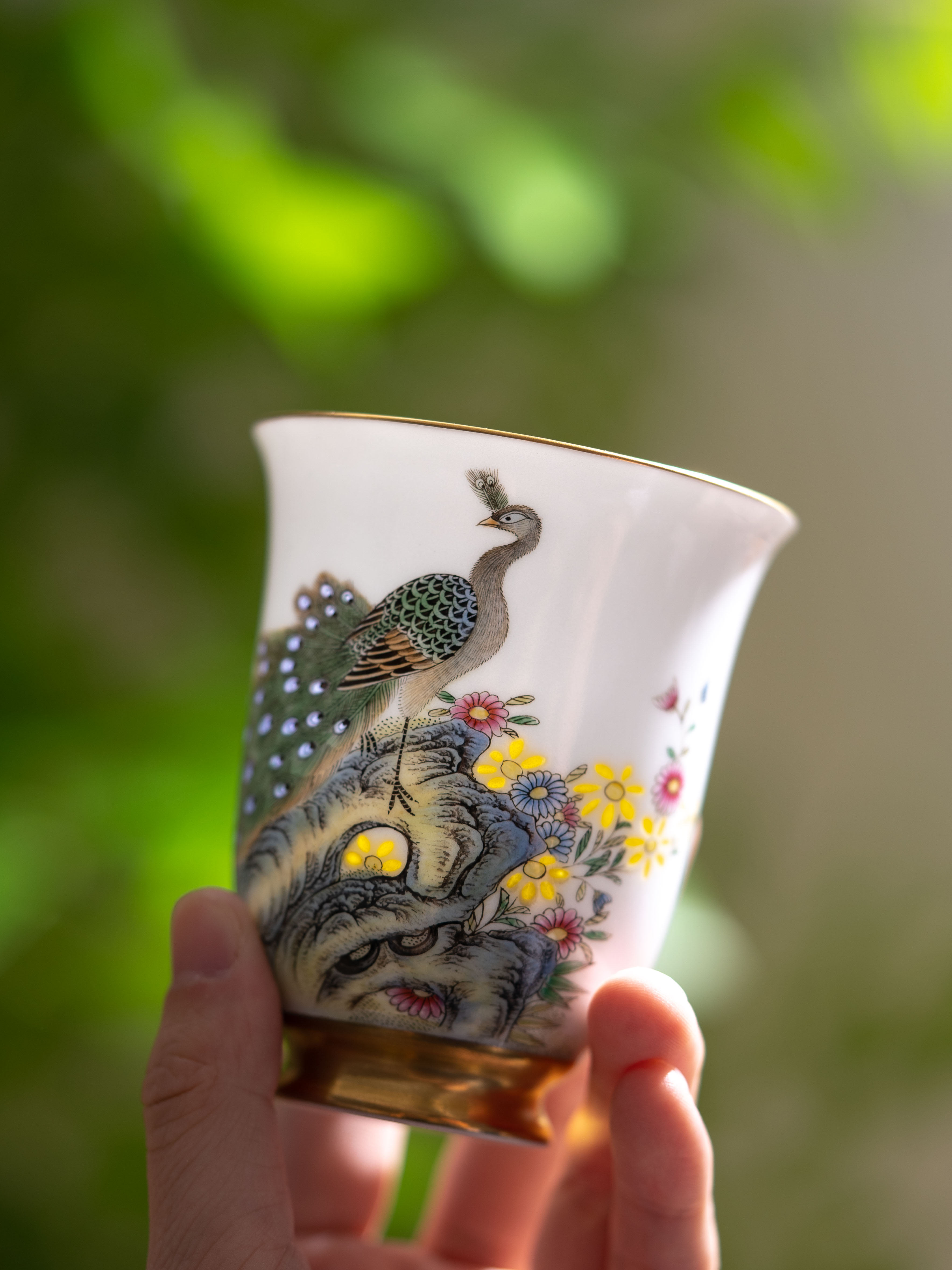 富玉 景德镇玲珑茶杯大容量节节高升茶漏杯