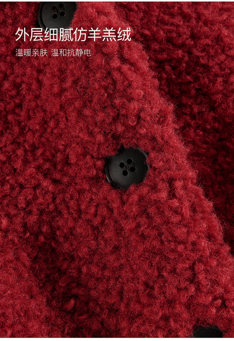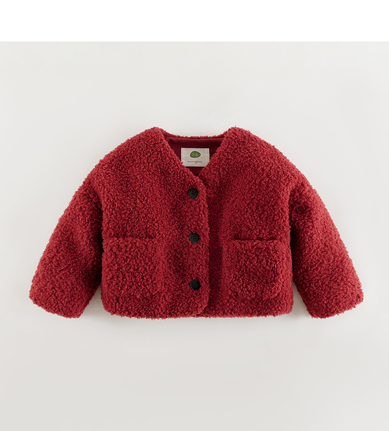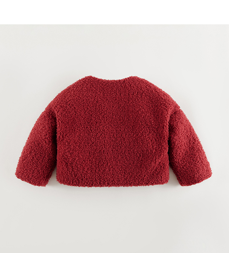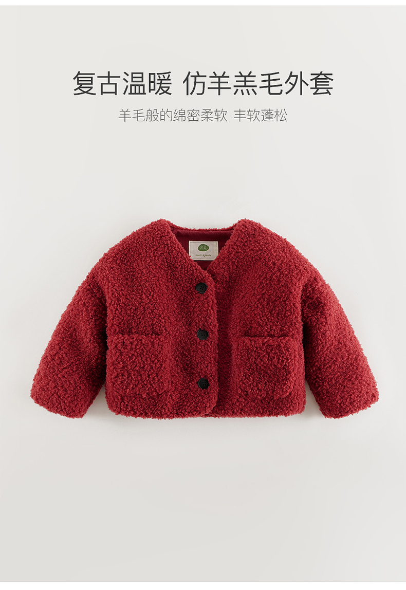 马克珍妮女童温暖仿羊羔毛短款复古外套儿童2024年冬装新款241099