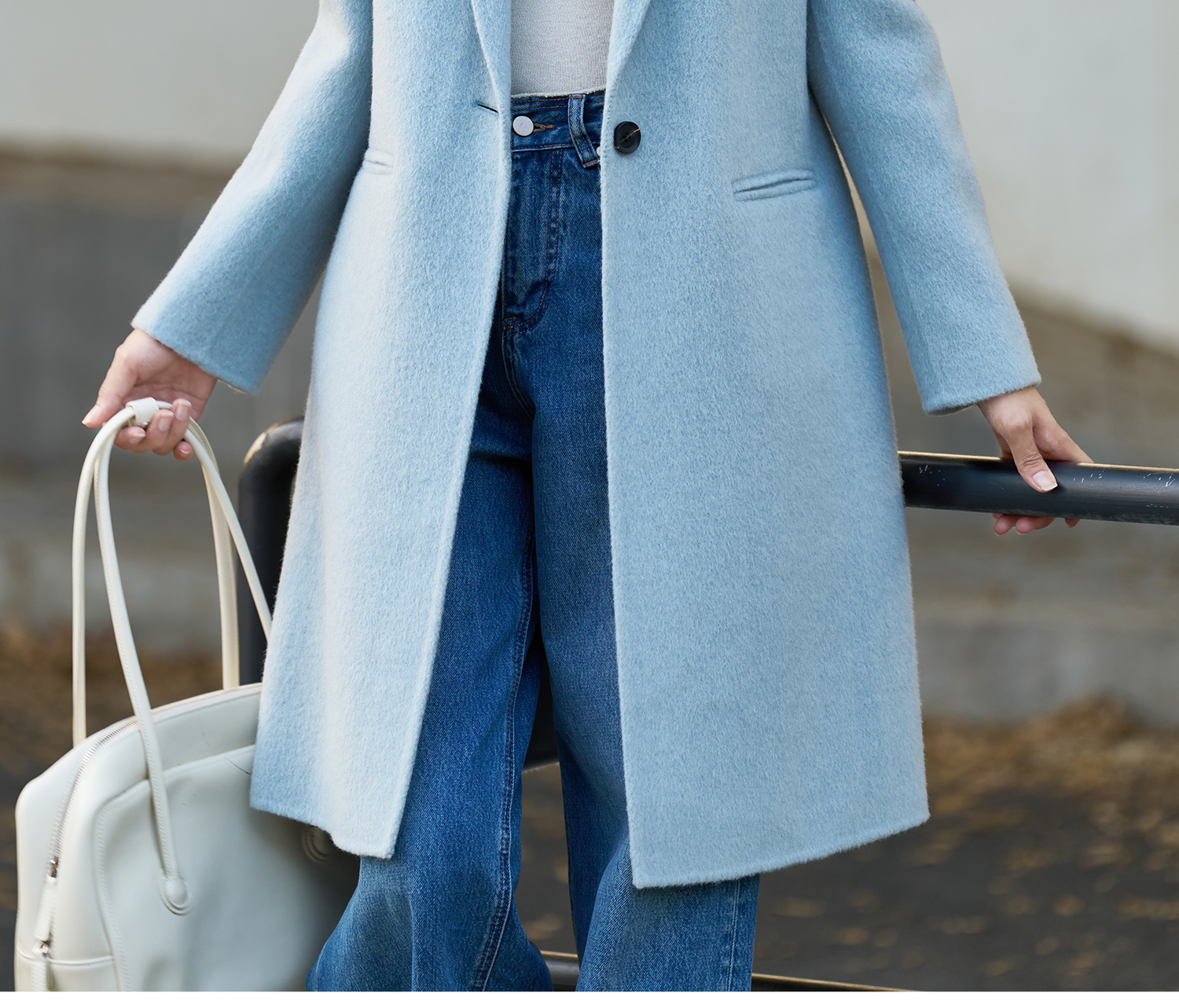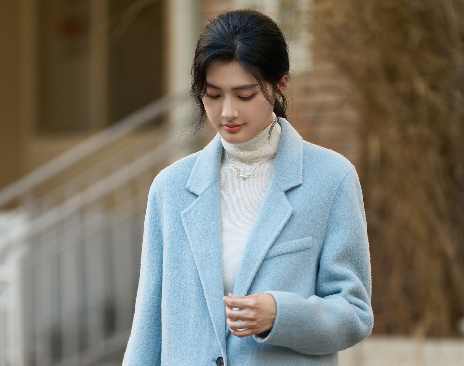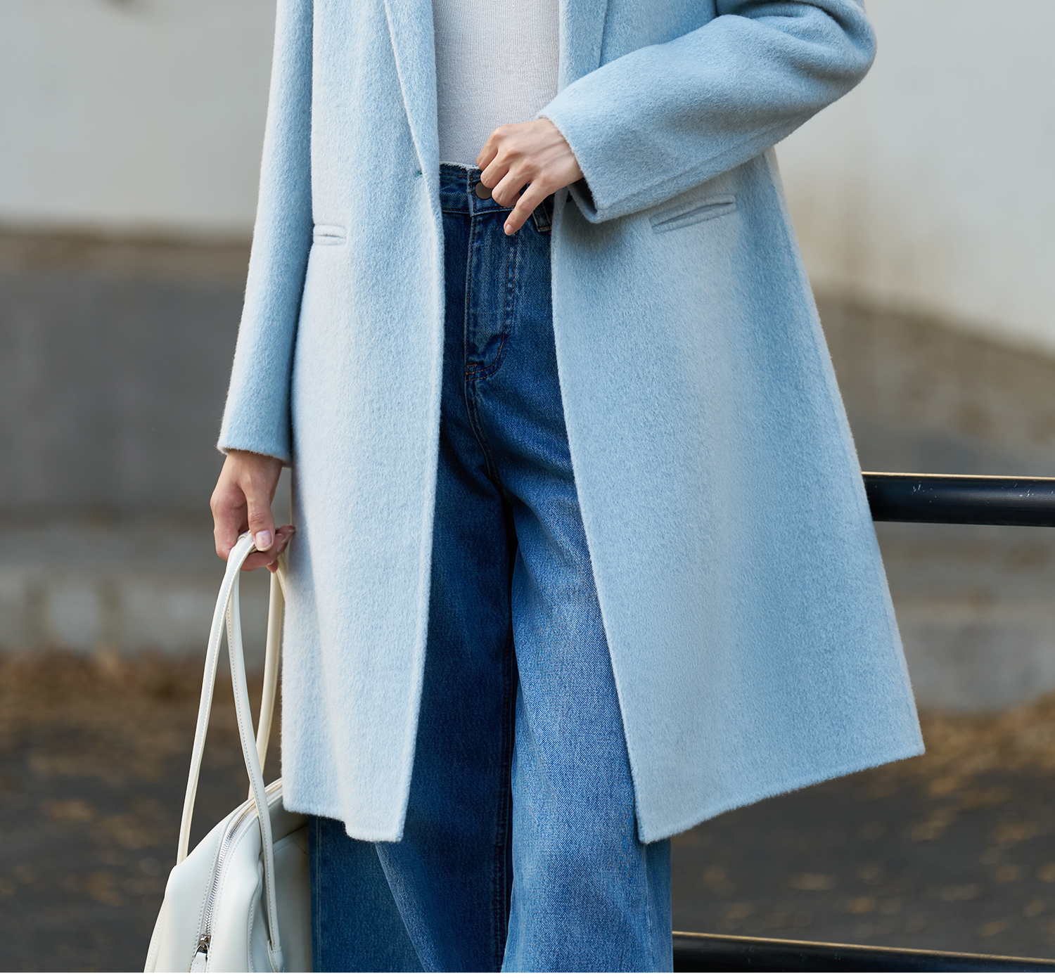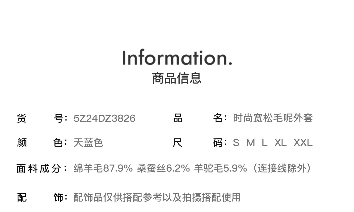 剩XL 米思阳2025冬季新款简约高级感双面呢大衣特调蓝经典羊毛外套3826