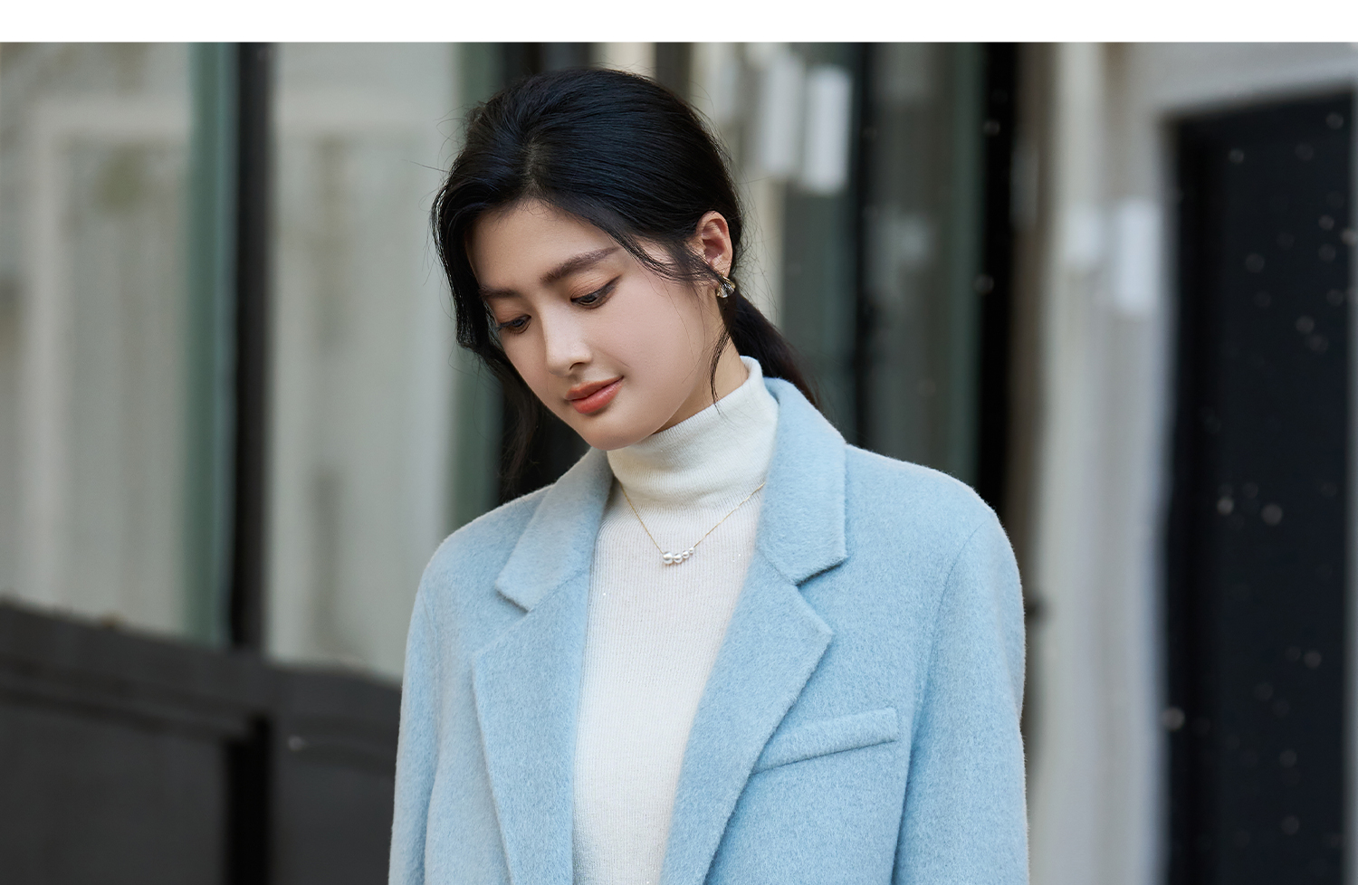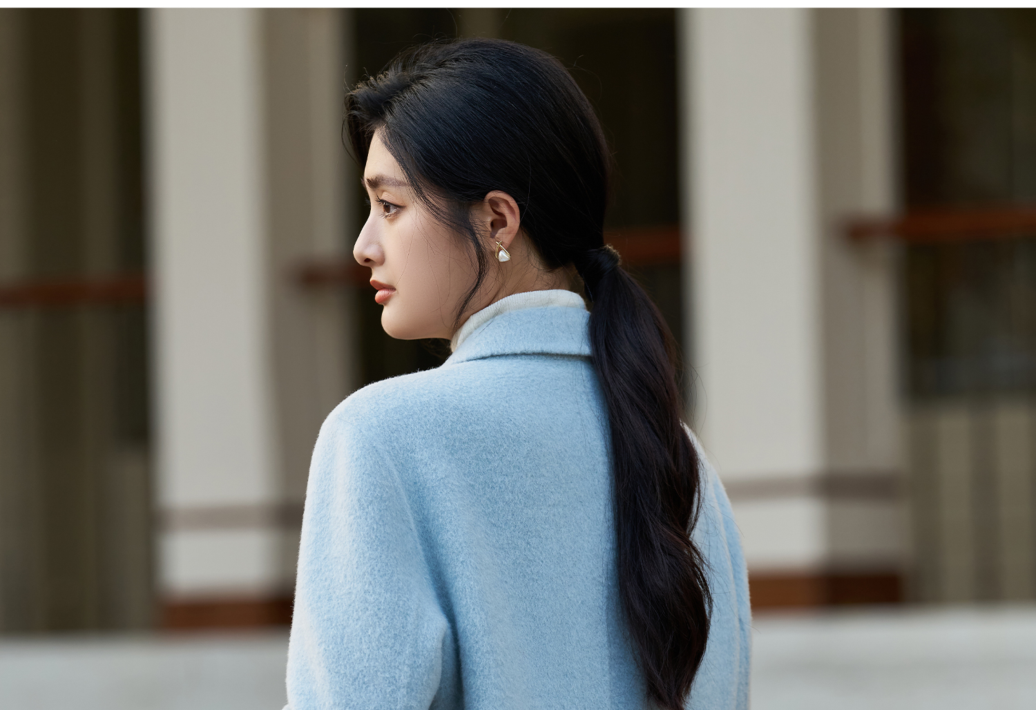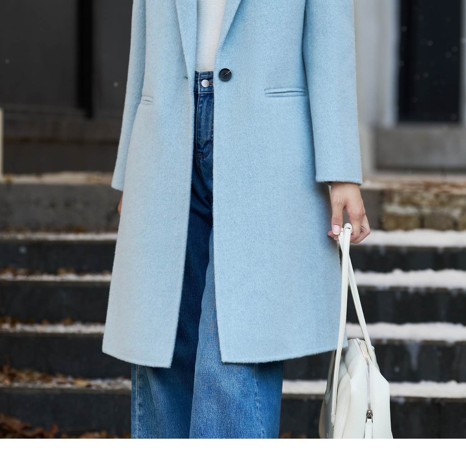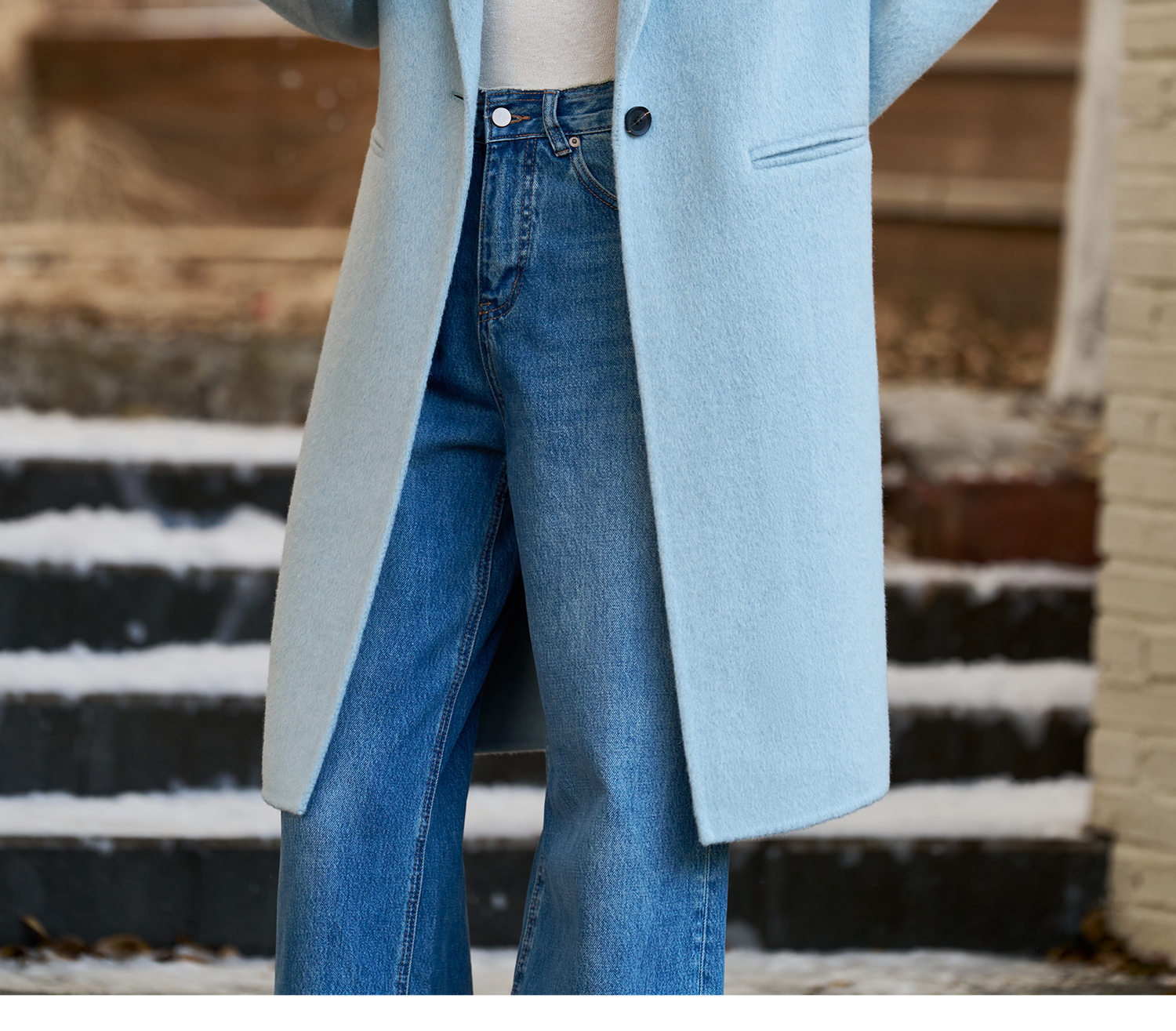 剩XL 米思阳2025冬季新款简约高级感双面呢大衣特调蓝经典羊毛外套3826