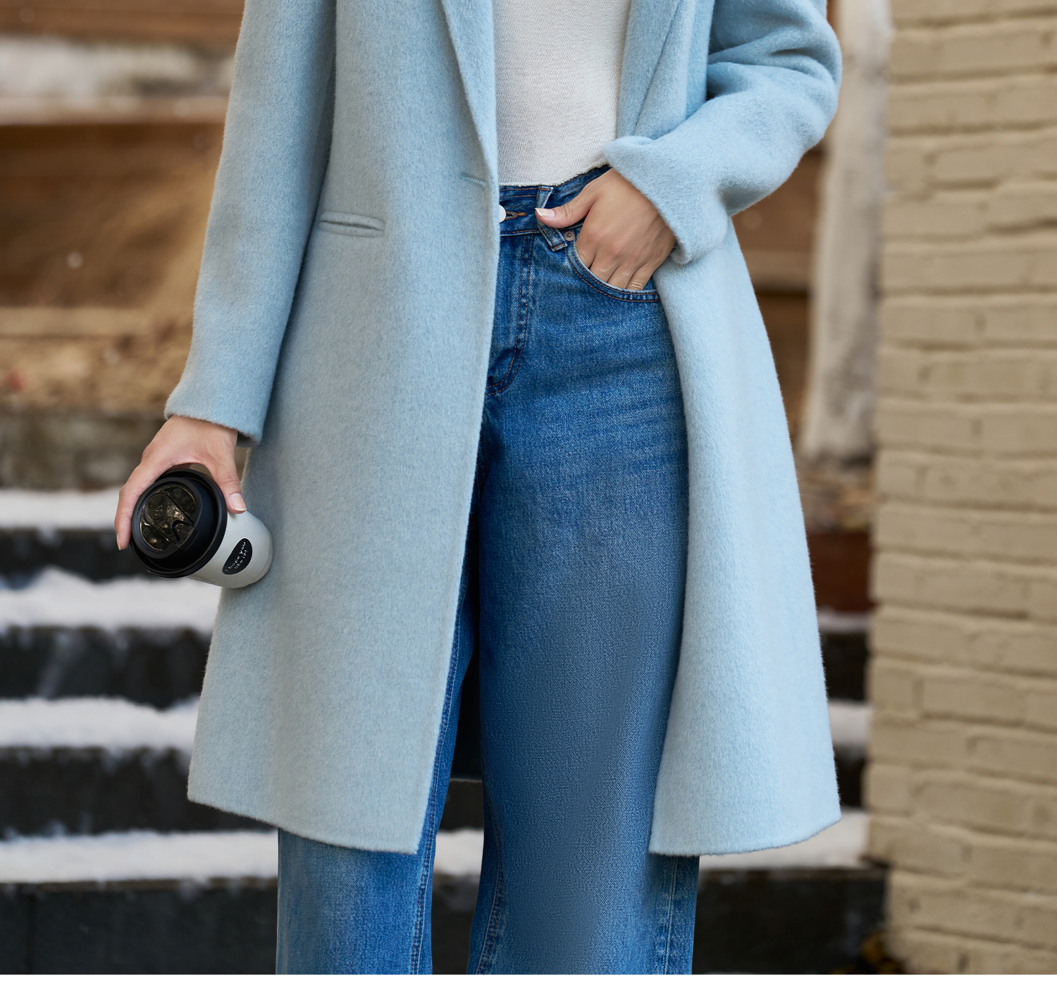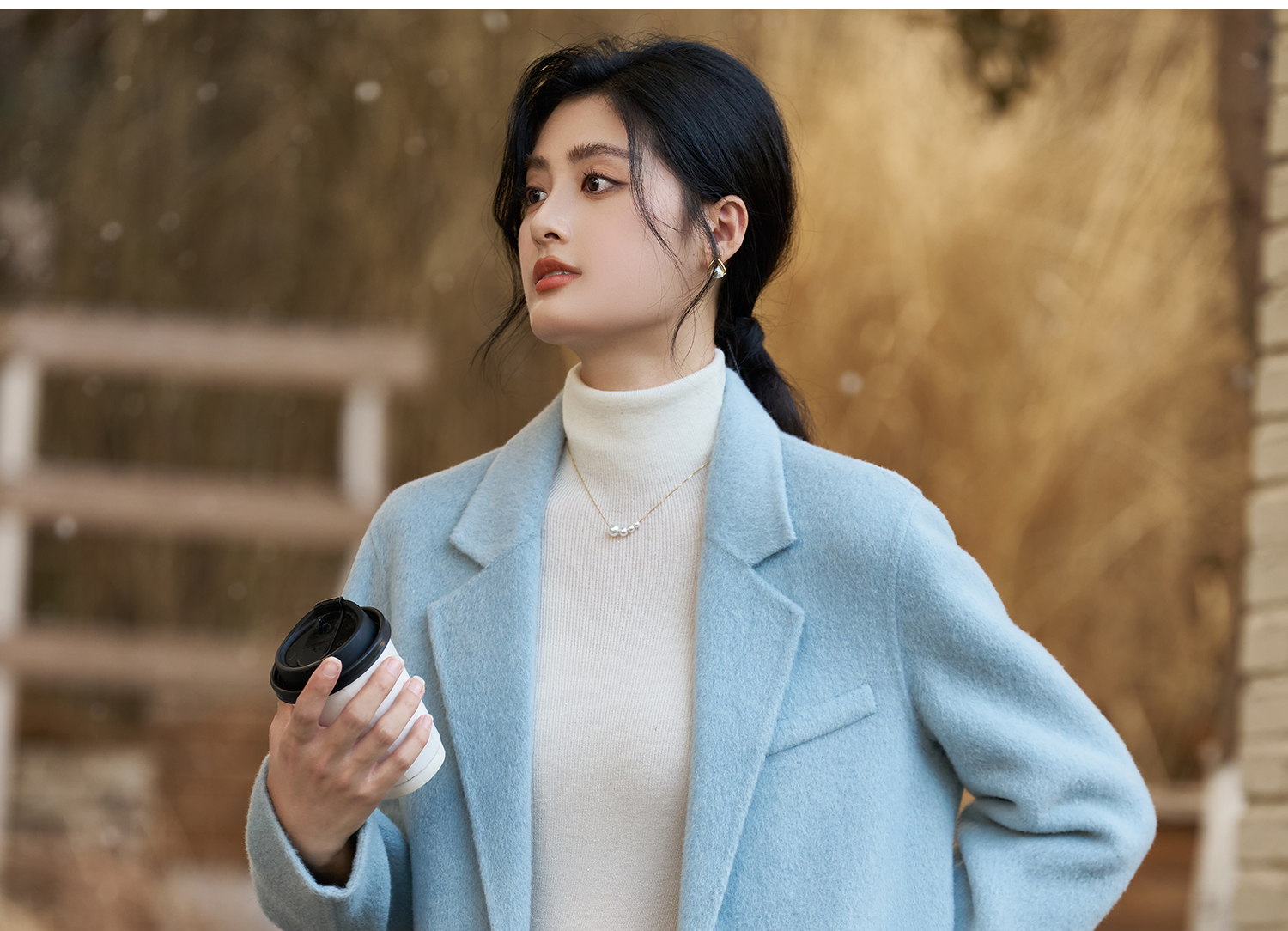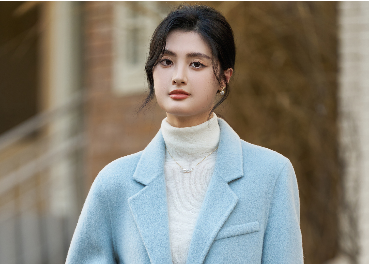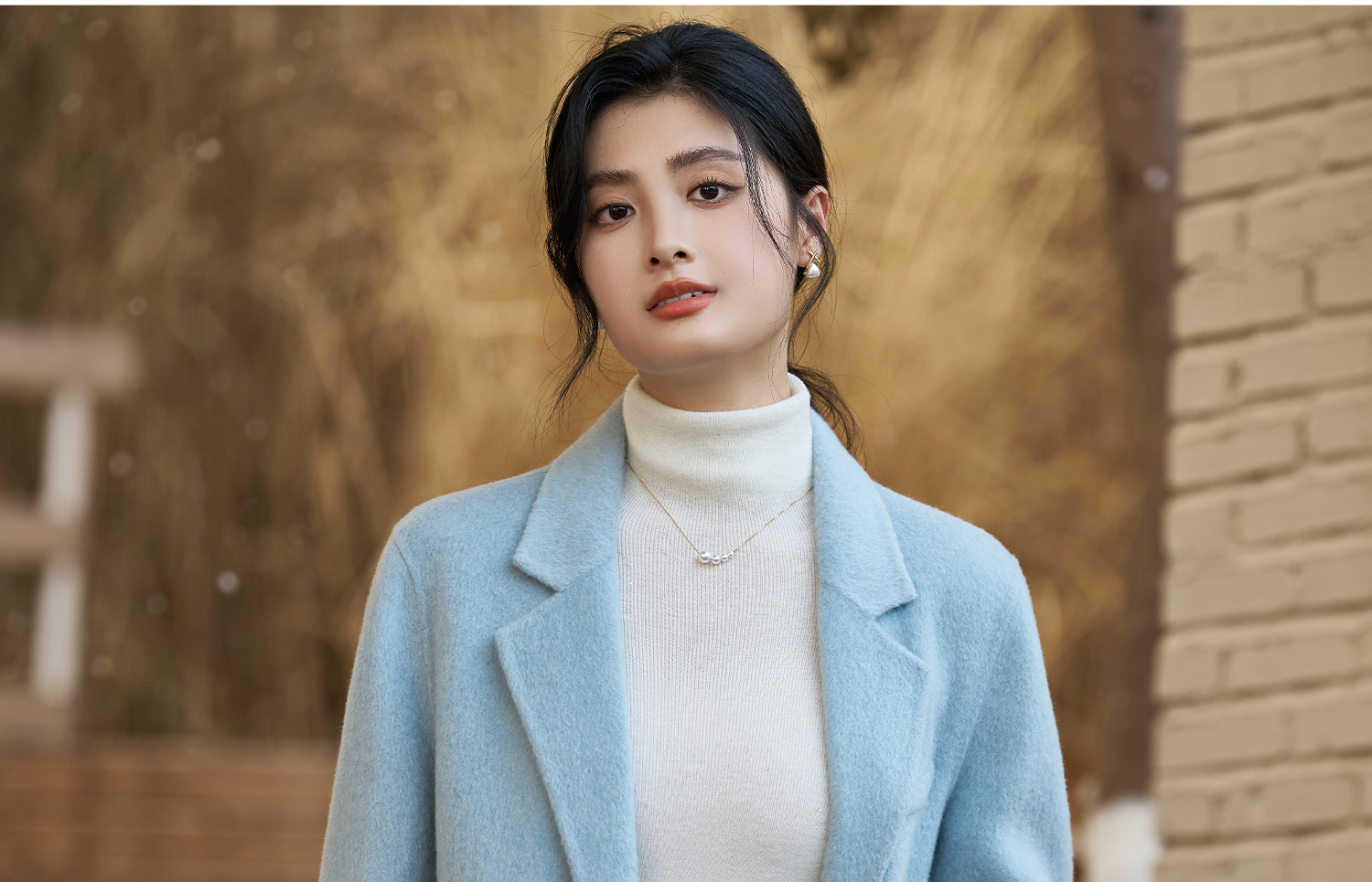 剩XL 米思阳2025冬季新款简约高级感双面呢大衣特调蓝经典羊毛外套3826